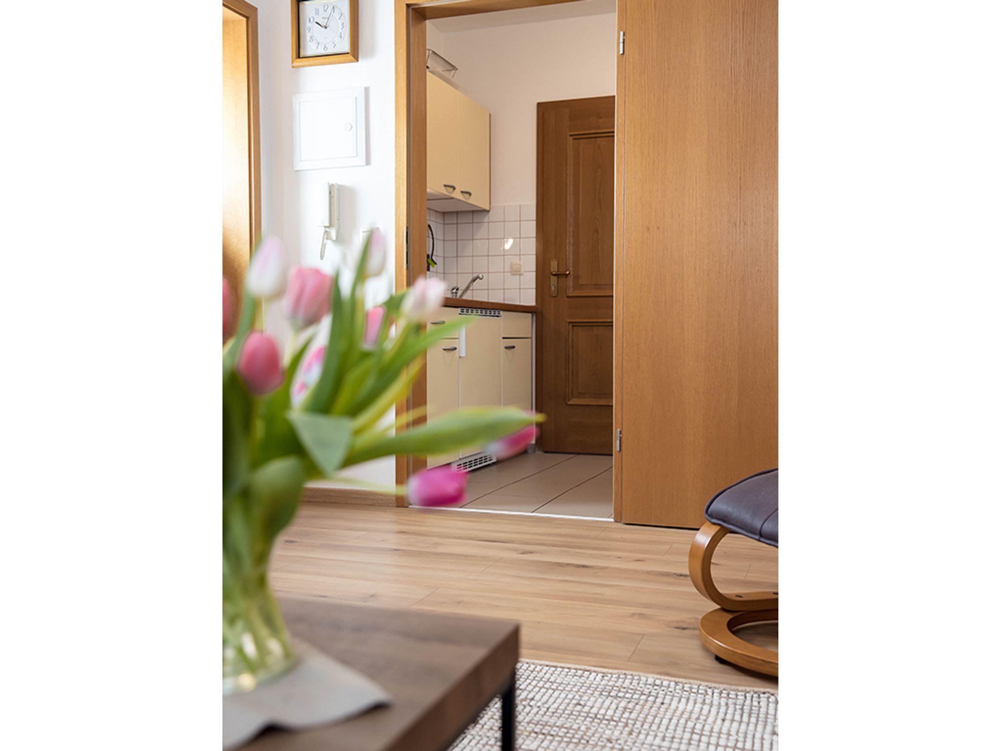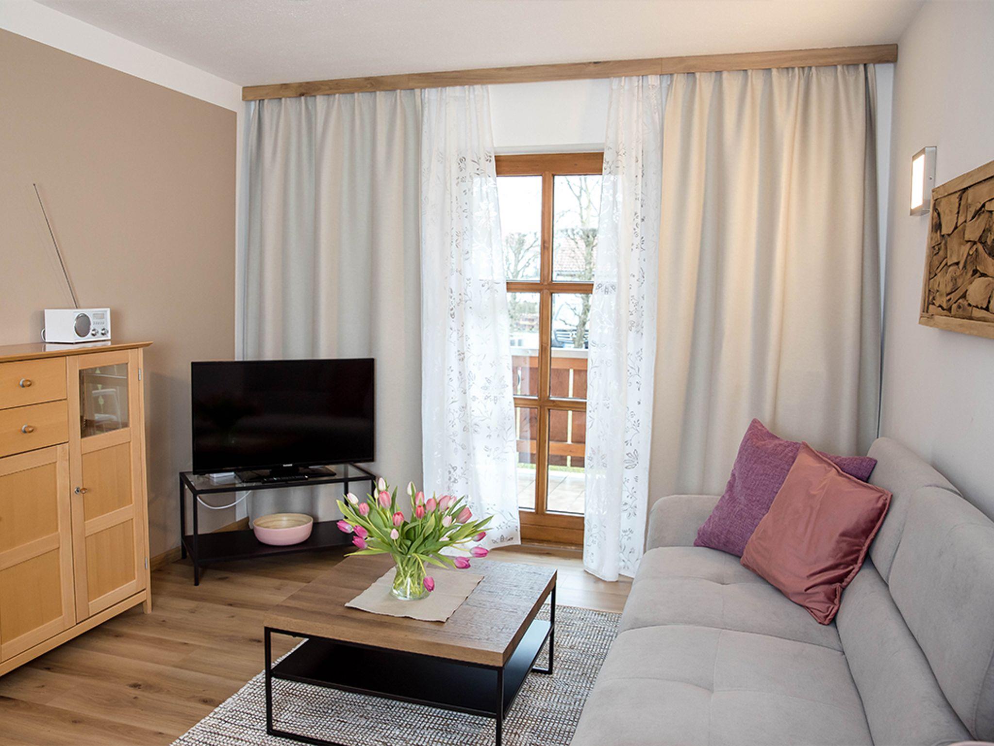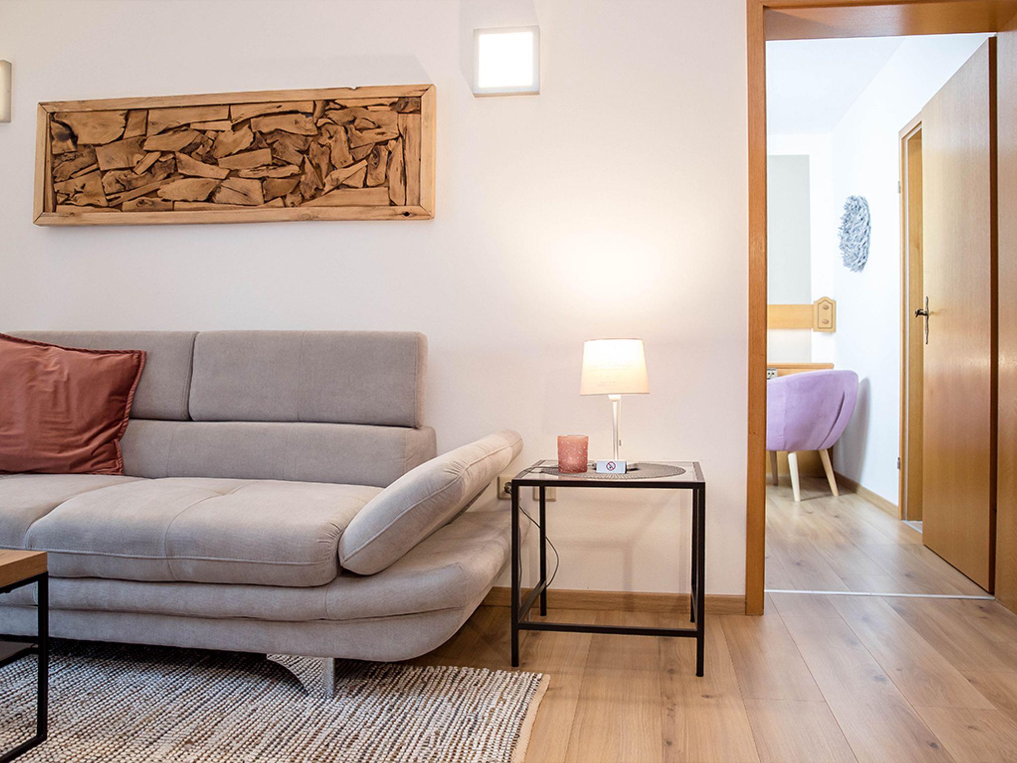 Unsere gemütliche, sonnige und geschmackvoll eingerichtete Ferienwohnung mit getrenntem Wohn- und Schlafraum ist perfekt für zwei Personen. Ein gemütliches Doppelbett (Bettwäsche vorhanden) garantiert einen erholsamen Schlaf. Der Wohnbereich, ausgestattet mit bequemen Leder Couchen und einem TV, ist der Zugang zum großzügigen Balkon. Ein Essbereich bietet genügend Platz um gemeinsam gemütlich zu Essen. Eine separate Küchenzeile mit Kochplatten, Kühlschrank, Kaffee und Teekocher, Kaffeemaschine, Toaster etc. steht bereit. Das Badezimmer, mit Dusche und WC ausgestattet, hält unseren Gästen einen Föhn und Handtücher bereit. Es würde uns freuen, wenn wir Sie in unserem Haus begrüßen dürfen - Ihre Familie Geisberger