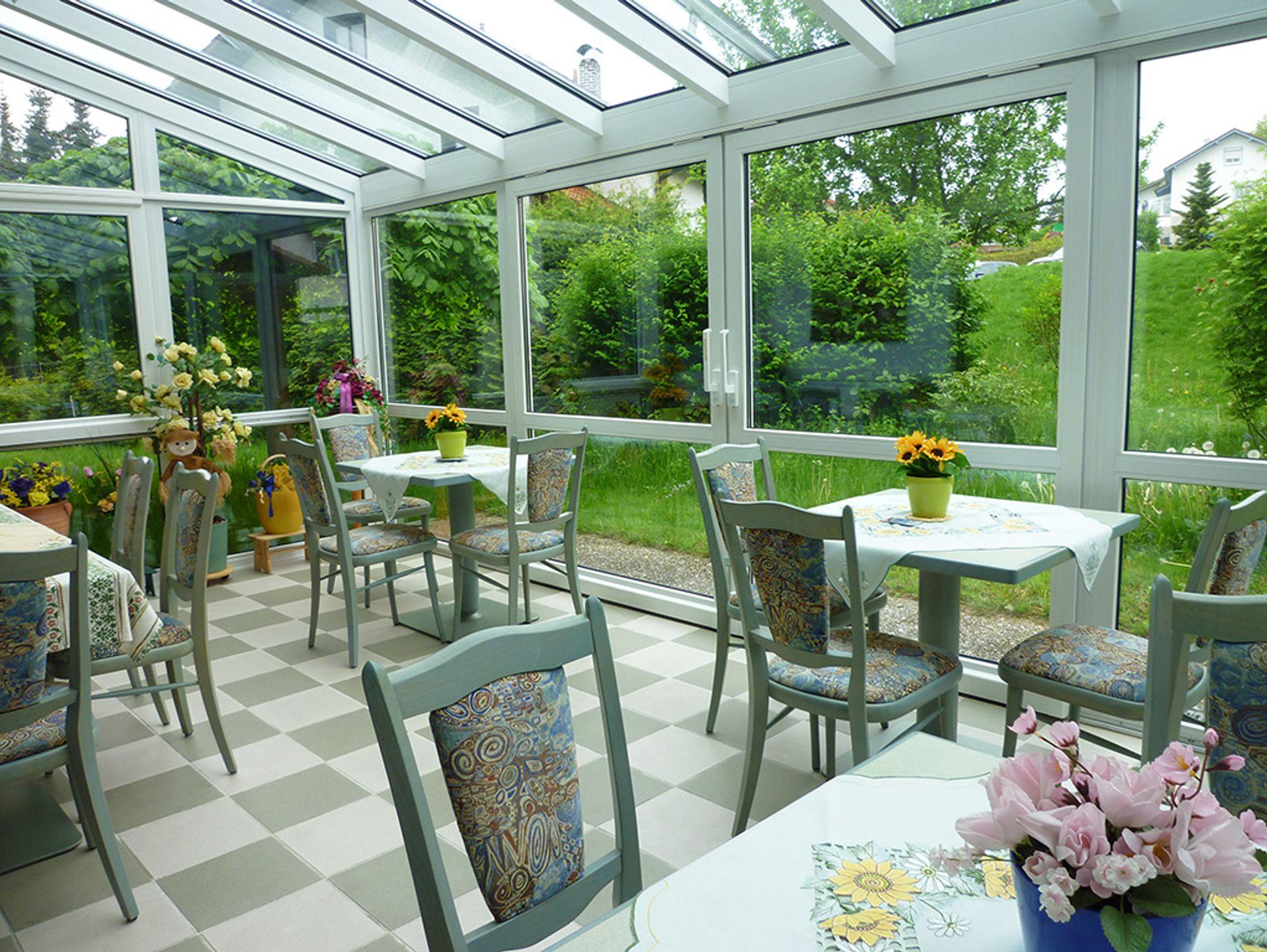 Unsere Zimmer (überwiegend Balkon) sind mit Du/WC. Der gemütliche Frühstücksraum (Frühstücksbuffet), Gästeküche, Brotzeitstüberl mit Kabel-TV, Wintergarten sowie die Liegewiese laden zum Entspannen ein. Es wurden alle Zimmer und Bäder im ganzen Haus renoviert.