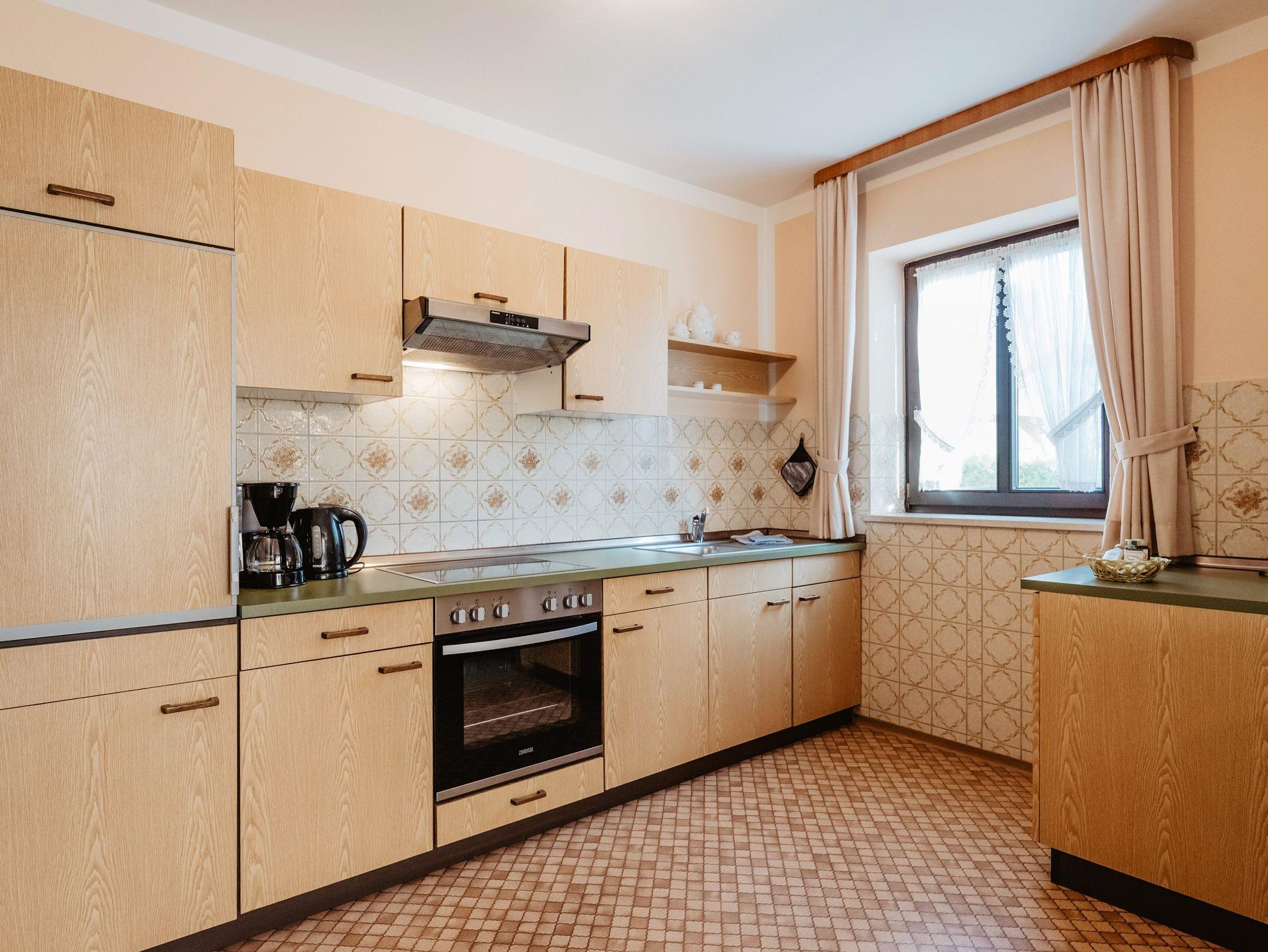 Das 60qm große Appartement ist bestens geeignet für bis zu 4 Personen. Der Schlafbereich besteht aus einem Doppelbett. Auf Anfrage können im Wohnzimmer zwei weitere Einzelbetten aufgebaut werden. Der Wohnbereich verfügt über einen TV, einer voll ausgestatteten Küchenzeile mit Kühlschrank, Kaffeemaschine und einem Backofen. Das Badezimmer mit Fenster verfügt über eine Badewanne, WC und Fön. Bettwäsche, Handtücher und Tisch- und Küchenwäsche sind vorhanden. Parkplätze und WLAN stehen kostenfrei zur Verfügung.