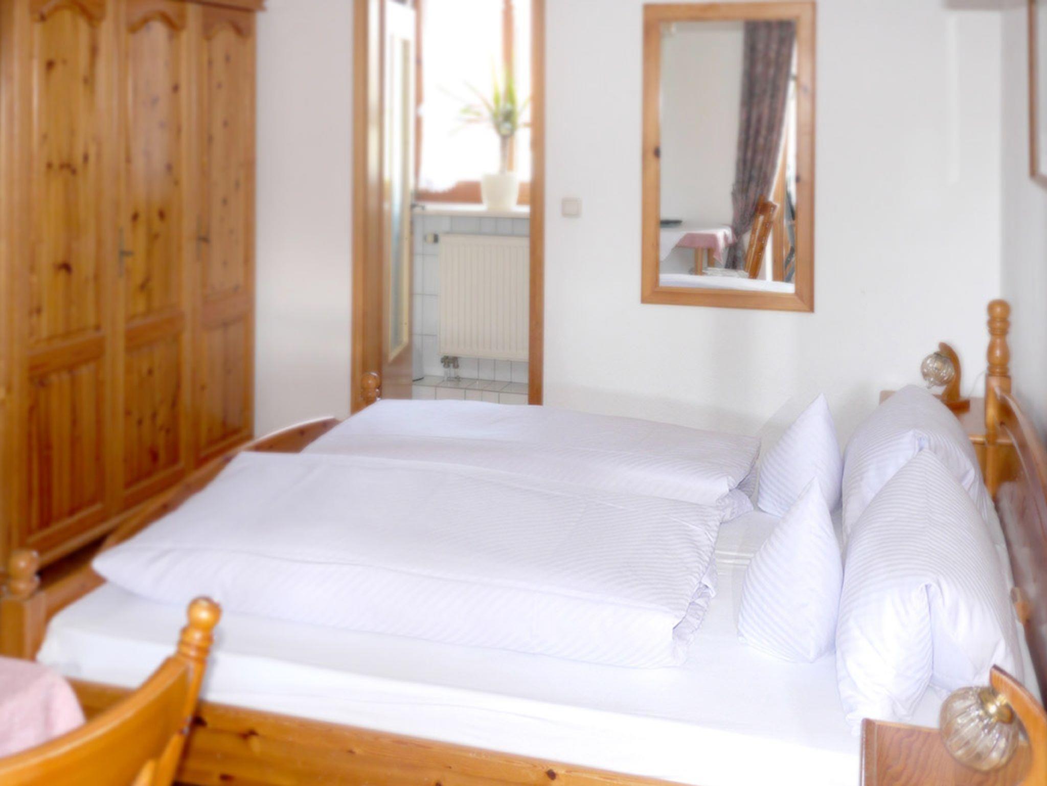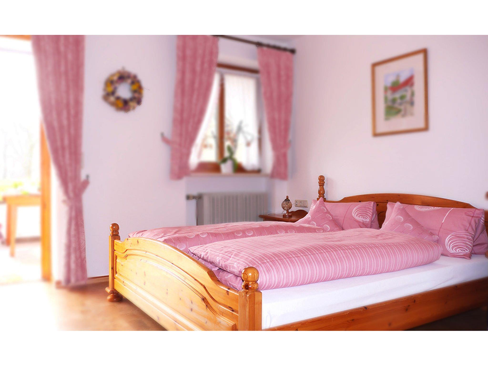Das helle und geräumige Doppelzimmer verfügt über ein Doppelbett. Auf den gemütlichen massiven Kieferholzmöbeln mit TV können Sie entspannte Abende verbringen. Das Badezimmer mit Dusche, WC und Fön rundet das Gesamtbild ab. Vor allem im Sommer können Sie sich auf dem eigenen Balkon entspannen. Selbstverständlich können Sie auch die Grillmöglichkeiten in unserem Garten nutzen.
