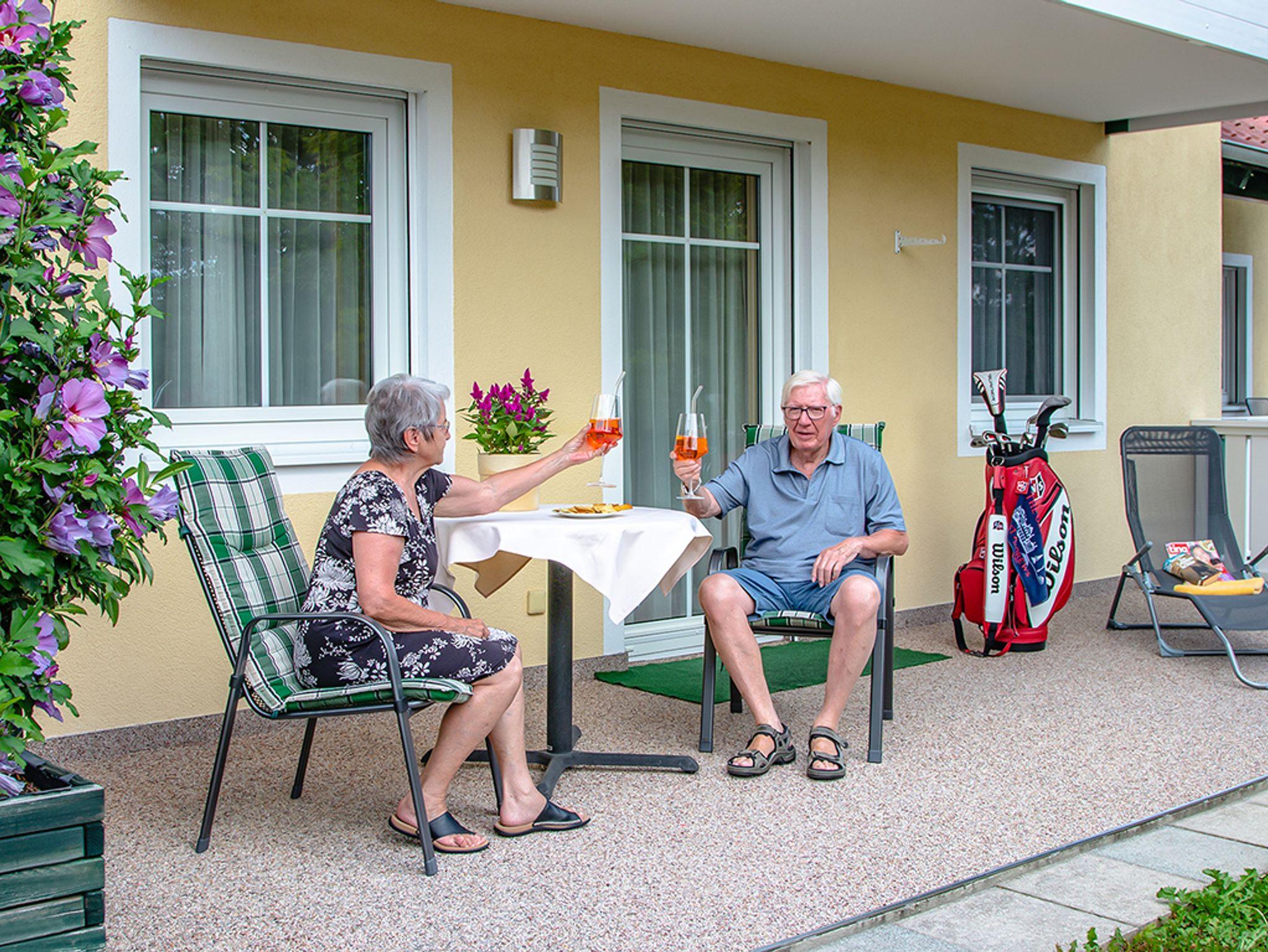 Südbalkon, auf Wunsch mit Mikrowelle, niedriger Duscheinstieg und Fußbodenheizung im großen Bad, eigener Carport, abschließbarer Fahrradschuppen, E-Ladestationen für Auto und Fahrräder, Drittes Bett im Schlafzimmer