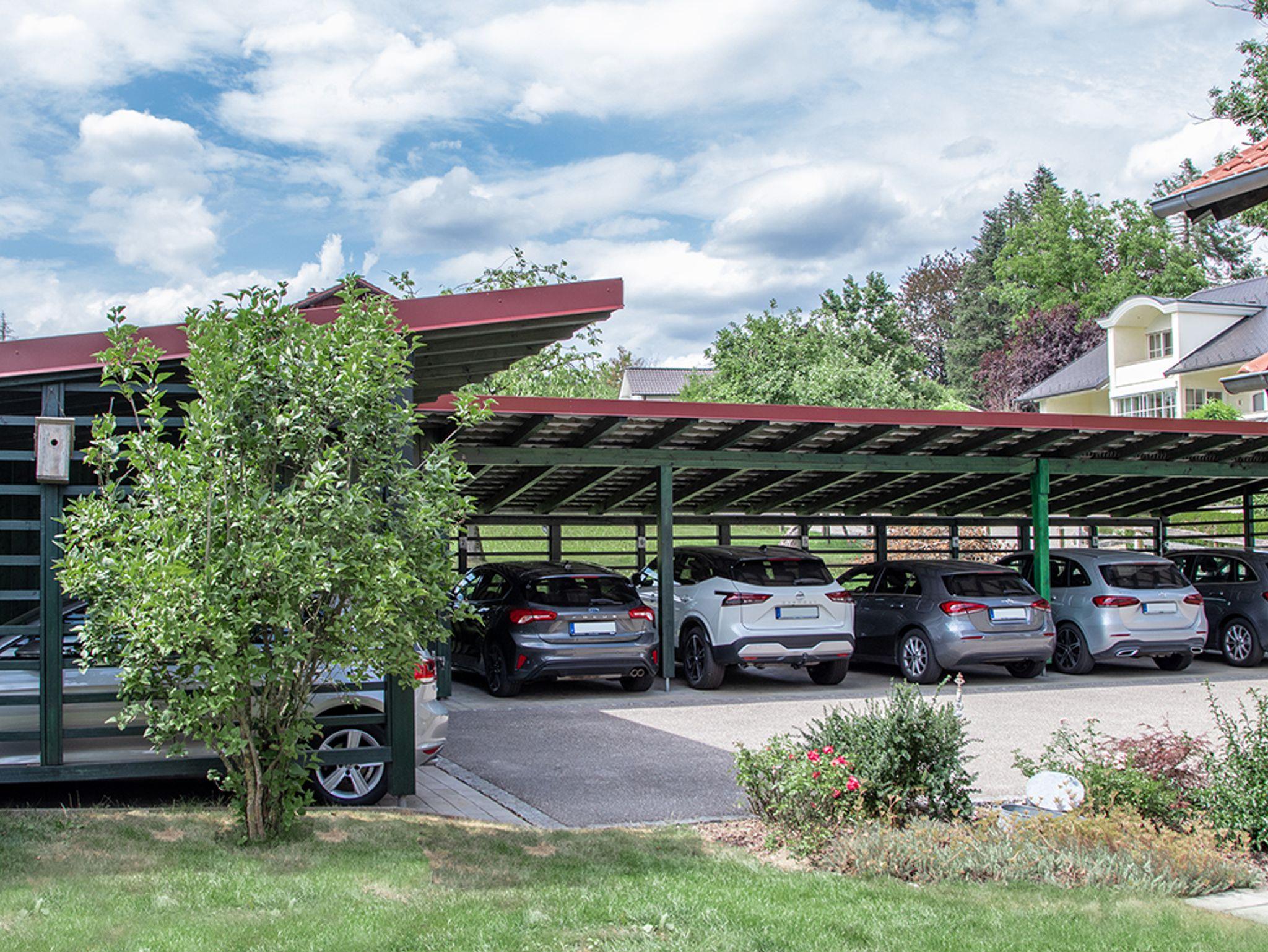 Große Südterrasse, niedriger Duscheinstieg, Fußbodenheizung im Wohnzimmer und Bad, eigener Carport, abschließbarer Fahrradschuppen, E-Ladestationen für Auto und Fahrräder, Souterrain
