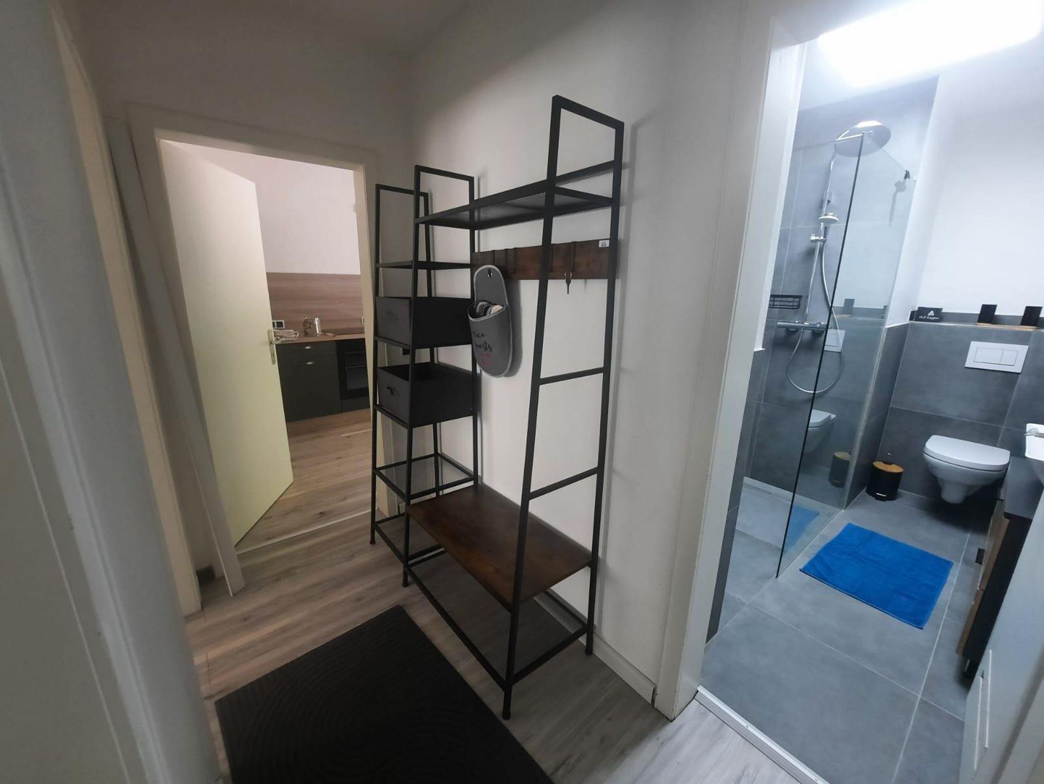 Die Wohnung befindet sich in einer ruhigen Seitenstraße, nur 100 Meter vom Rhein entfernt – ideal für Spaziergänge, Radtouren oder einfach zum Verweilen am Wasser. Trotz der naturnahen Lage erreichen Sie Einkaufsmöglichkeiten, Gastronomie und öffentliche Verkehrsmittel bequem zu Fuß.