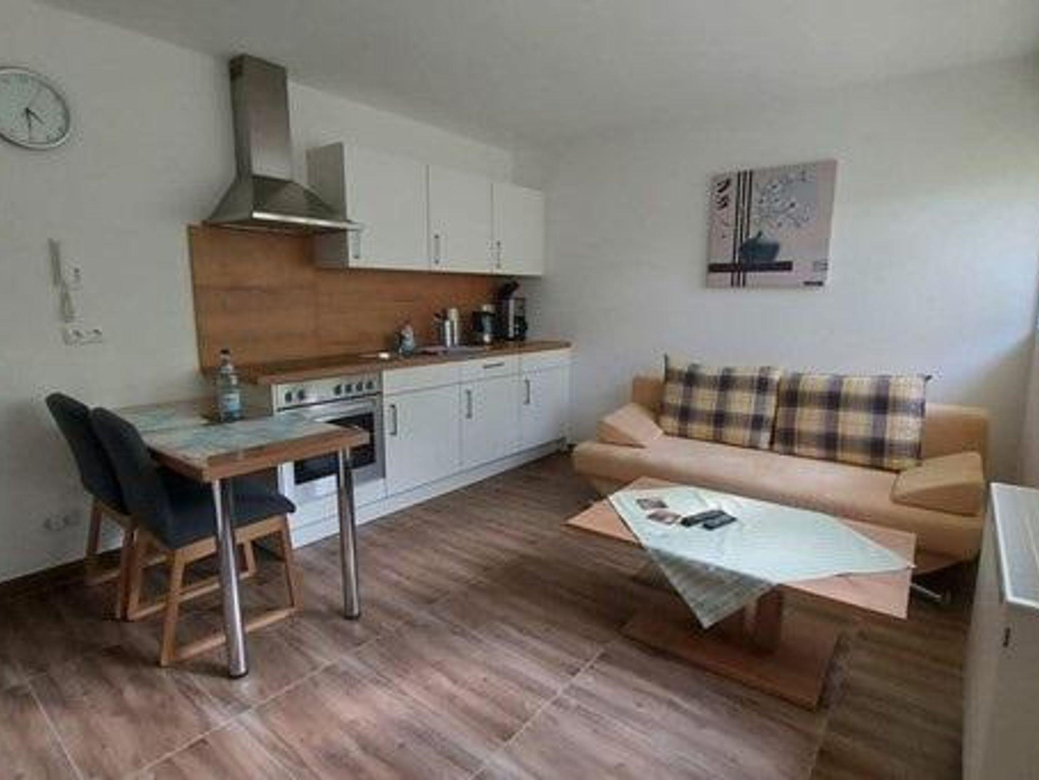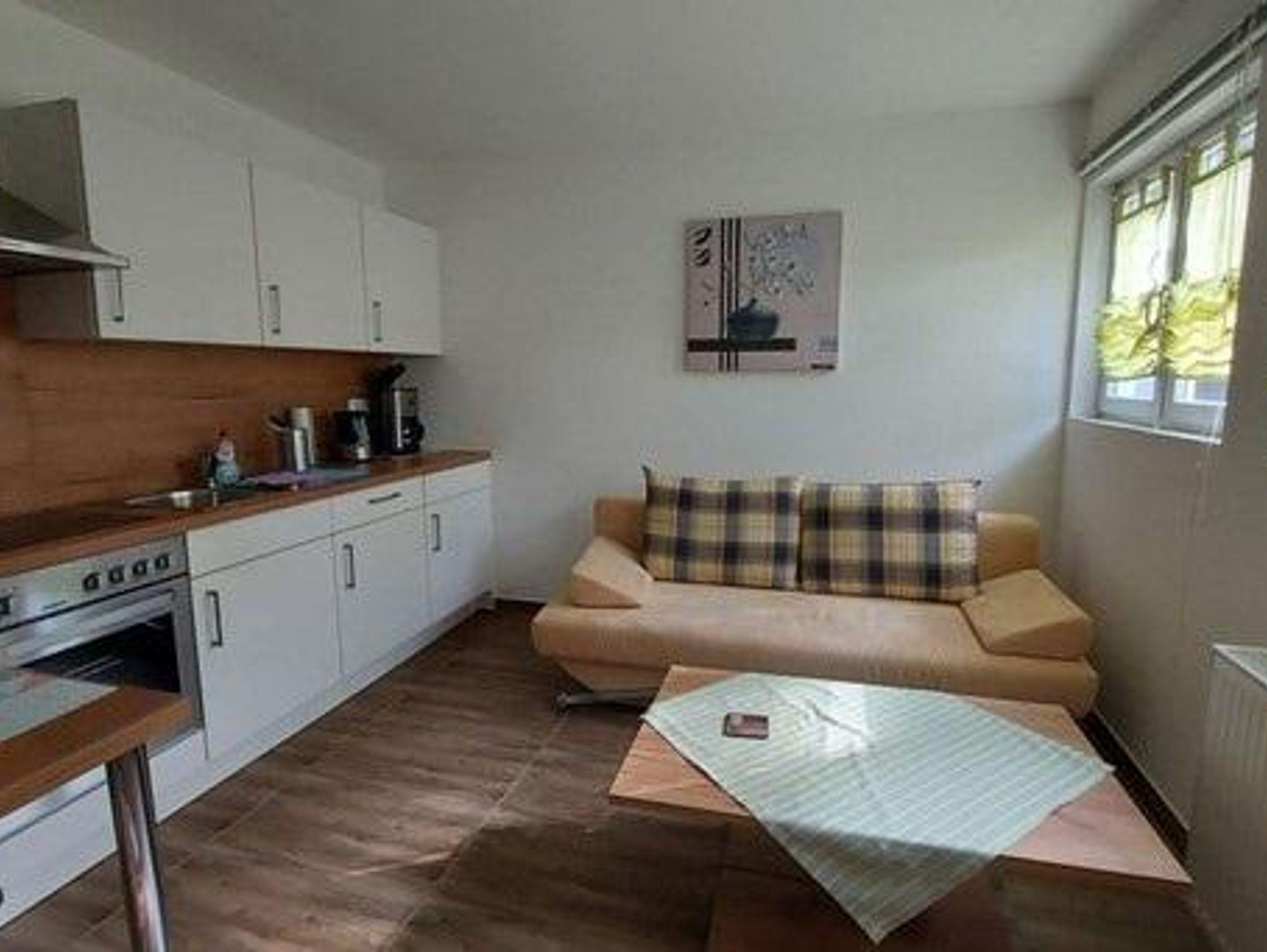 Die ca. 39 qm große Ferienwohnung liegt im Souterrain und ist modern eingerichtet. Sie verfügt über ein Wohnzimmer mit Küchenzeile, ein Schlafzimmer (mit Doppelbett) und ein Tageslichtbad mit Dusche, WC und Waschmaschine. Schlafcouch im Wohnzimmer für eine Person. Die Ferienwohnung ist vom Zentrum und den Sehenswürdigkeiten ca. 3,5 km entfernt. Ruhige Lage und idealer Ausgangspunkt zum Wandern; eine Bushaltestelle befindet sich in unmittelbarer Nähe, ein Supermarkt mit angeschlossener Bäckerei und Zeitschriftenkiosk befinden sich in ca. 600 m Entfernung.