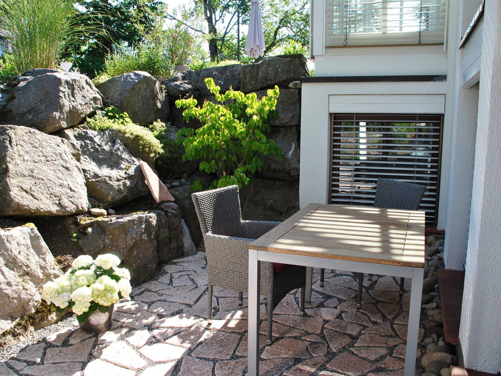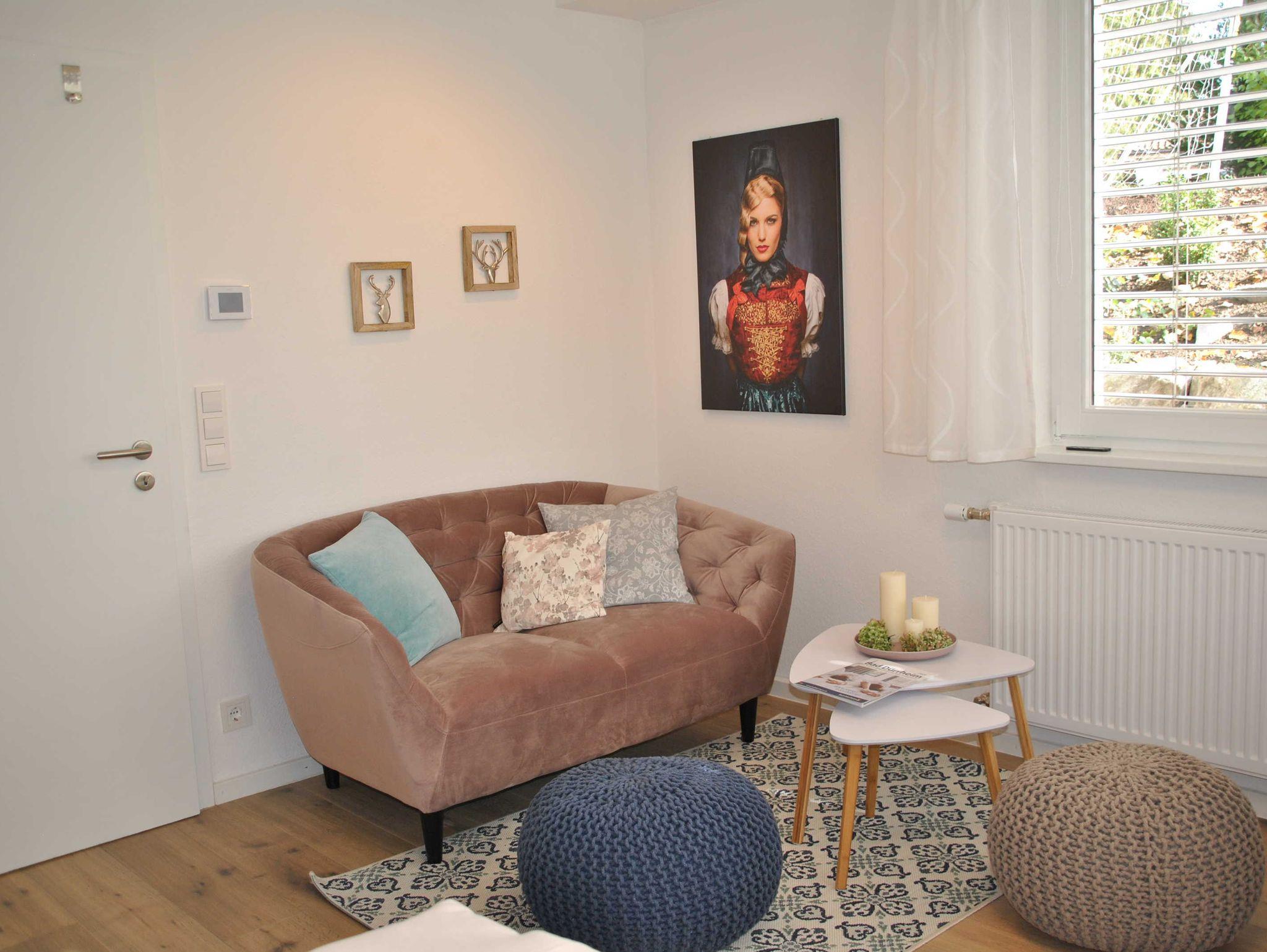 Modern und komfortabel eingerichtete Ferienwohnung mit vielen Extras. Sie liegt im Untergeschoss und verfügt über einen separaten Eingang, der über eine Treppe zu erreichen ist. Die Ferienwohnung besteht aus einem Wohn-/Schlafzimmer mit Essbereich, einer Küche, einem Bad und Flur. Auf der großzügigen Süd-Terrasse können Sie die Sonne genießen. Ein PKW-Stellplatz am Haus ist vorhanden.