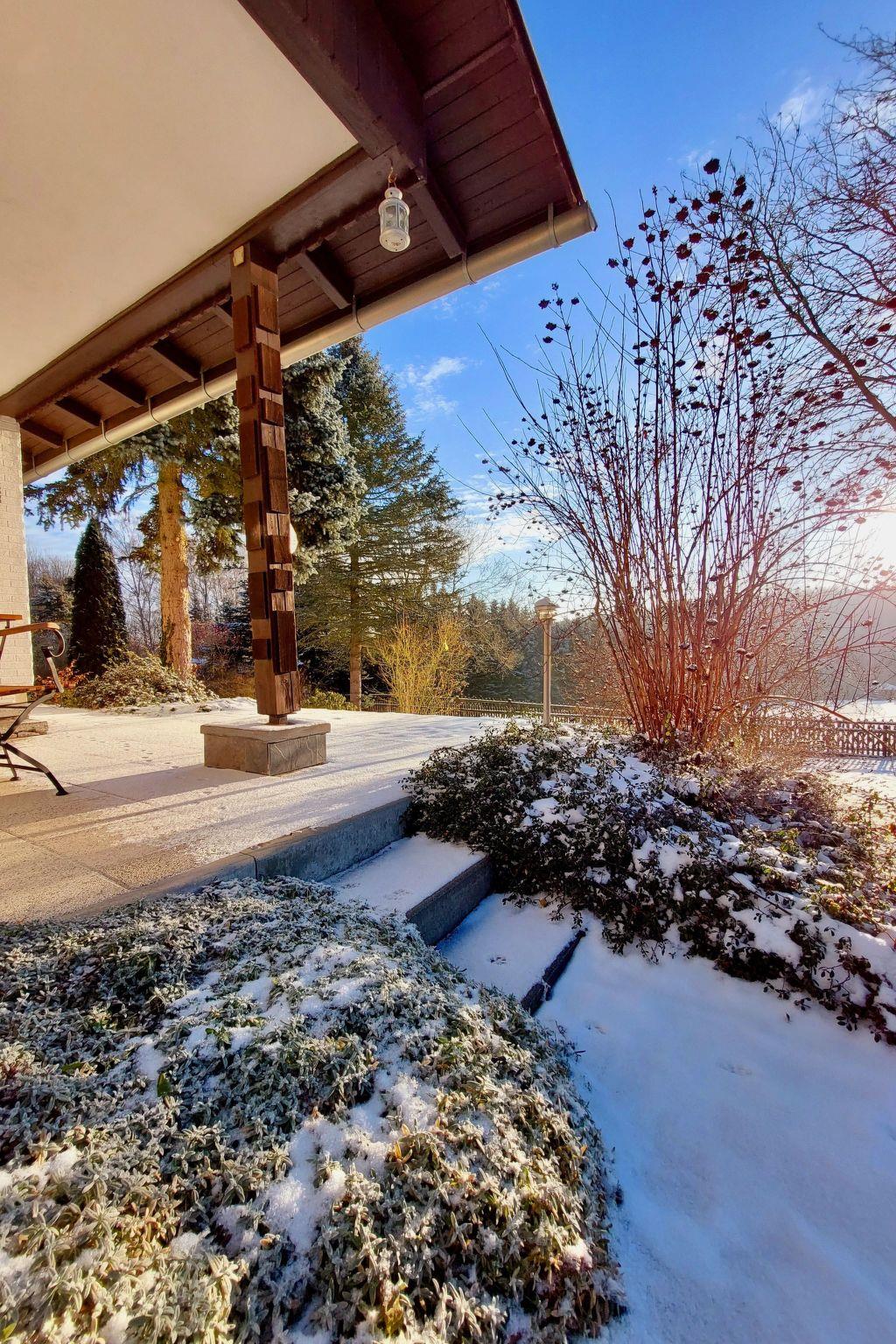 The 600 square metre plot is fully fenced and for exclusive use. The partially covered terrace with garden furniture invites you to linger.