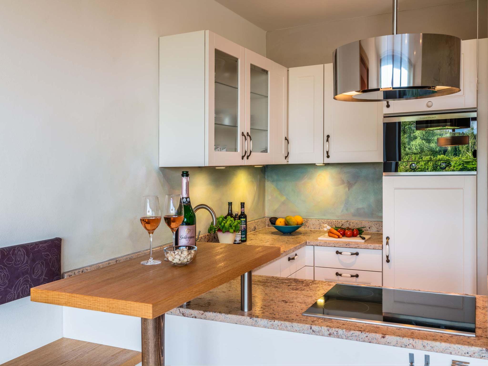 Einen wunderschönen Blick auf den Pelhamer See und die Chiemgauer Alpenkette bietet das große Panoramafenster des lichtdurchfluteten, offenen Wohnraums des Appartements Rosengarten“. An sonnigen Tagen ist die Terrasse eingebettete in Blumen und Rosen und bereichert das Appartement. Ein Traum für jeden Naturliebhaber und pure sommerliche Lebensart!