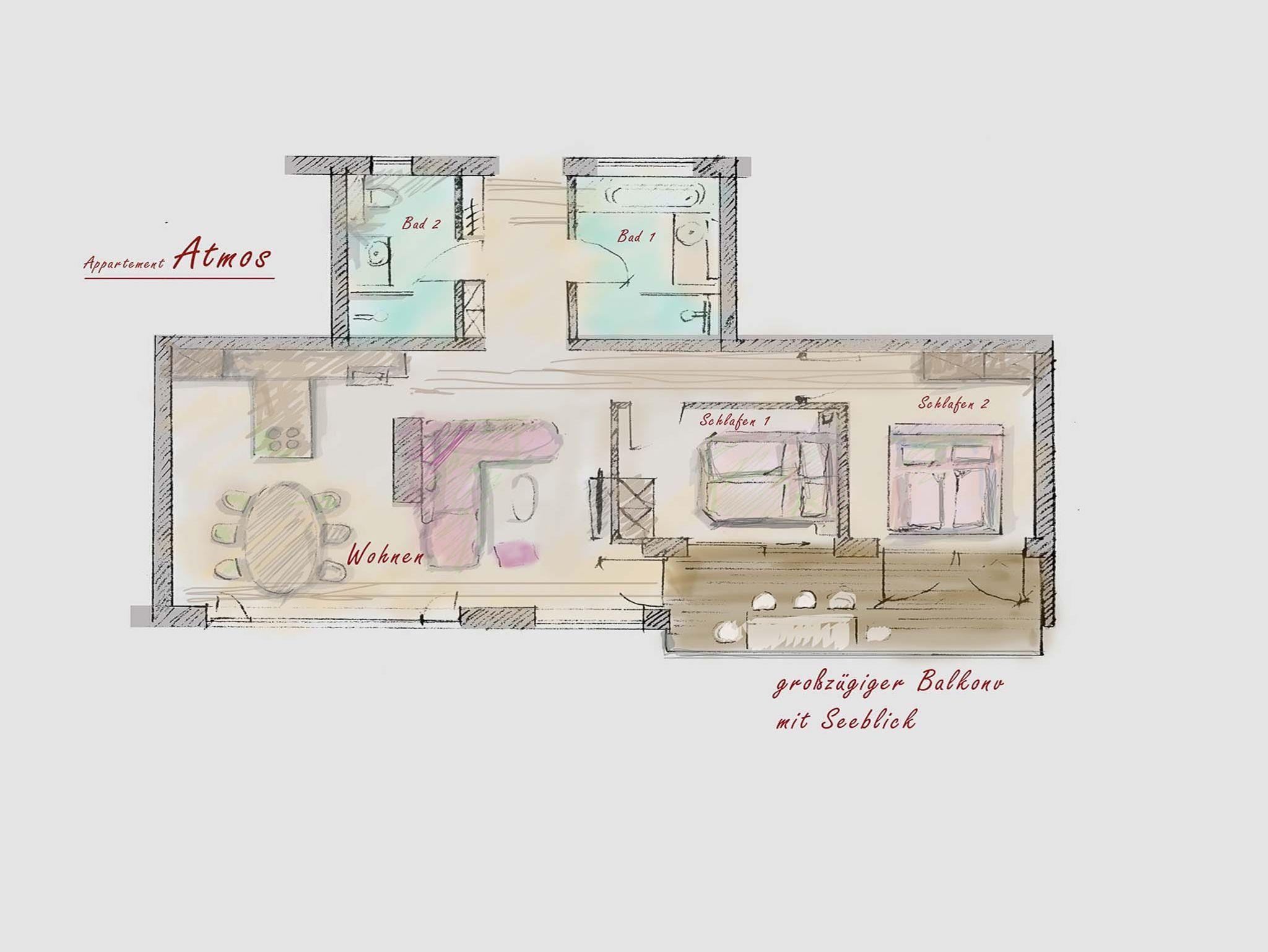 Lebensart am See, Atmos, 91 qm Obergeschoss, 2 separate Schlafzimmer, 2 Bäder