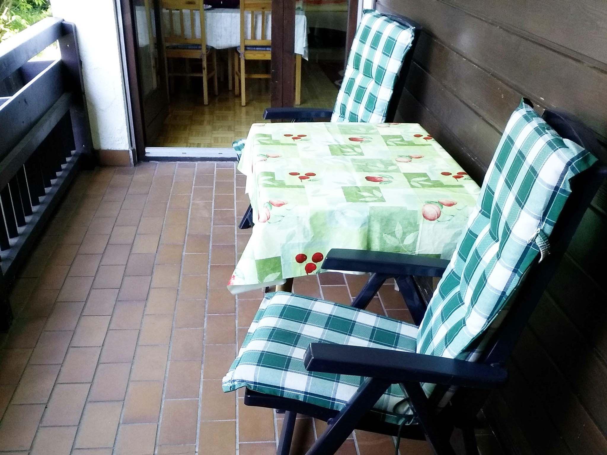 Die 35 qm große Ferienwohnung mit kleiner vollausgestatteter Küche und Bad (Badewanne) ist renoviert/ möbliert. Die Wohnung verfügt über einen wunderschönen großen Westbalkon (Abendsonne). Für die ausklappbare Schlafcoach (160 x 200 cm) im Wohnbereich wird die Bettwäsche gestellt und wöchentlich gewechselt. TV mit Receiver ist vorhanden. Im Haus stehen Gemeinschaftswaschmaschinen und Trockner gegen eine geringe Gebühr zur Verfügung.