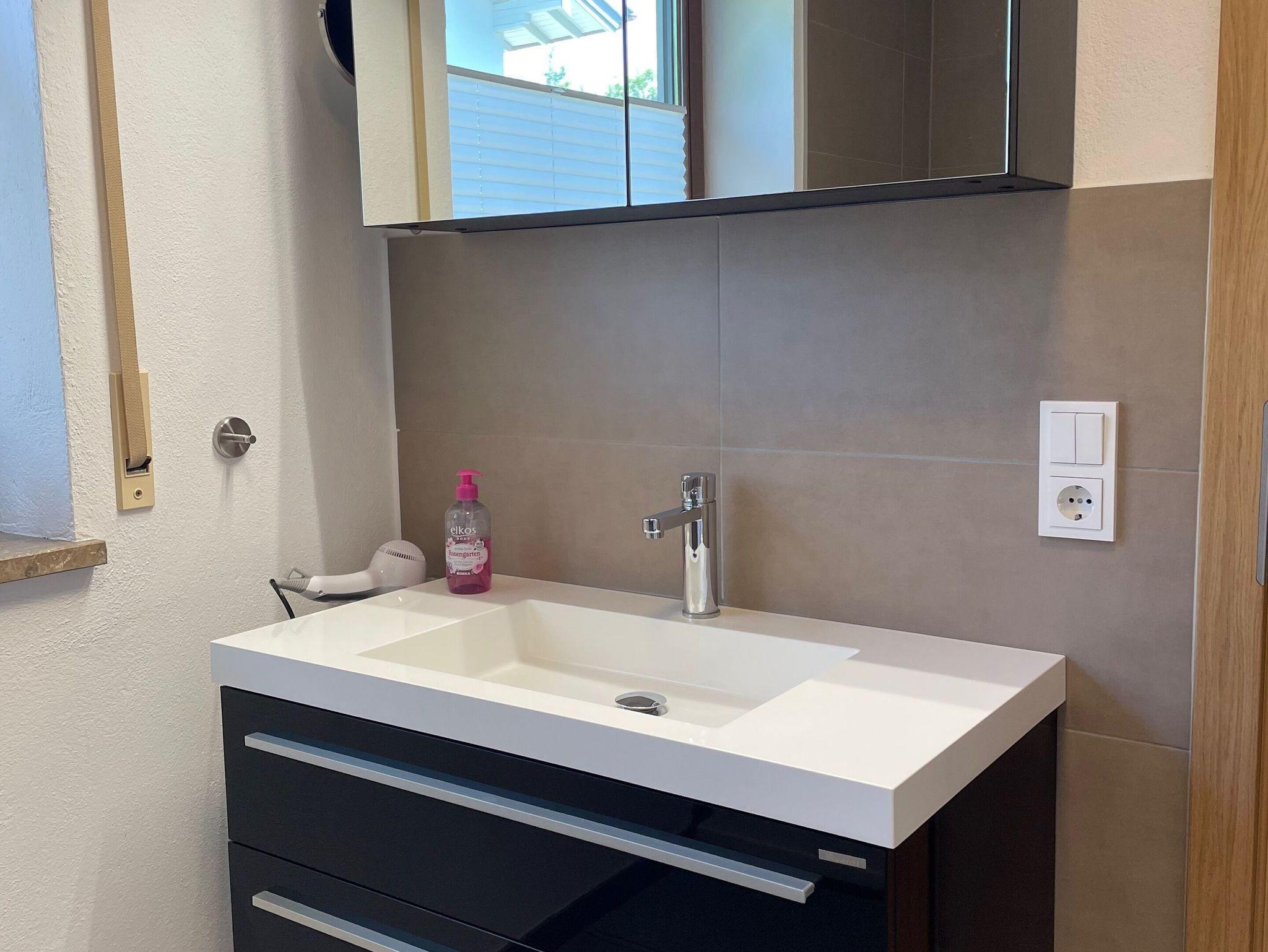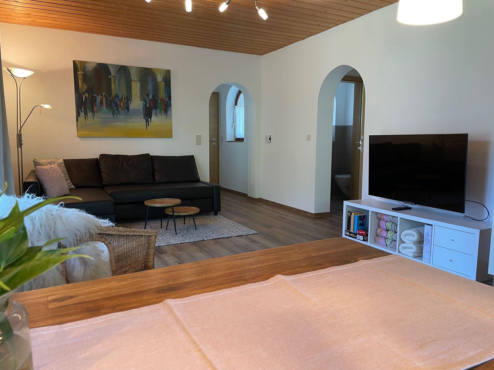 Willkommen in unserer liebevoll eingerichteten Einliegerwohnung – der perfekte Rückzugsort für erholsame Tage. Die gemütliche Wohnung befindet sich in einem Einfamilienhaus und verfügt über einen separaten Eingang für maximale Privatsphäre. Genießen Sie Ihr Frühstück auf der sonnigen Terrasse, entspannen Sie auf der Liegewiese oder machen Sie es sich auf den Sonnenliegen gemütlich. Ein Parkplatz direkt auf dem Grundstück sorgt für zusätzlichen Komfort. Die moderne, voll ausgestattete Einbauküche lässt keine Wünsche offen: Geschirrspüler, Umluftbackofen, Kühl-/Gefrierkombination, Dunstabzugshaube, Wasserkocher, Kaffeemaschine und Handmixer stehen Ihnen zur Verfügung. Direkt angrenzend lädt ein gemütlicher Essplatz zum Verweilen ein.