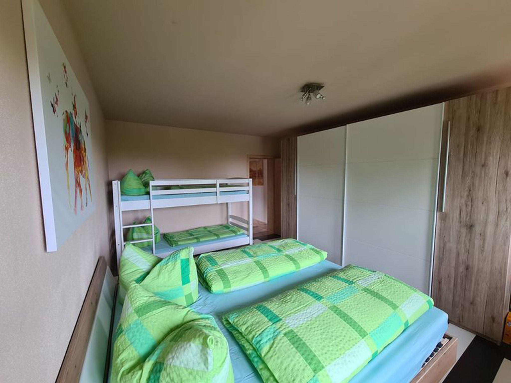 Diese Ferienwohnung liegt sehr ruhig auf einem Hof im 1. Stock. Es ist eine Wohnessküche mit Essbereich, Sofa und TV sowie einer Küchenzeile mit 2 Kochfelder ohne Backofen, ein Badezimmer und 1 Schlafzimmer mit Doppelbett und Etagenbett vorhanden. Ein kostenloser Parkplatz am Haus steht ebenfalls zur Verfügung. Zur Gemeinschaftsnutzung steht eine Grillhütte, Waschmaschine, eine Terrasse sowie ein großzügiger Kinderbereich zur Verfügung.