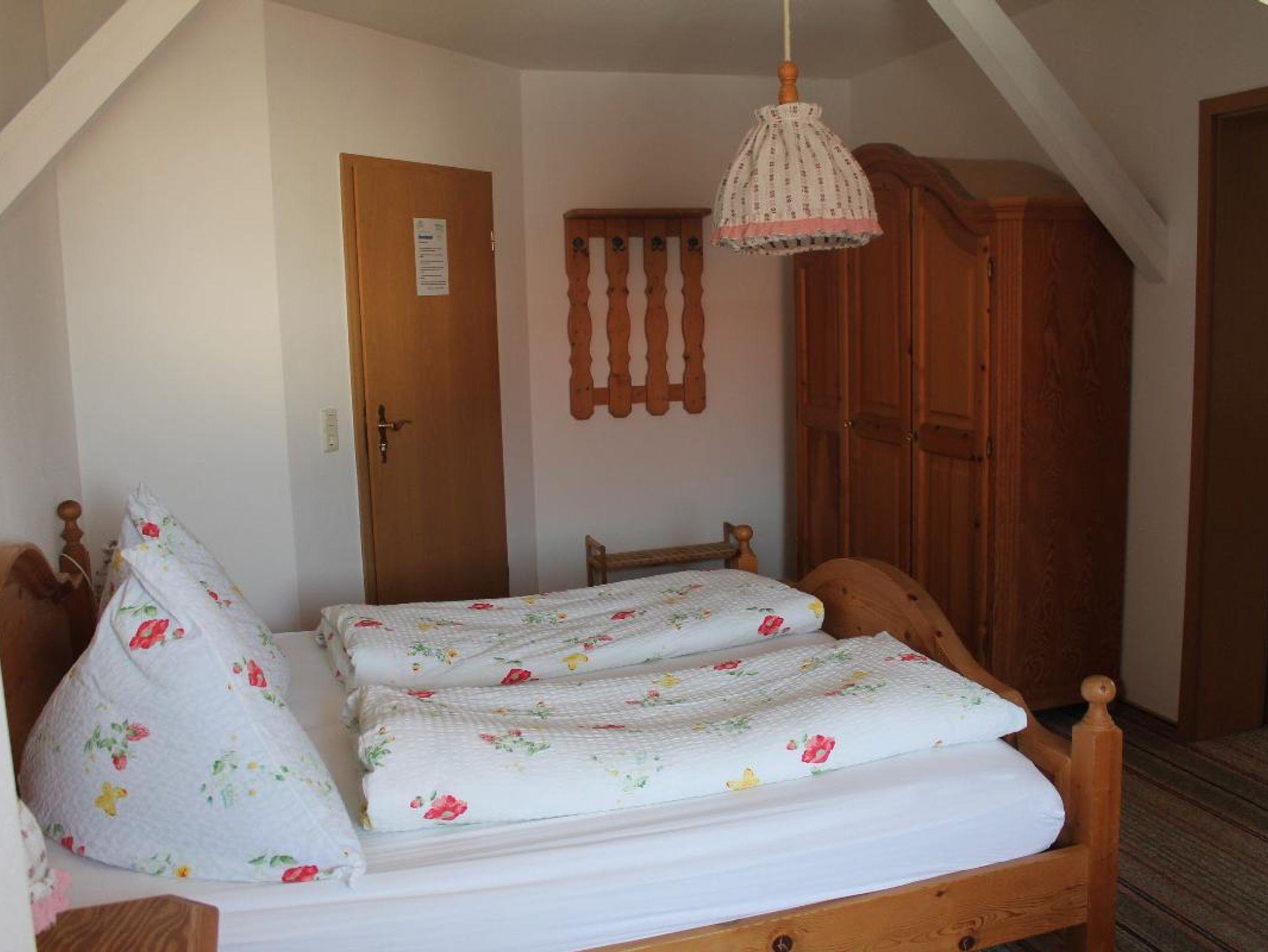 Das Zweiraumappartement Typ 11 (37qm) befindet sich in der 2. Etage und bietet Platz für 2 Personen. Es wurde mit viel Holz gearbeitet, die Möbel sind im Landhausstil. Im schönen, gemütlichen Schlafzimmer steht ein bequemes Doppelbett und ein Sessel. Das Bad besteht aus Dusche und WC. Im hellen, lichtdurchfluteten Wohnzimmer steht eine hölzerne Eckbank mit Esstisch, ein SAT-TV und Telefon. Außerdem befindet sich dort die Küche mit Herd, Spüle und Kaffeemaschine sowie Besteck. Auf dem schönen Balkon in östliche und südliche Richtung können Sie die Sonne genießen. Das WLAN können Sie gratis nutzen. Eine Waschmaschine mit Münzbetrieb ist vorhanden.