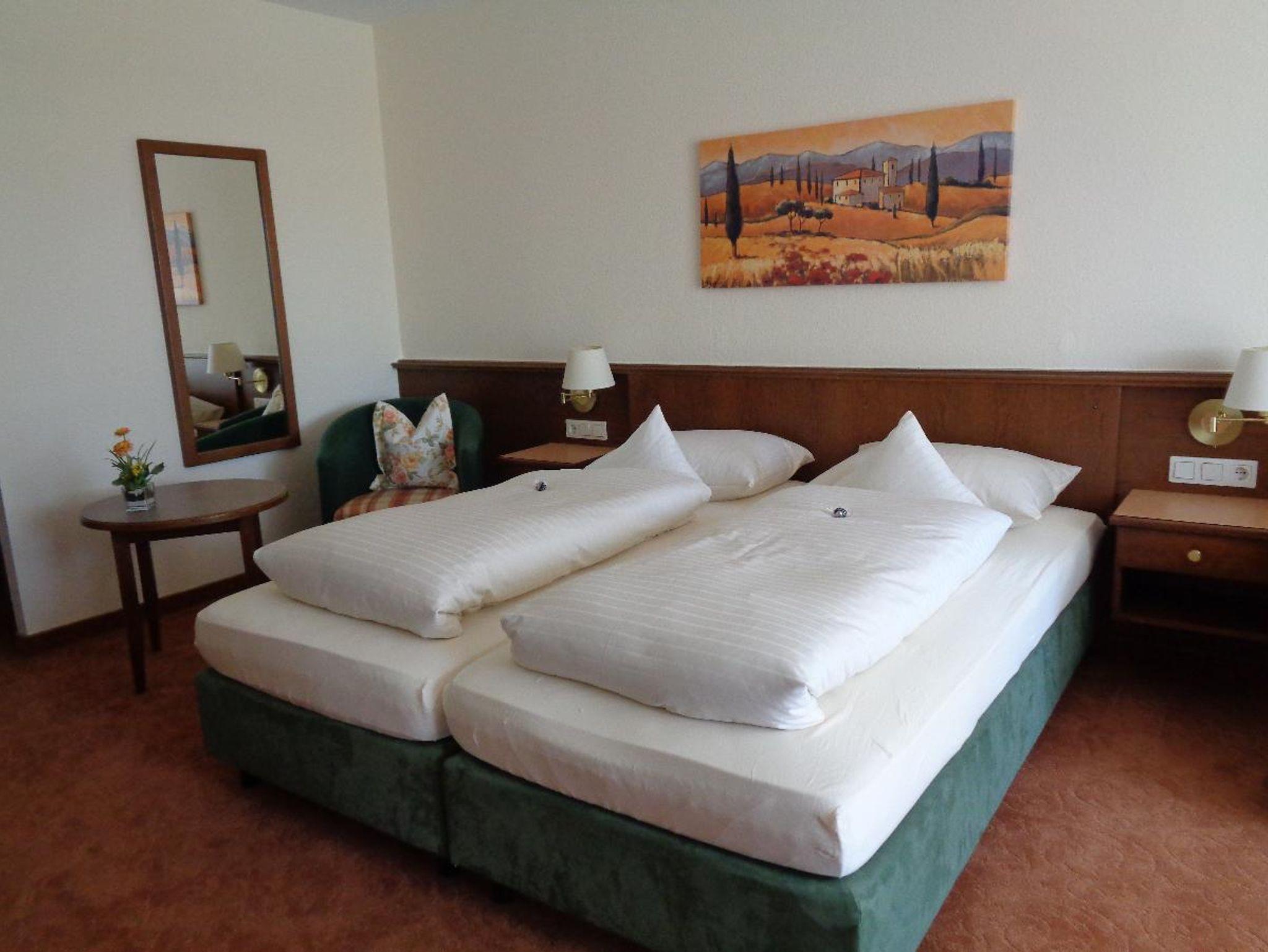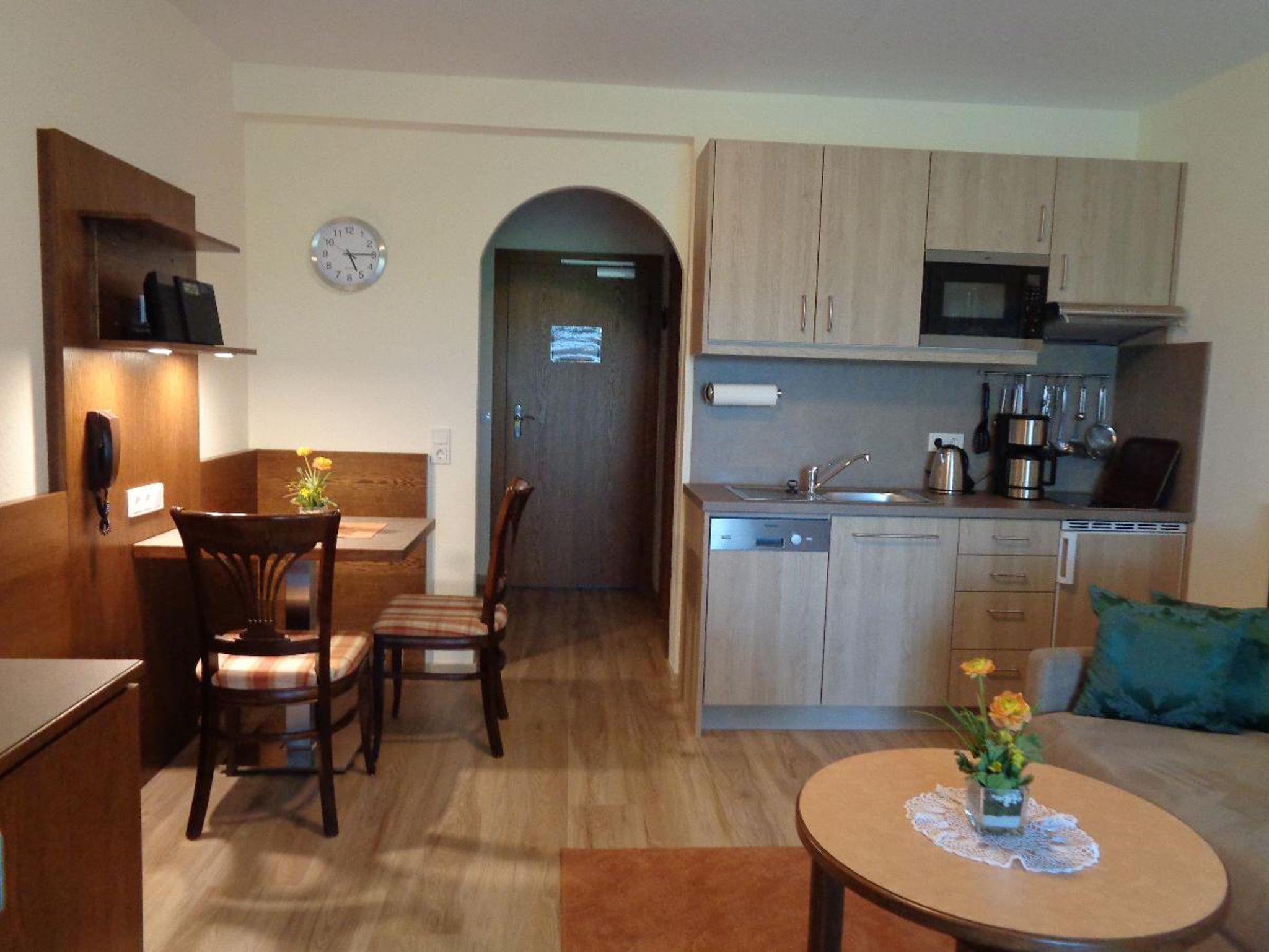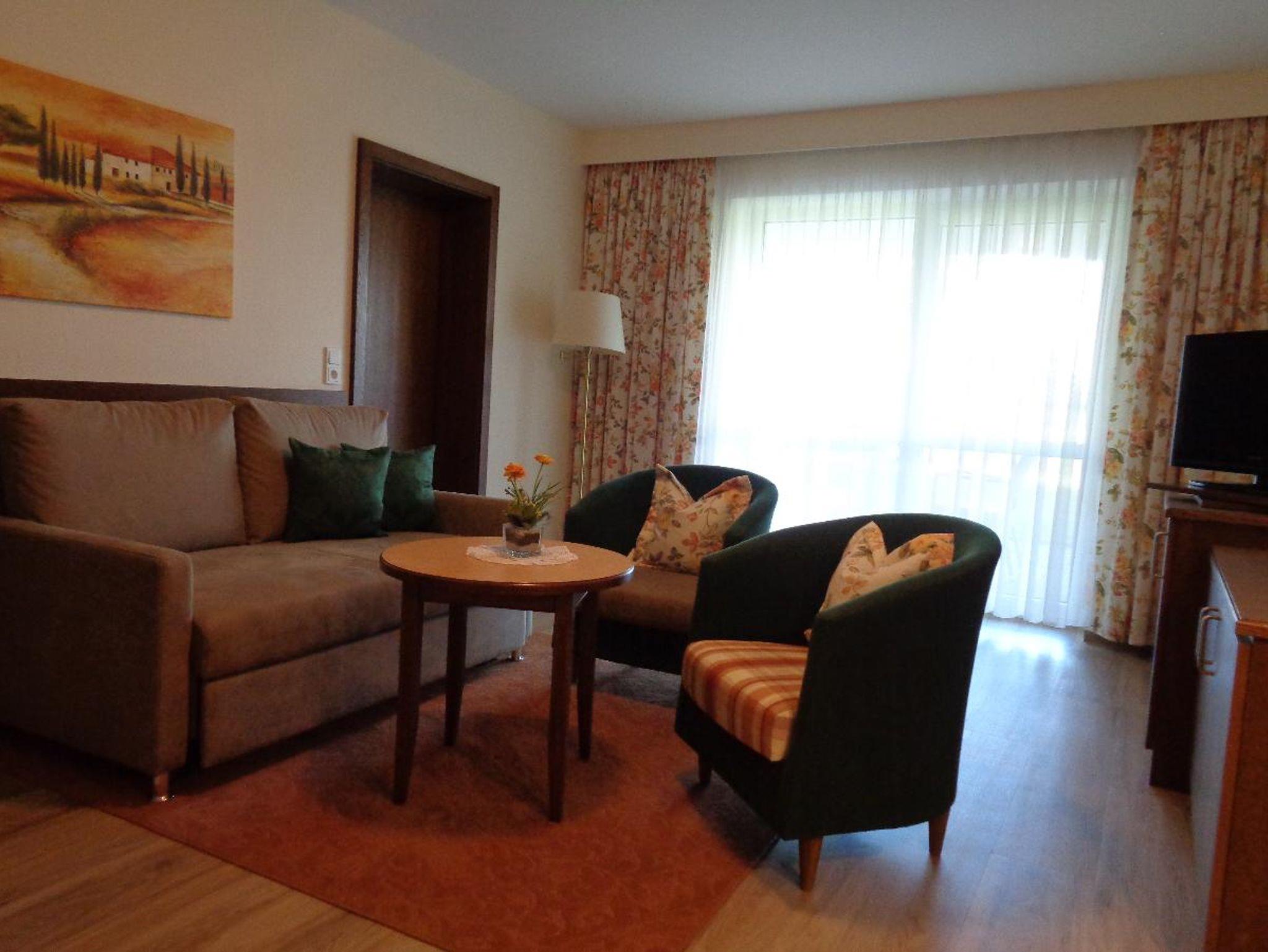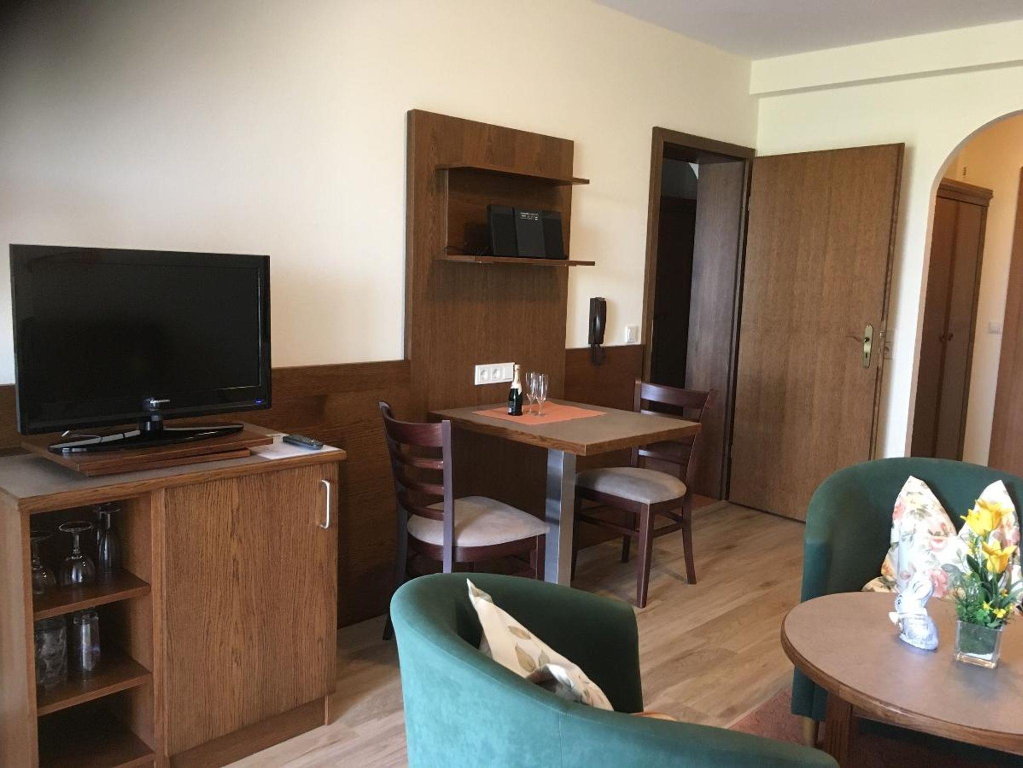 Ruhige Alleinlage zwischen Johannesbad und Innauen, Nichtraucherhaus mit Lift, zu unserer bestehenden Ferienwohnung „Der Klassiker“ mit knapp 70 m2 entstanden 6 neue Ferienwohnungen, 5 Zweizimmer-Ferienwohnungen mit 55 m2 und 1 Einzimmer-Appartement mit 26 m2. Alle Appartements haben möblierten Balkon oder Terrasse und sind mit Dusche/WC, Föhn, moderner Küchenzeile mit Spülmaschine, Sat-TV, Radiowecker, Mini-Stereoanlage, Tresor, teilweise Internetanschluss und kostenlosem WLAN ausgestattet Ebenso gehören ein wunderschöner, gepflegter Garten mit große Liegewiese, Parkplatz am Haus und ein gepflegtes Restaurant zur Anlage. Hunde sind leider nicht erlaubt.