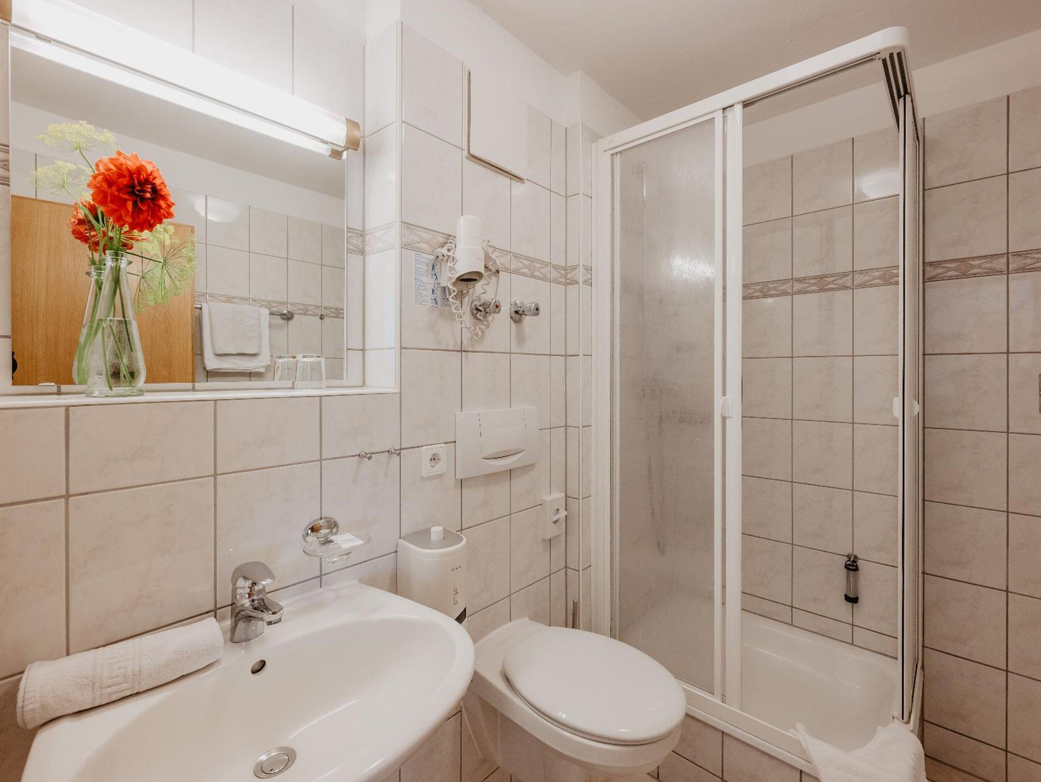 Das helle und geräumige Zweibettzimmer verfügt über zwei Einzelbetten. Auf den gemütlichen Sitzgelegenheiten mit TV können Sie entspannte Abende verbringen. Das Badezimmer mit Dusche und WC rundet das Gesamtbild ab. Bitte beachten Sie, dass keine Haustiere erlaubt sind.