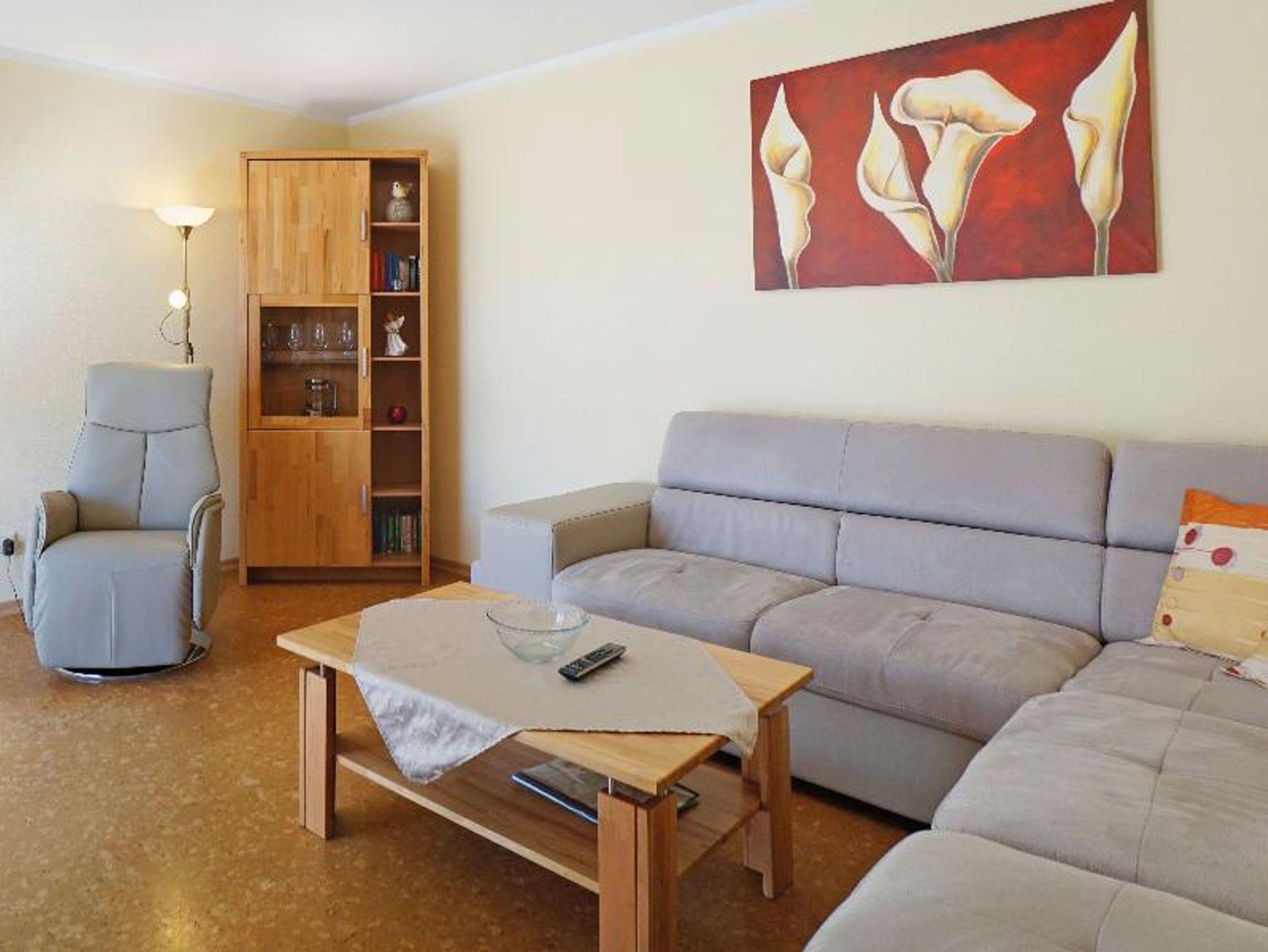 Das schöne, große 2-Zimmer-Appartement Typ E (ca. 59qm) ist für 2 Personen ausgelegt und befindet sich im Erdgeschoss auf der Südseite. Im schönen Schlafzimmer befindet sich ein bequemes Doppelbett. Im geräumigen Wohnzimmer befindet sich ein Esstisch, Radio, SAT-TV, Couch und ein kleiner Couchtisch. Die separate Küche ist mit einem 4-Platten Herd, Backofen, Kühlschrank, Wasserkocher, Kaffeemaschine, Spüle und Geschirr ausgestattet. Das Bad besteht aus Dusche und WC. Auf dem schönen Balkon/ Terrasse können Sie die Sonne und Aussicht genießen.