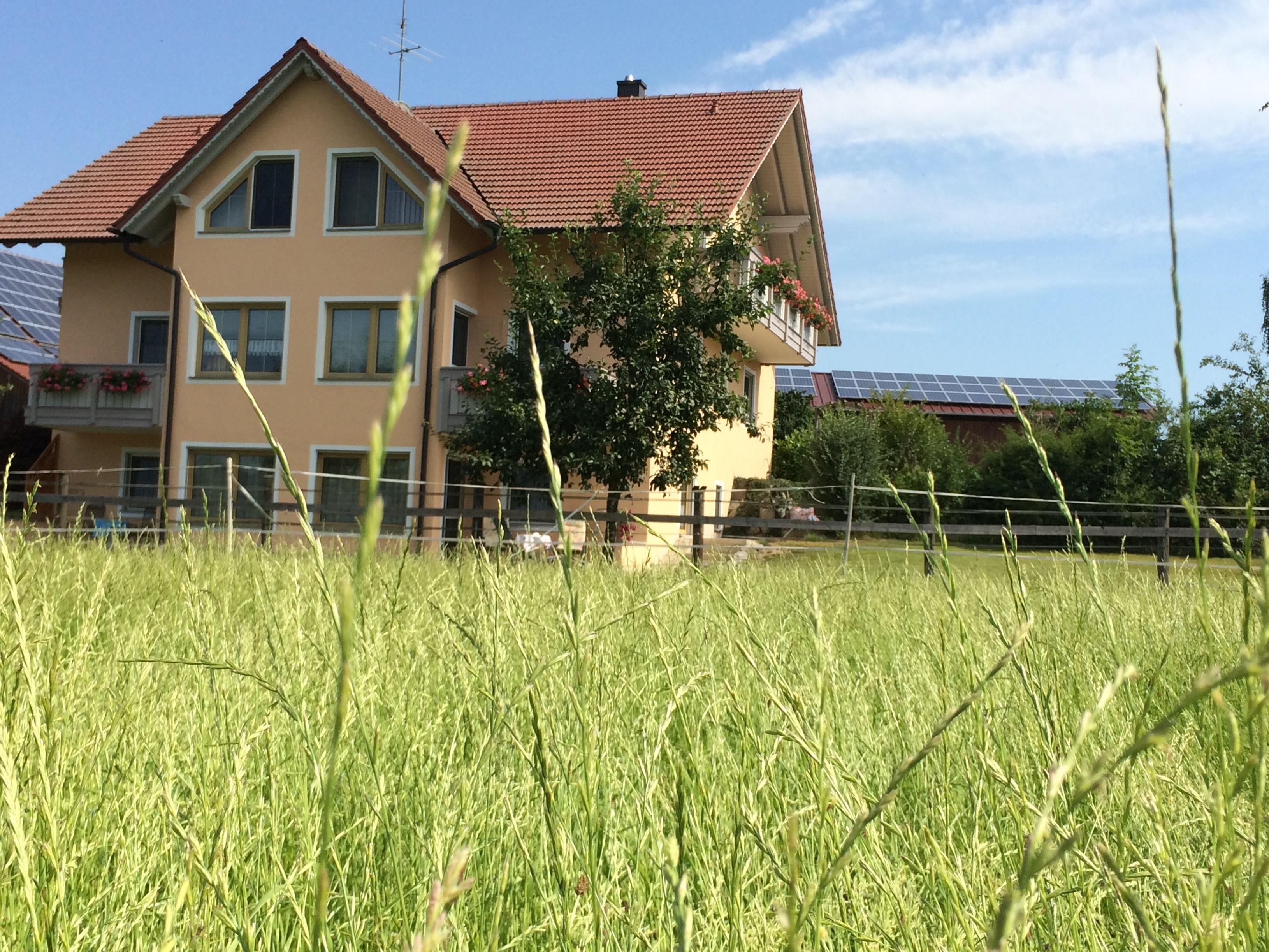 Unser Ferienhaus liegt in ruhiger Lage mitten im Grünen. Aus allen Wohnungen haben Sie einen idyllischen Ausblick auf das Inntal, Pferdekoppeln, Wiesen und Felder.