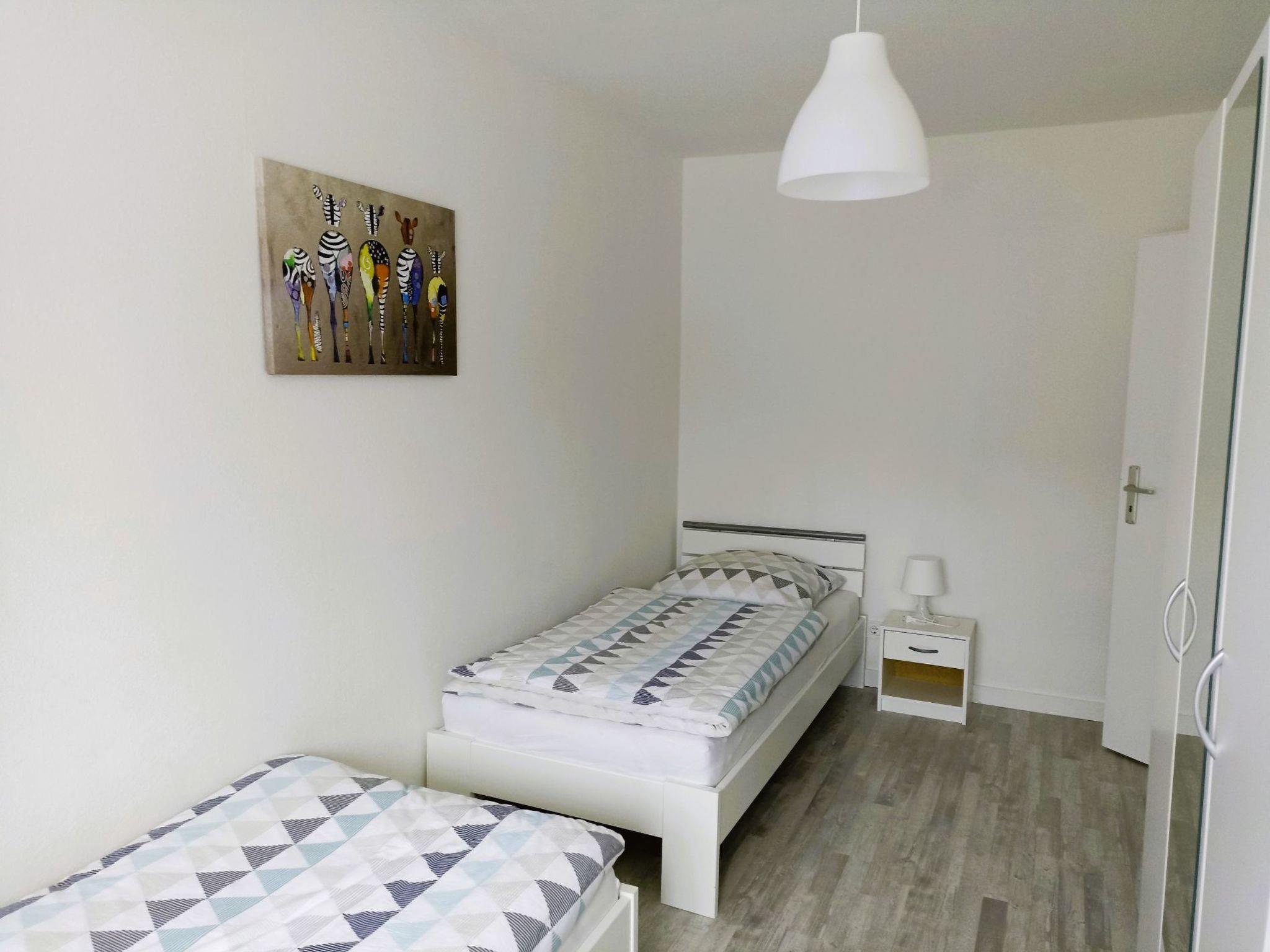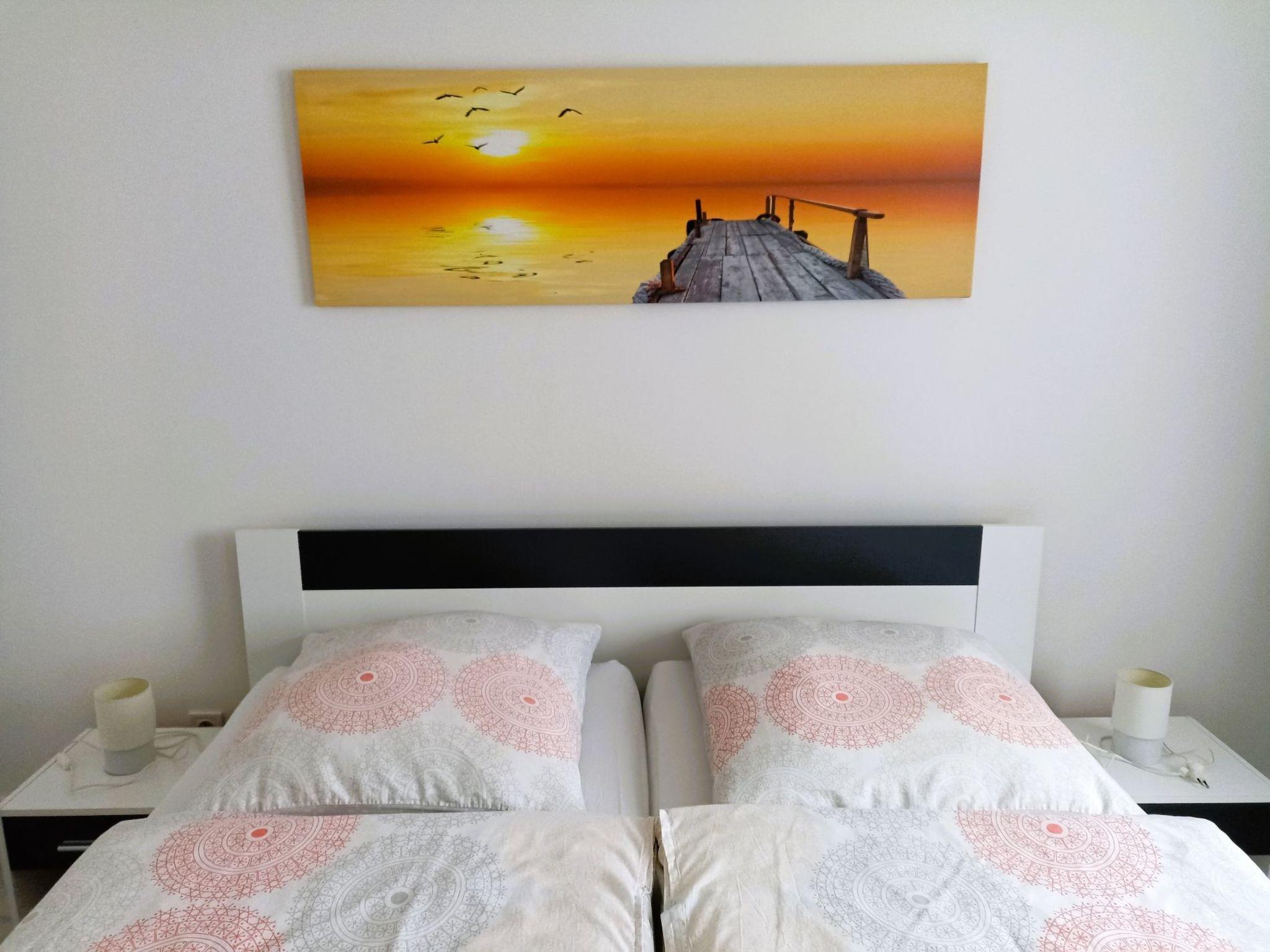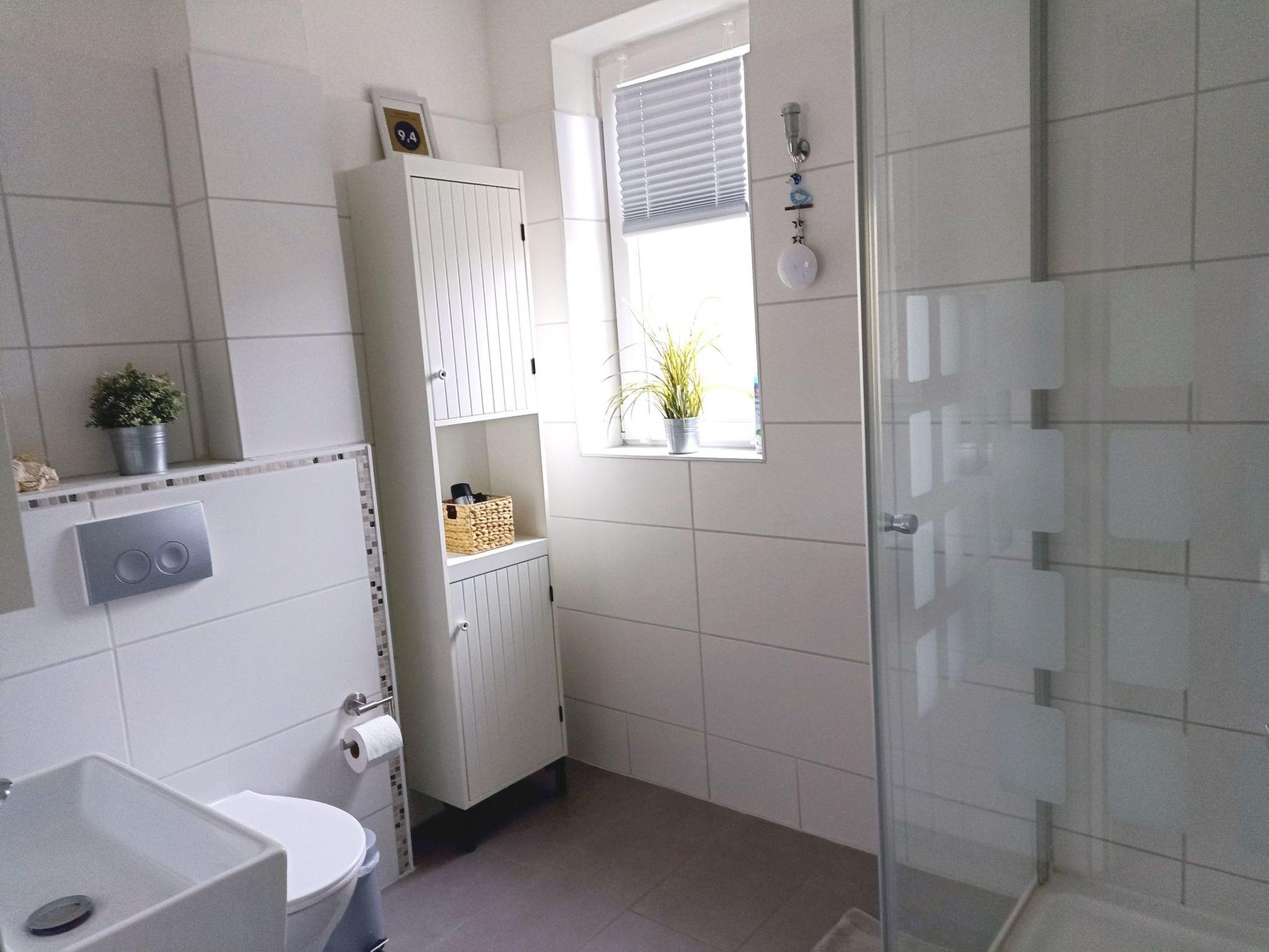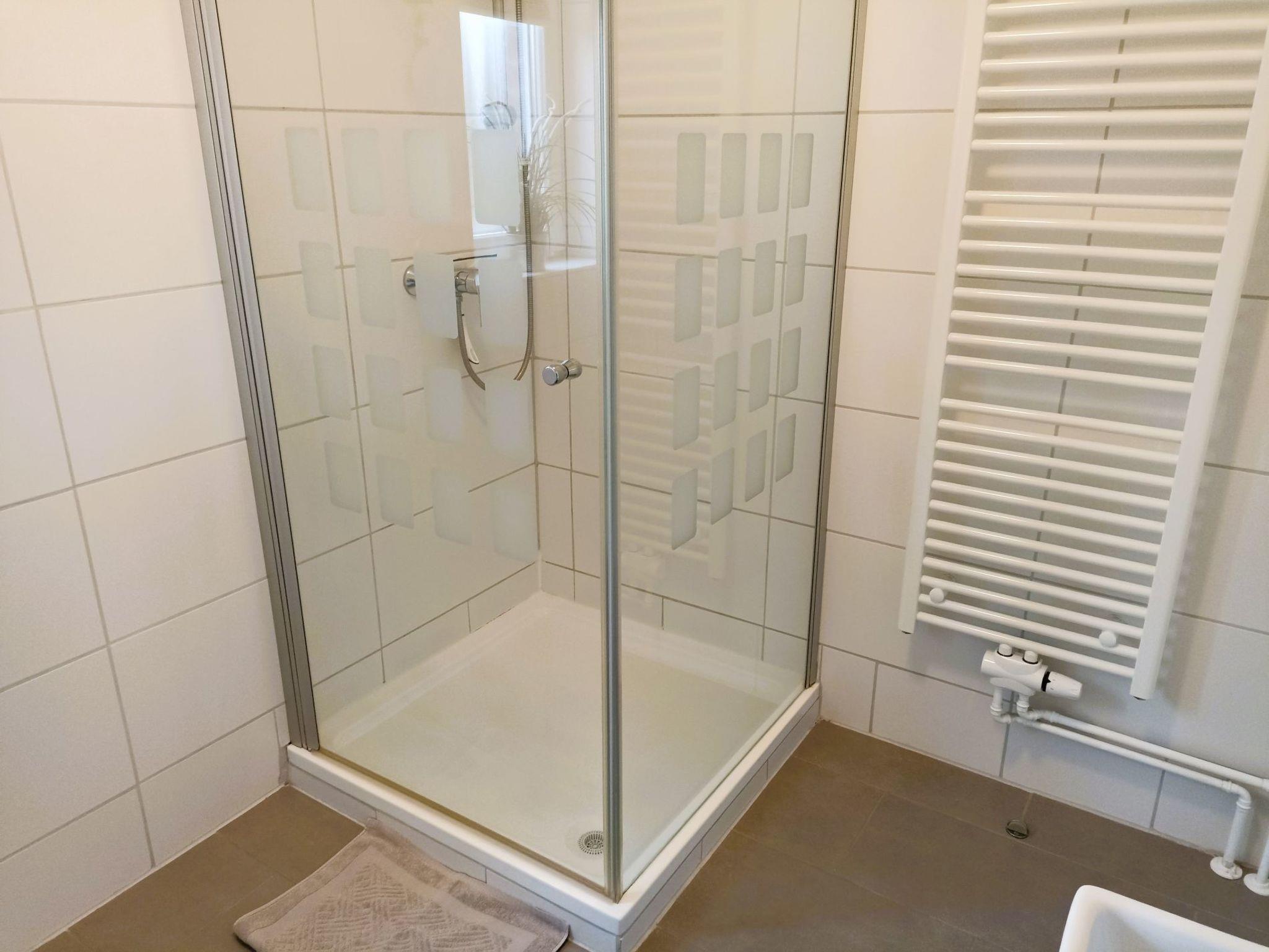 The master bedroom has a double bed (200 cm x 180 cm), and the second bedroom has two single beds (90 x 200 cm). A private bathroom with a shower and toilet is available. The holiday home is spread over 2 floors. There is also a guest toilet on the ground floor.