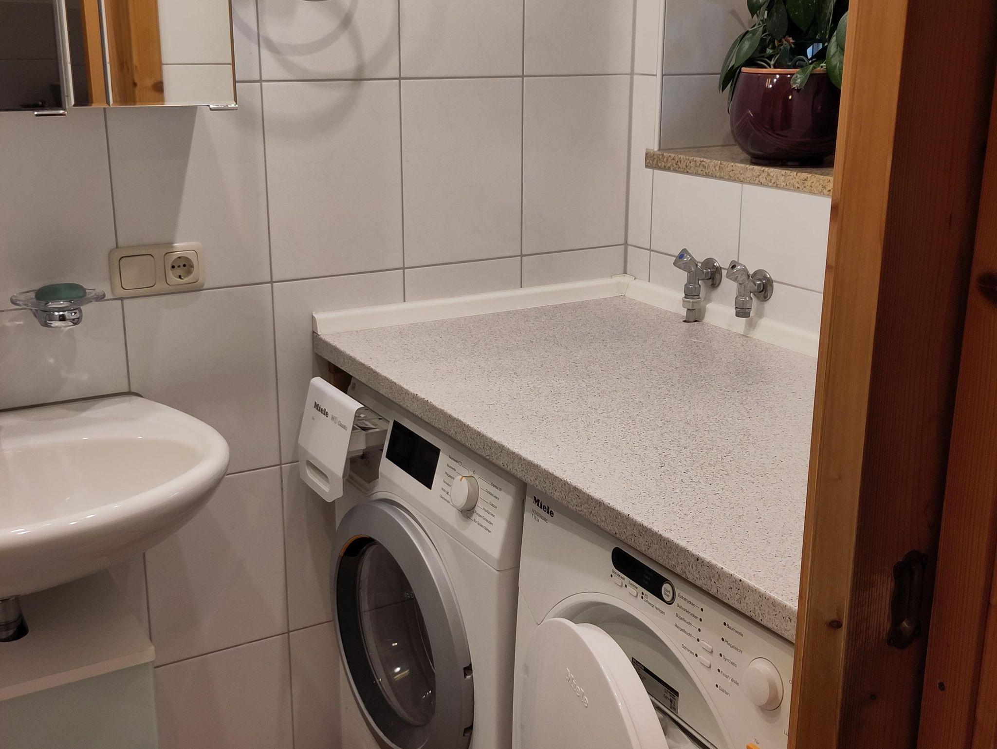 In der komfortablen 2 Zimmerwohnung im 1. Stock mit 50 qm, separatem Eingang und PKW Stellplatz bleibt kein Wunsch offen. Die Wohnung verfügt über einen großzügigen und hellen Schlaf-Wohnbereich, ein gemütliches Esszimmer mit Bergblick, eine großzügige und vollausgestattete Küche, ein helles funktionelles Bad mit Dusche, WC, Waschmaschine sowie Trockner und einem großen überdachten Balkon mit Tisch, Eckbank und Stuhl.