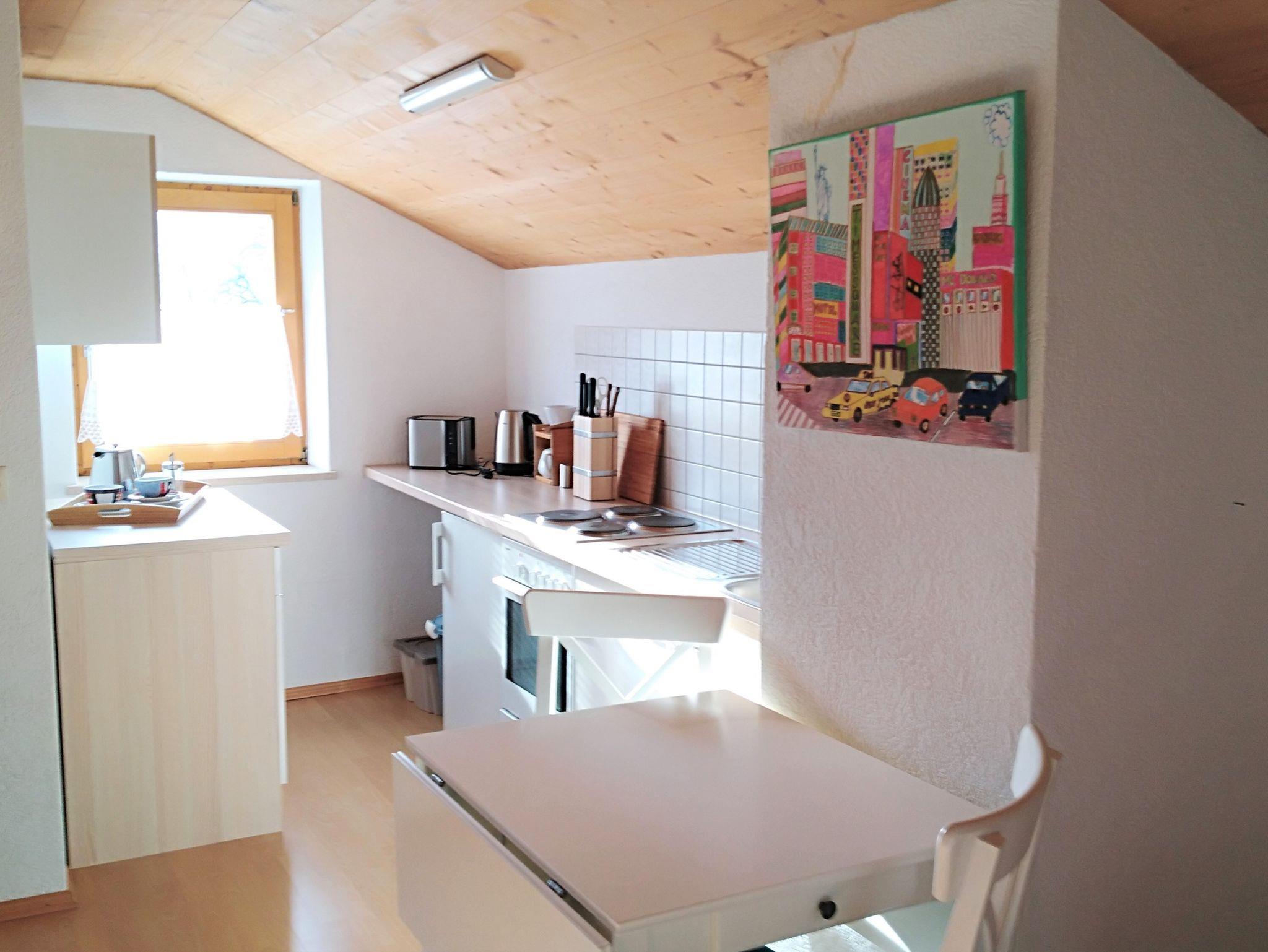 Unsere helle Ferienwohnung ist geeignet für maximal 3 Personen. Die Gäste dürfen gerne ihren Hund mitbringen. Sie hat einen kleinen Balkon nach Westen. Die Wohnung befindet sich in einem ruhig gelegenen 4- Familienhaus im Ortsteil Litzldorf mit guten Möglichkeiten zum Spazieren gehen und Bergwandern. In unmittelbarer Nähe befindet sich eine Bäckerei und ein traditionelles Gasthaus (ca. 3 min Fußweg). Ein Parkplatz für ein Auto ist vorhanden.