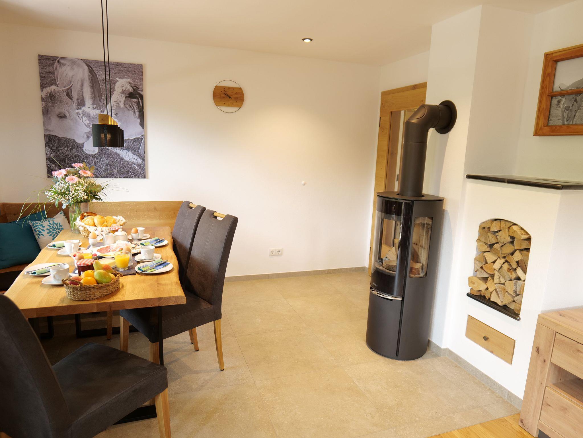 Personen. Zum längeren Verweilen lädt der gemütliche Wohn- und Essbereich ein. Für kältere Tage schafft der Holzofen ein angenehme Wärme und schafft ein sehr wohnliche Atomsphäre. Ein zentraler Punkt ist die vollausgestattete Küche mit Theke vor der Natursteinwand, zum gemeinsamen Kochen oder einer Auszeit mit einem Kaffee. In der neuen Wohnung wurde ein hoher Wert auf hochwertige und natürliche Materialien gelegt.