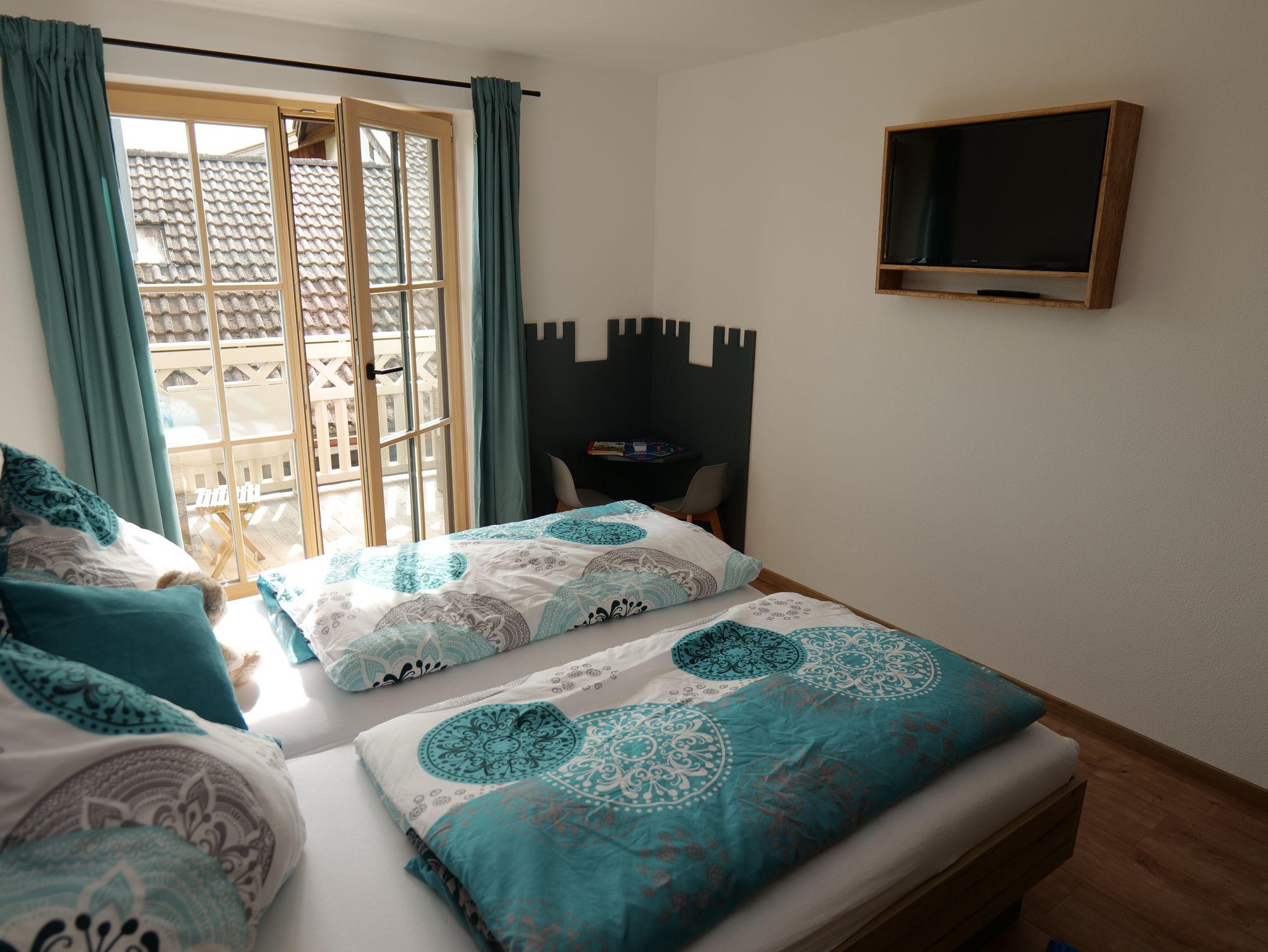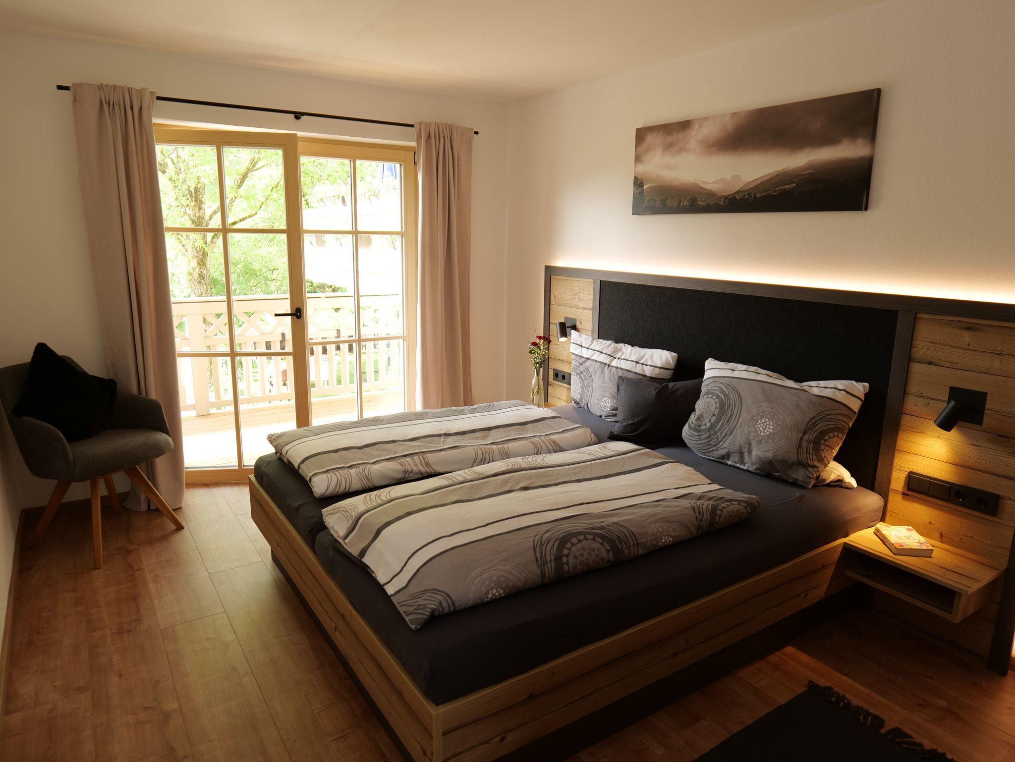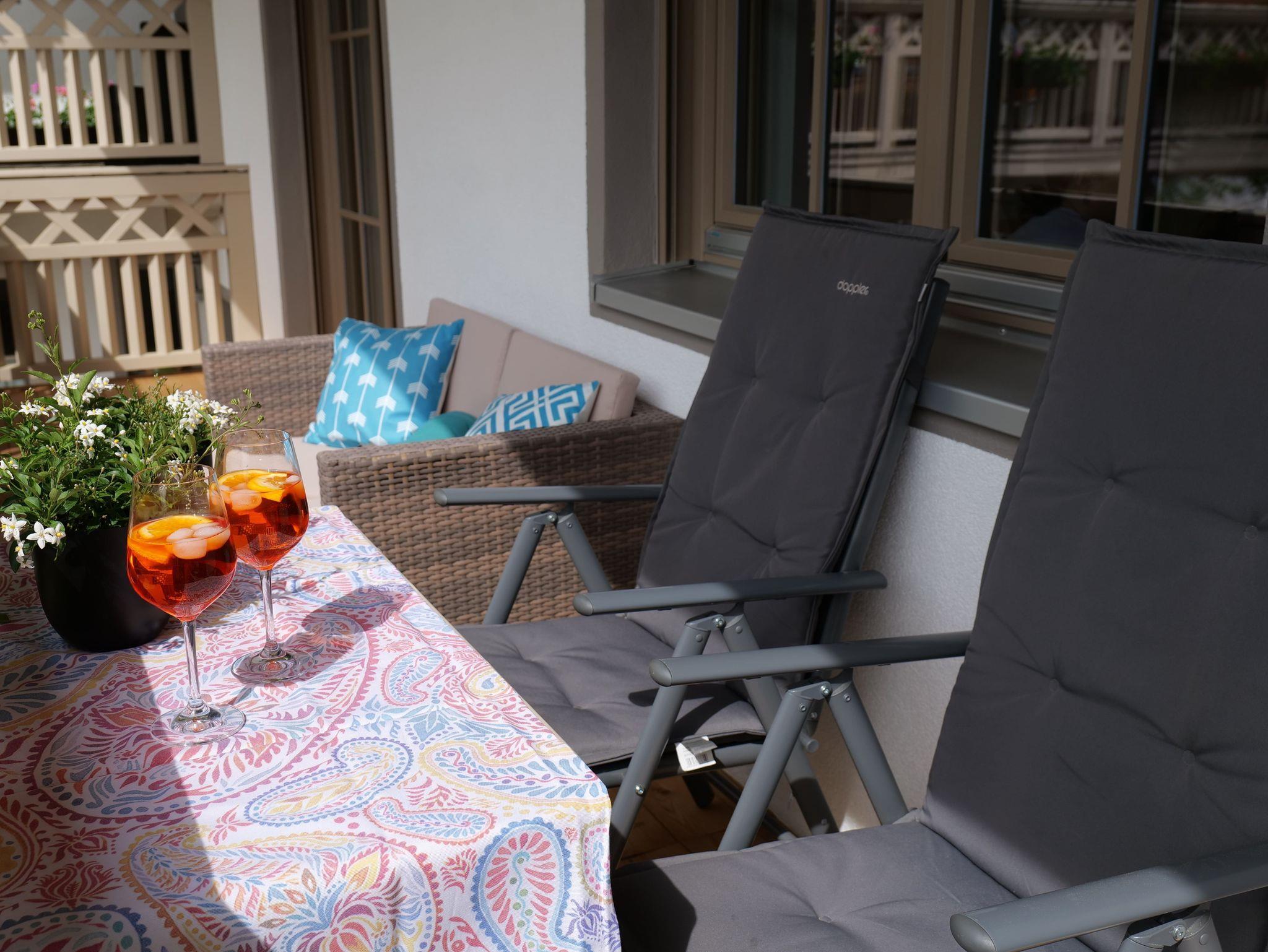Der Blick vom Südbalkon lädt ein, direkt in die umliegenden Berge einzutauchen. Die Nichtraucher Ferienwohnung ist mit einer