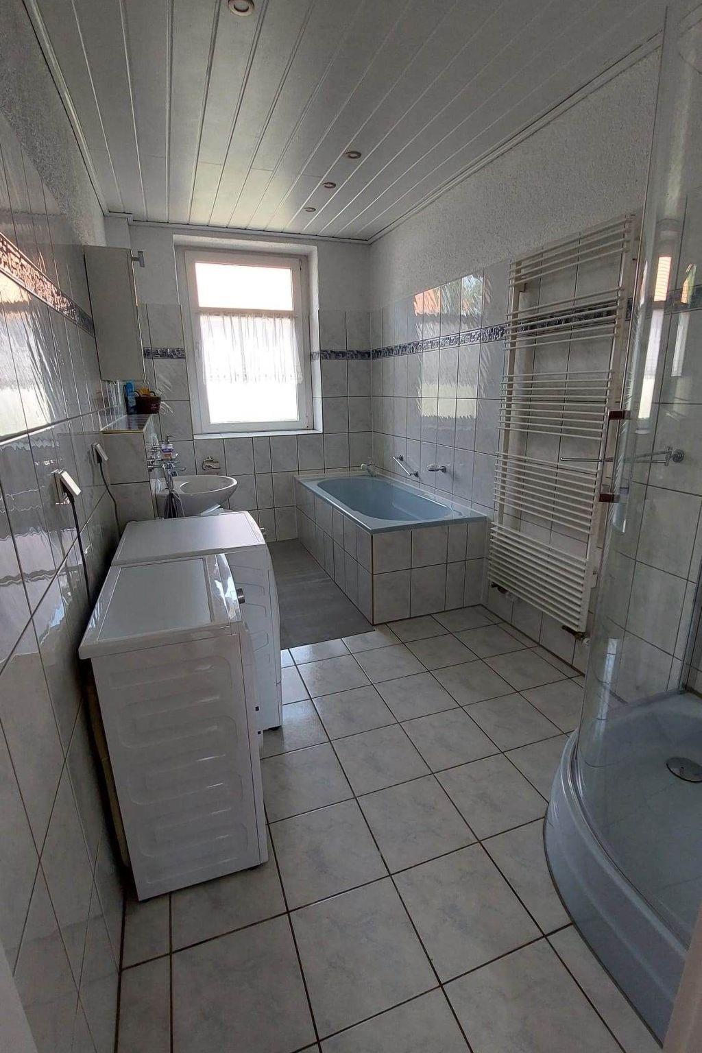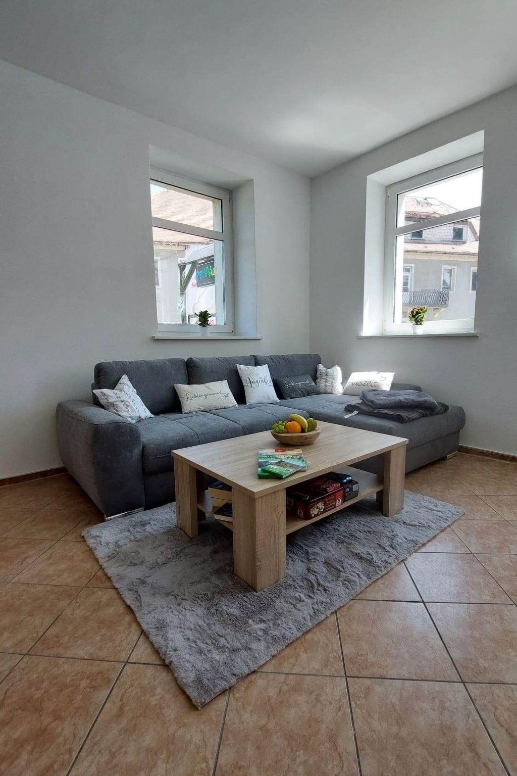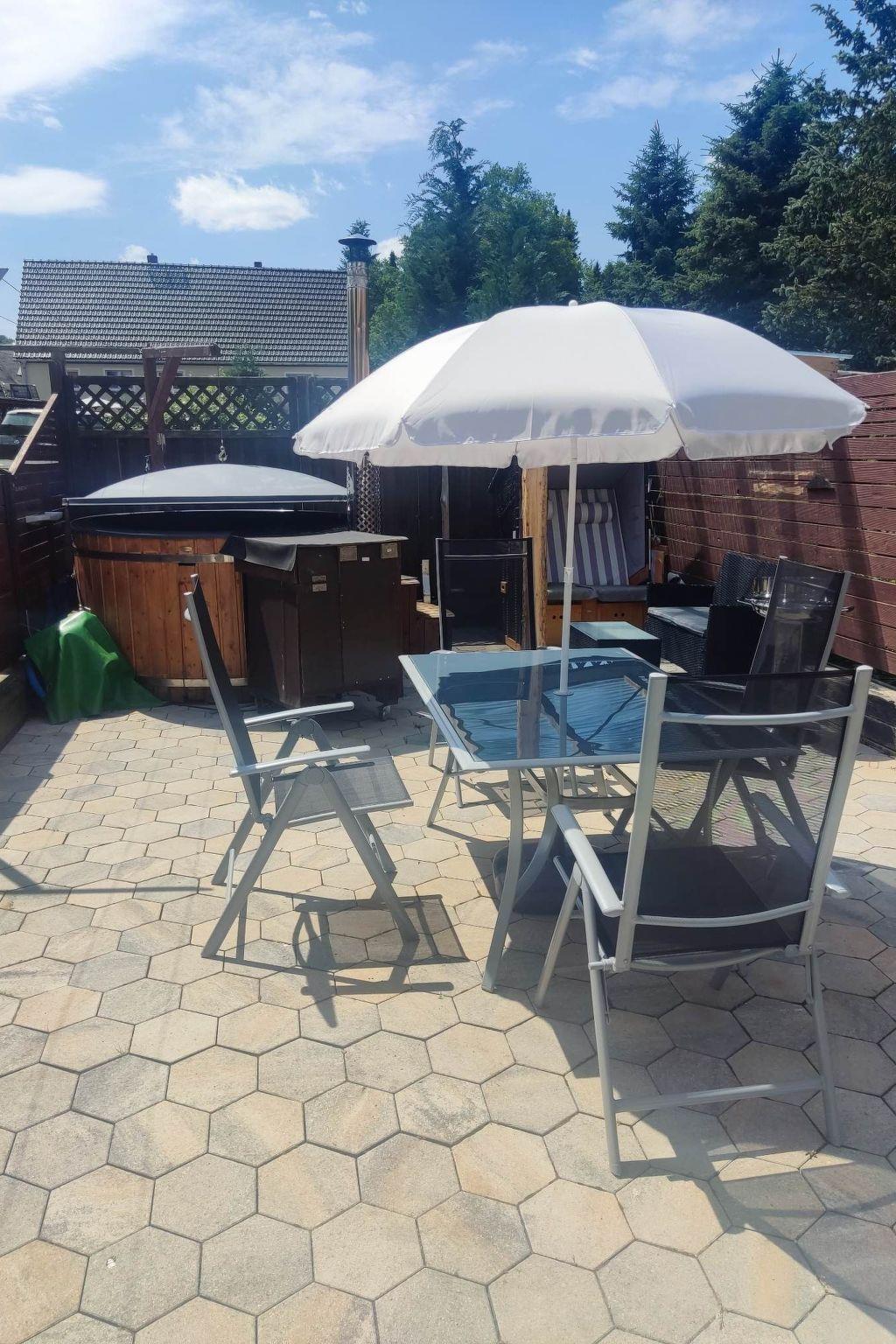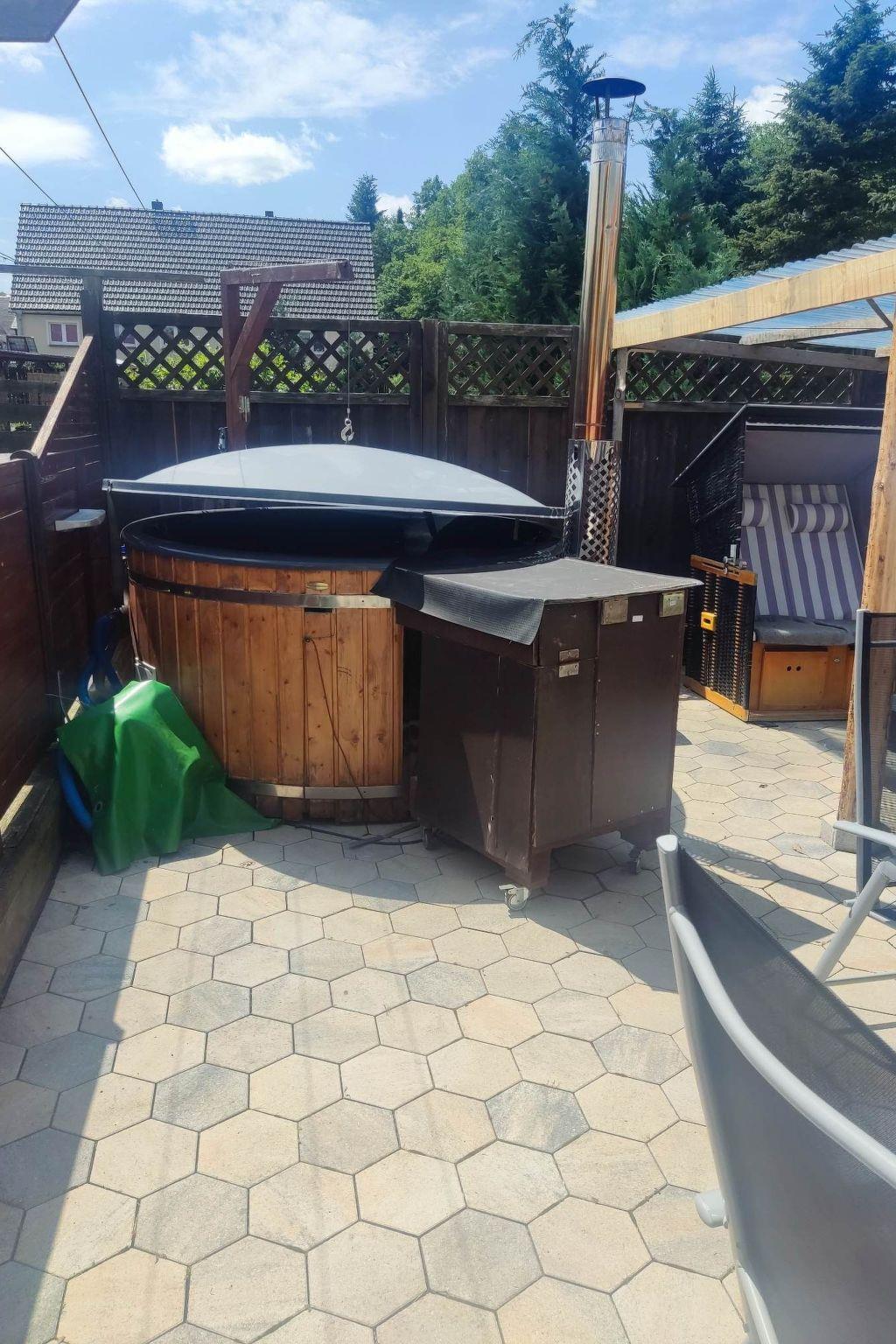 Holiday flat in the countryside with jacuzzi and whirlpool function. The comfortably furnished holiday flat is located on the ground floor, surrounded by a beautiful garden, terrace with sun loungers, barbecue facilities, car parking space and play facilities for children. The fully equipped flat has 1-2 bedrooms with underfloor heating, kitchen, living room and a bathroom with bathtub, shower, WC, hairdryer, tumble dryer and washing machine. There is also sufficient storage space for towels. Towels, bath towels and bed linen are provided. If you need a change of towels during your stay, just let us know. Furthermore, we can equip the flat with a chair for small children, baby, toddler bed, fall-out protection, changing mat and a potty. In the hallway there is a cloakroom with shoe rack, shoehorn and umbrella. The kitchen is equipped with a cooker, ceramic hob, oven, kettle, fridge, microwave, coffee machine and toaster, pots, pans, blender, crockery and glasses of all kinds. You will also find coffee, tea and accessories for your first cup of coffee or tea after a strenuous journey. In the bedroom you will find a box-spring bed (180 x 200 cm), a spacious wardrobe with a large chest of drawers and another TV. Up to four people can enjoy a relaxing holiday in the holiday flat. It is approx. 55 square metres in size and includes a living room and bedroom with a couch and sofa bed. The living room with sofa and TV with streaming services (e.g. Netflix, Disney+) invites you to linger or for cosy game evenings. Board games are available for communal use. You can enjoy romantic evenings in front of the fireplace.