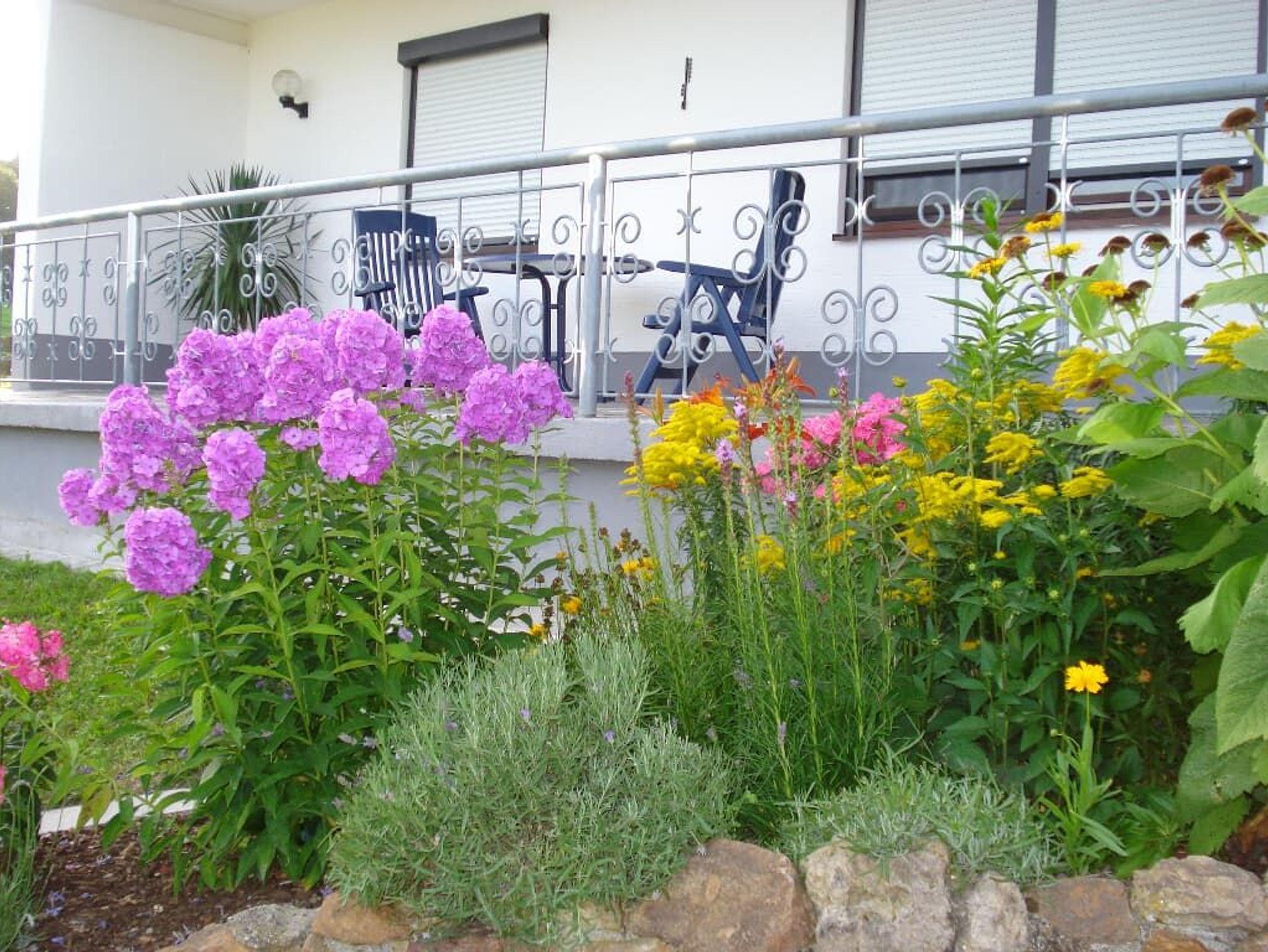 In unserem nahe am Waldrand gelegenen Wohnhaus stehen Ihnen zwei gemütlich eingerichtete FeWos (2 - 4 Betten) mit separatem Eingang zur Verfügung. Entspannen Sie sich auf unserer großen Terrasse mit herrlichem Blick auf die freie Natur.