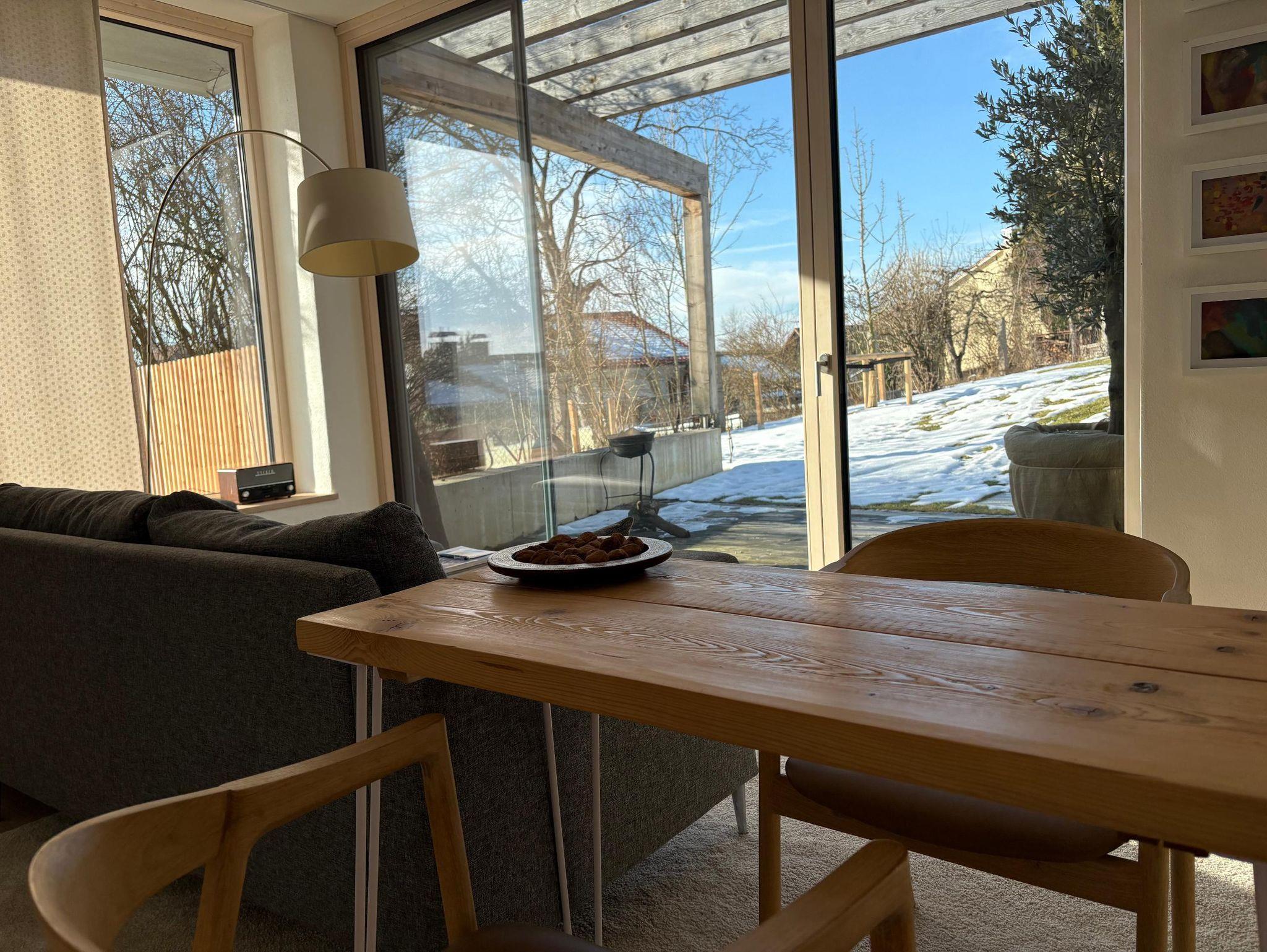 Wir haben beim Bau des Gästehauses auf eine ökologische, nachhaltige und gesunde Bauweise geachtet: Die Wände wurden mit Lehm verputzt, auf klassischen Trockenbau wurde gänzlich verzichtet und ausschließlich Massivholz verbaut.