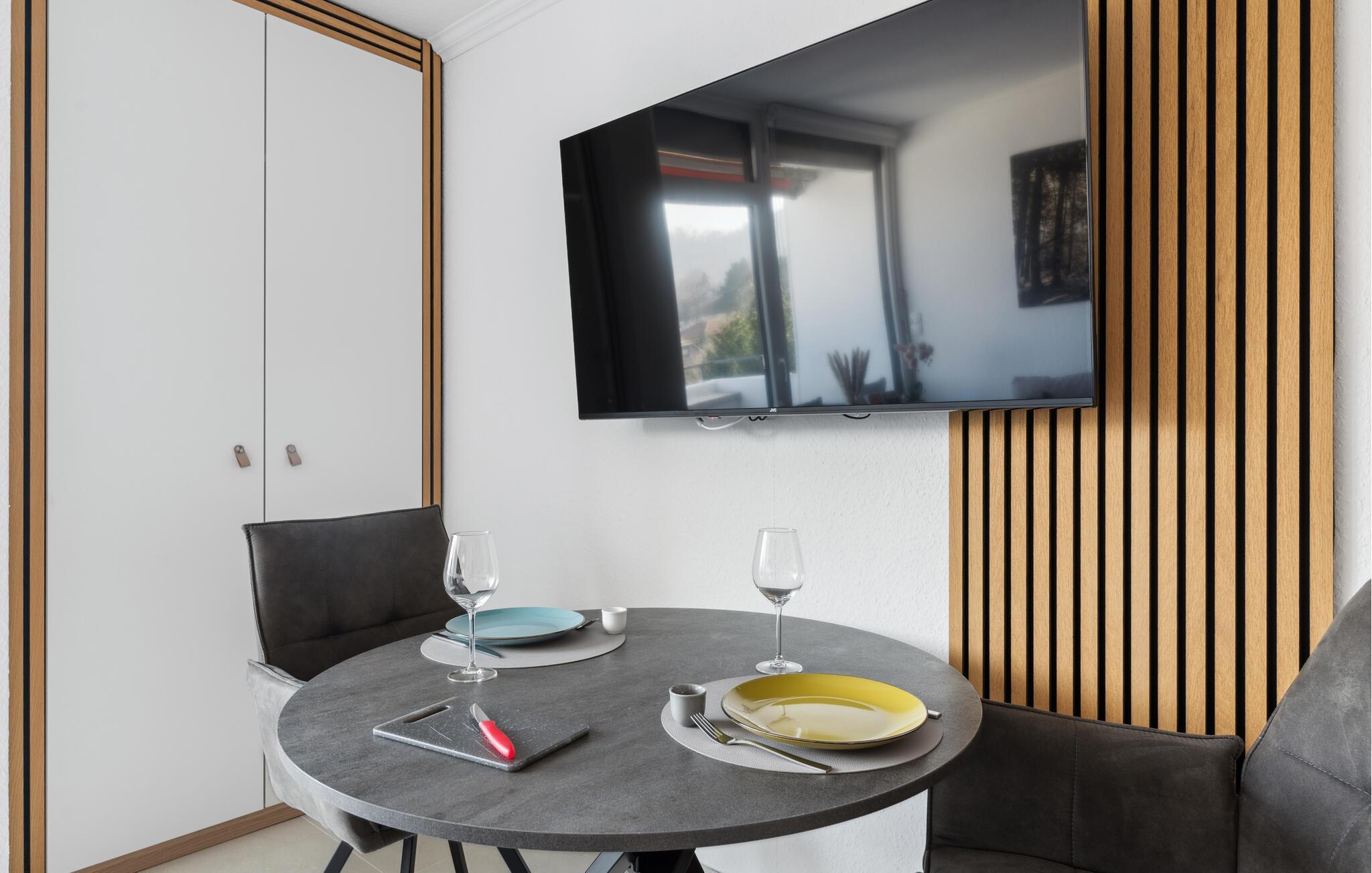 På balkongen kan du nyte den friske luften og utsikten over de skogkledde åsene. Len deg tilbake og slapp av, og avslutt dagen med et glass vin.