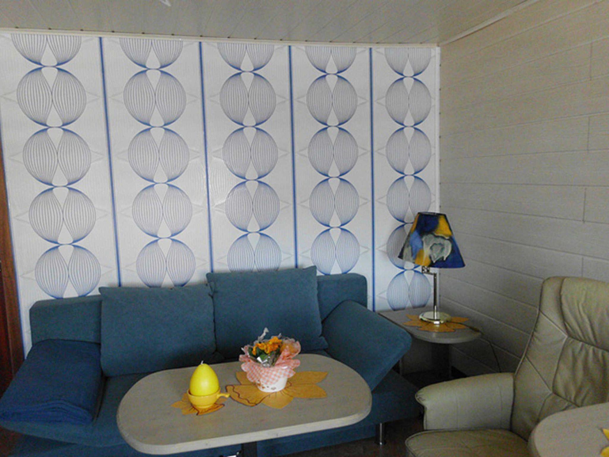 • Wohnzimmer mit offener Küche und kleinen Essbereich