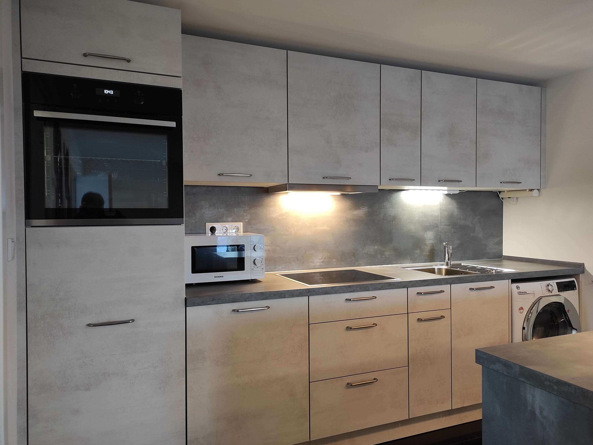 Die offene, bestens ausgestattete Küche erreichen Sie über 2 Treppenstufen. Zur hochwertigen Aussstattung gehören u. a. eine Kaffeemaschine, eine Tschibo Caffissimo, eine Mikrowelle, ein Induktionskochfeld, ein Ofen, eine Waschmaschine, ein Wasserkocher, ein Toaster etc...