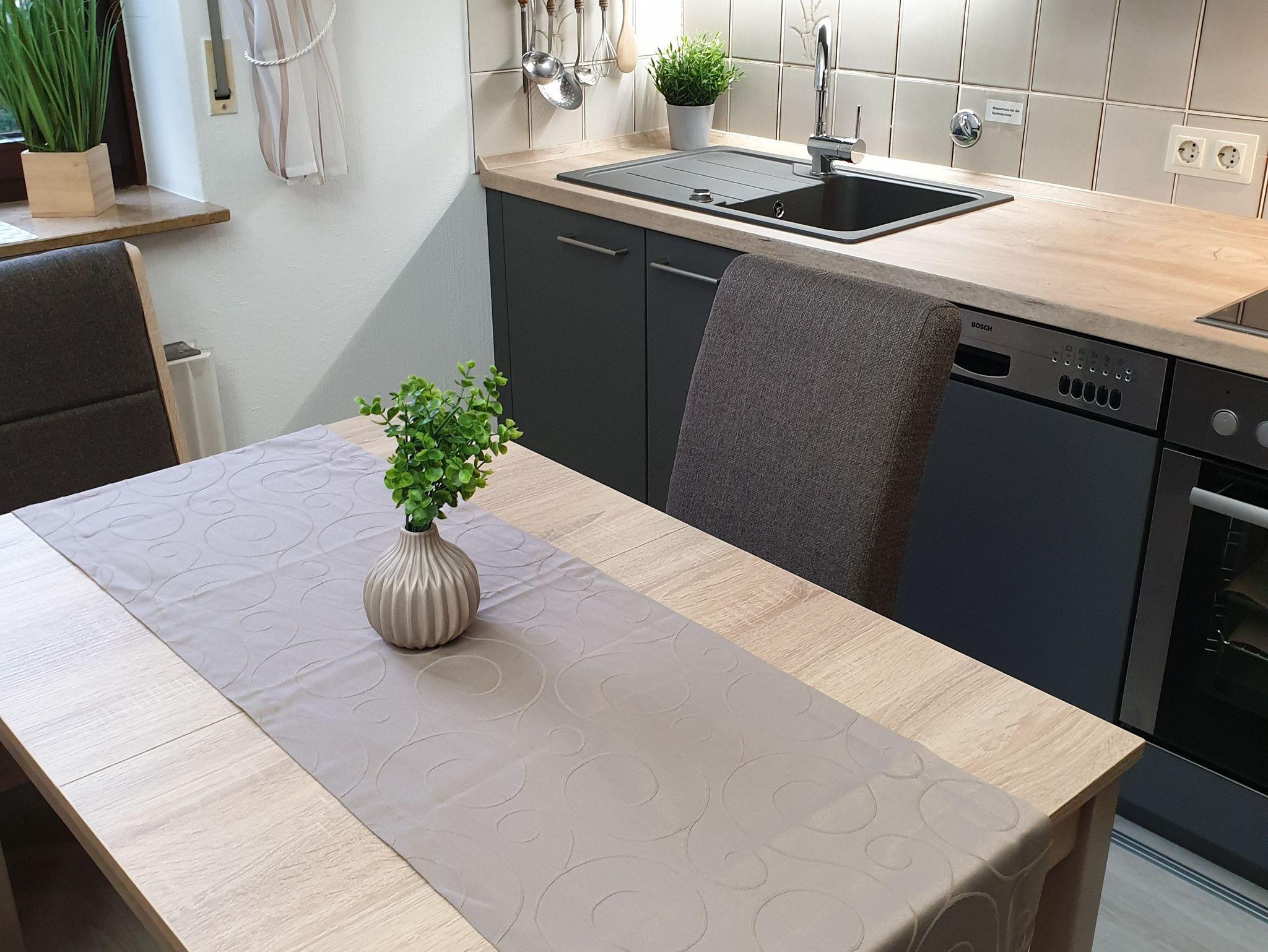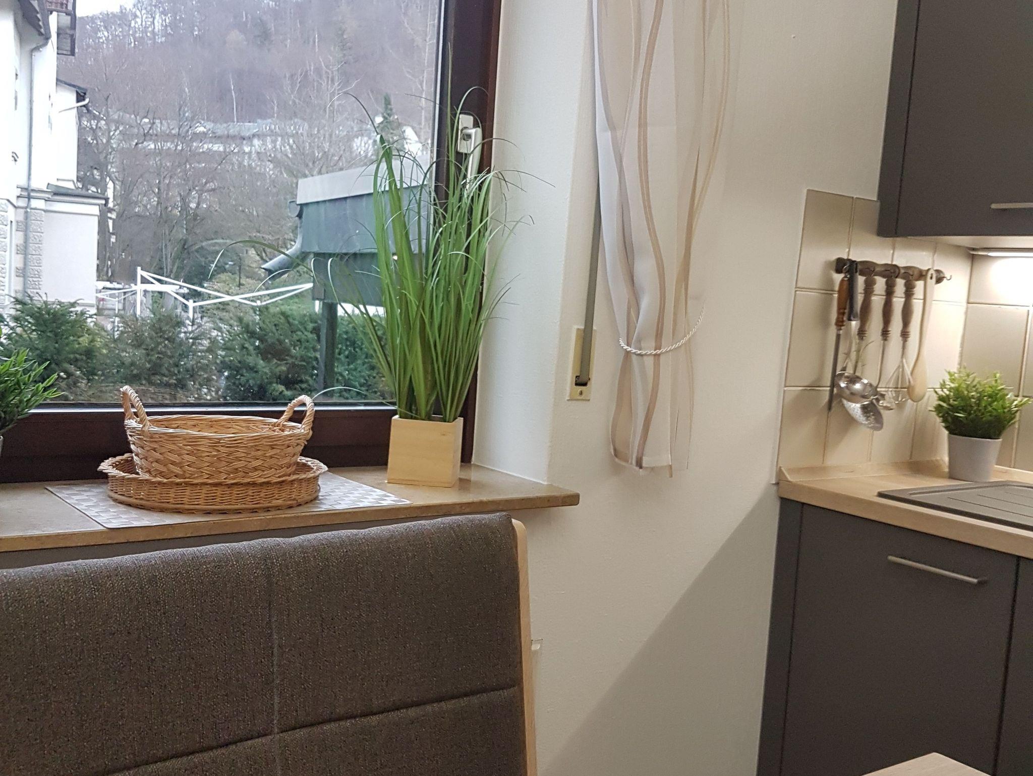 Erdgeschoss-Ferienwohnung mit großer Terrasse. Ruhige Lage am Stadtpark, nur wenige Gehminuten bis zur Innenstadt, zum Kurpark, zur Sole-Therme, der Burgberg-Seilbahn und zum Baumwipfelpfad.
