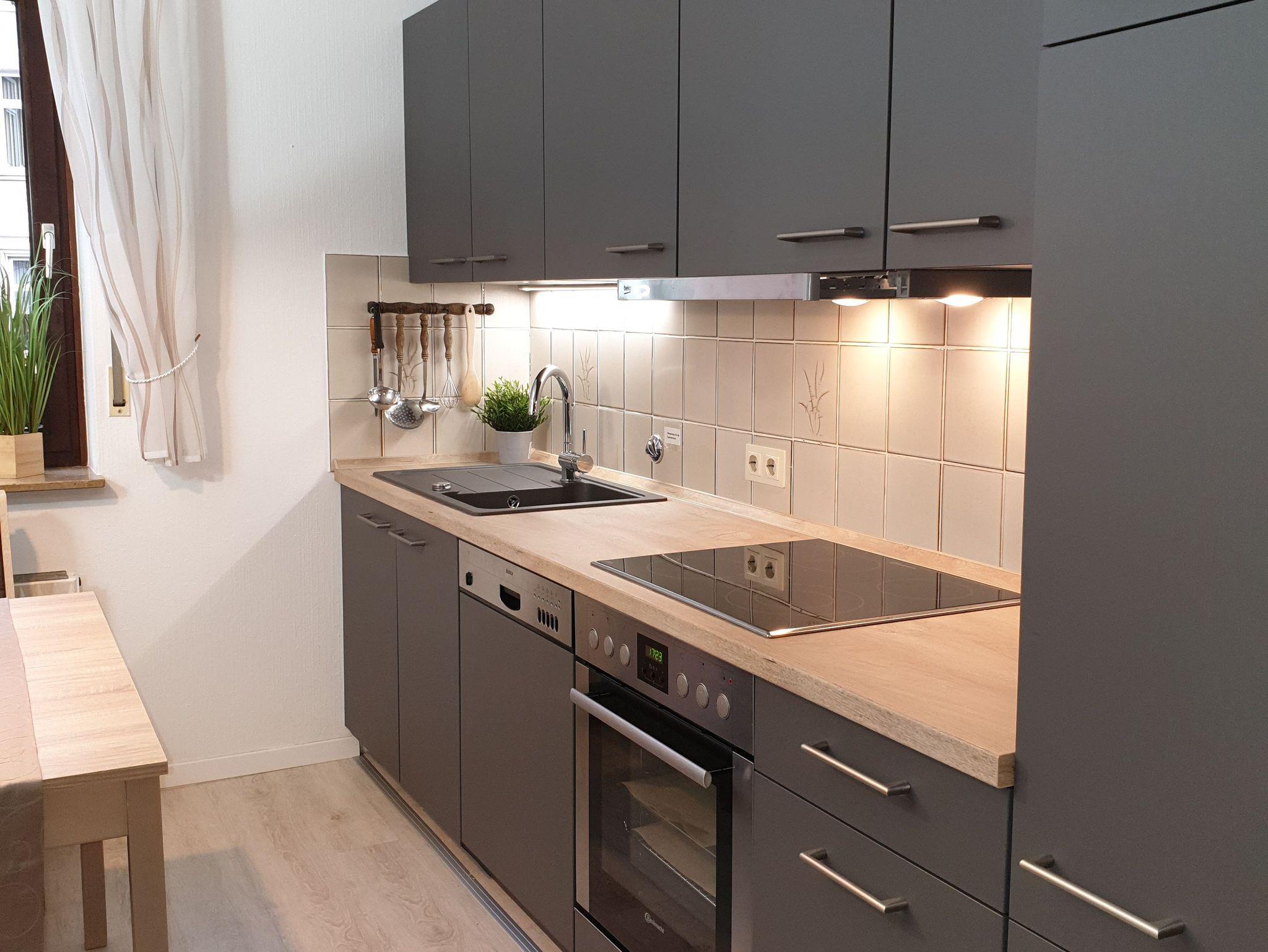 Die 2-Zimmer-Wohnung von 56 m² verfügt über ein neu renoviertes Schlafzimmer mit Doppelbett, einer neuen, komplett eingerichteten Küche mit Essecke inkl. Geschirrspüler und einem Bad mit Dusche. Das Wohnzimmer ist mit einem Schrankbett für Aufbettung ausgestattet. Kostenloses WLAN.