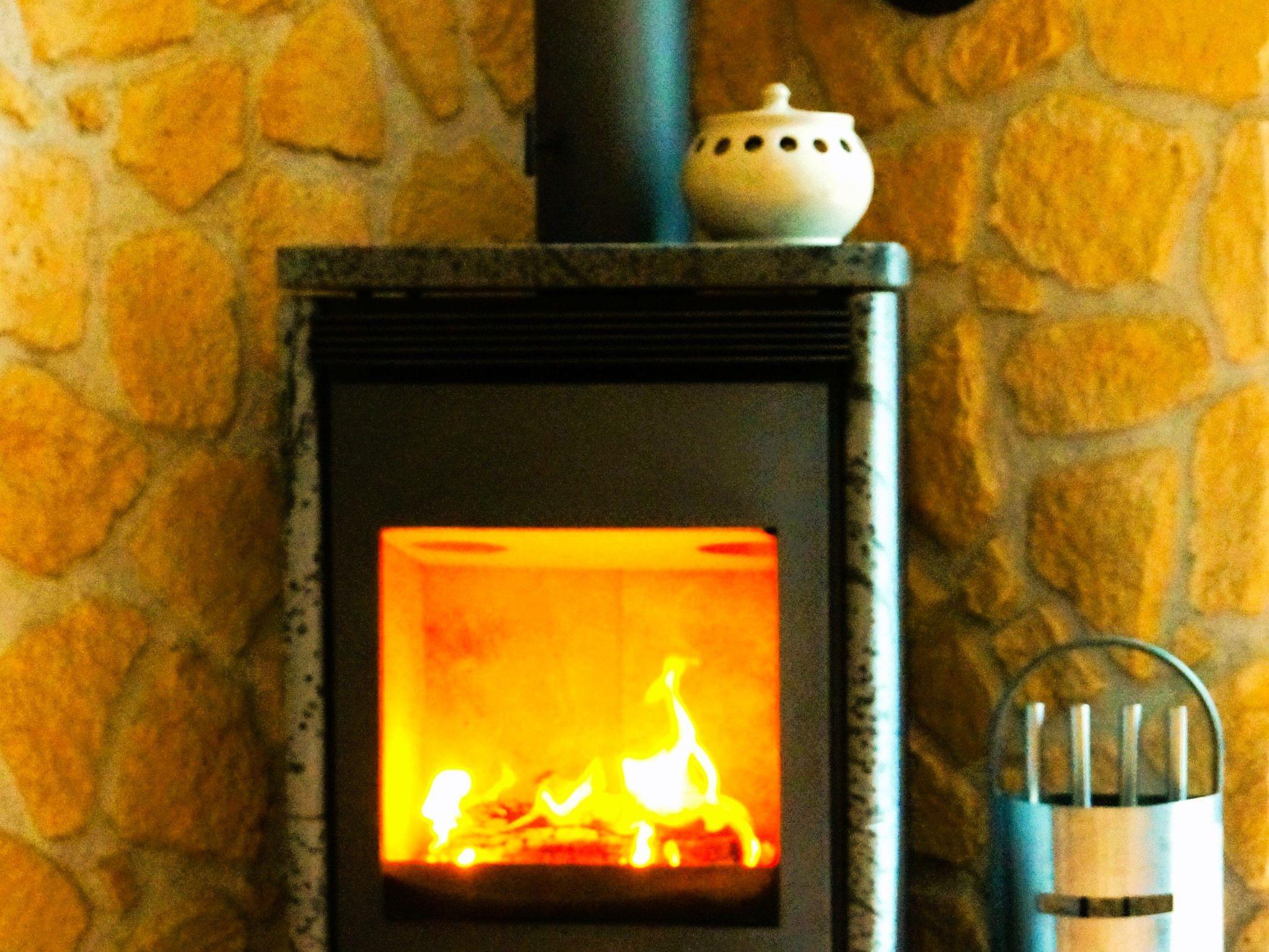 Das Wohnzimmer ist mit einem Kamin ausgestattet.