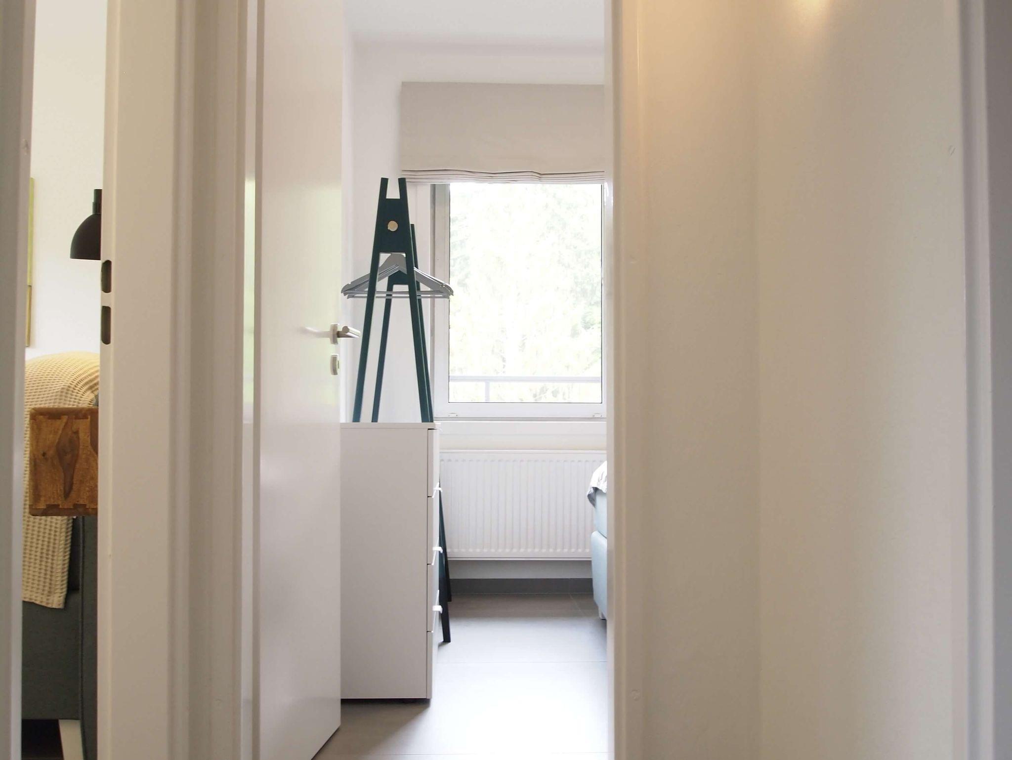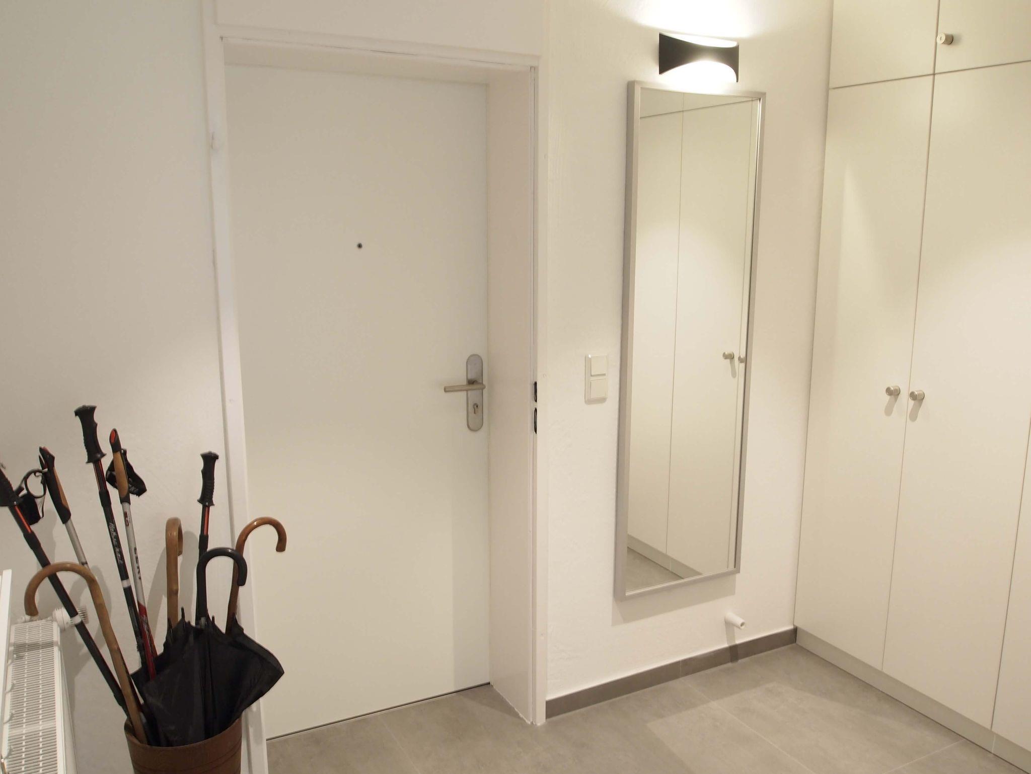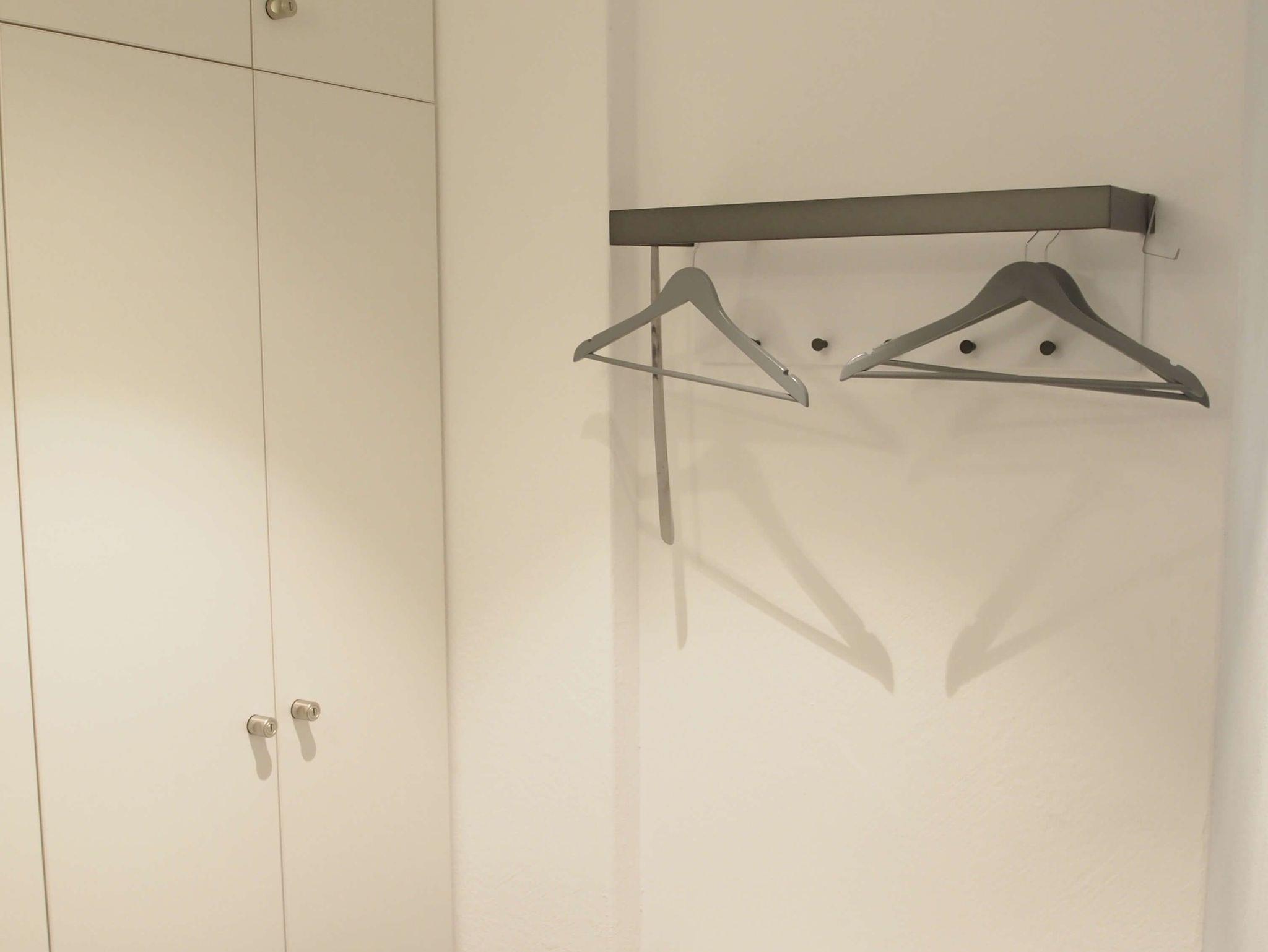 Beim Betreten der Fewo finden Sie die Garderobe und einen Einbauschrank, der viel Raum zum Verstauen bietet.