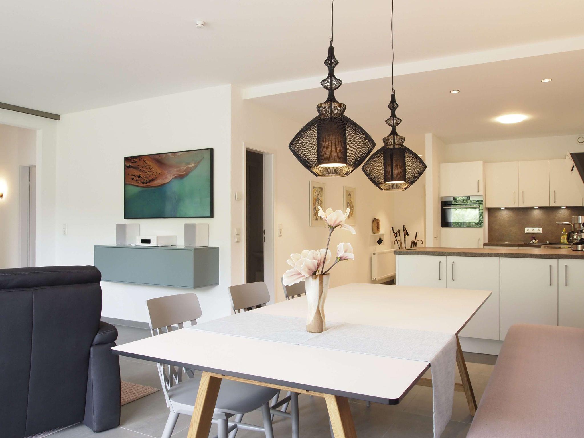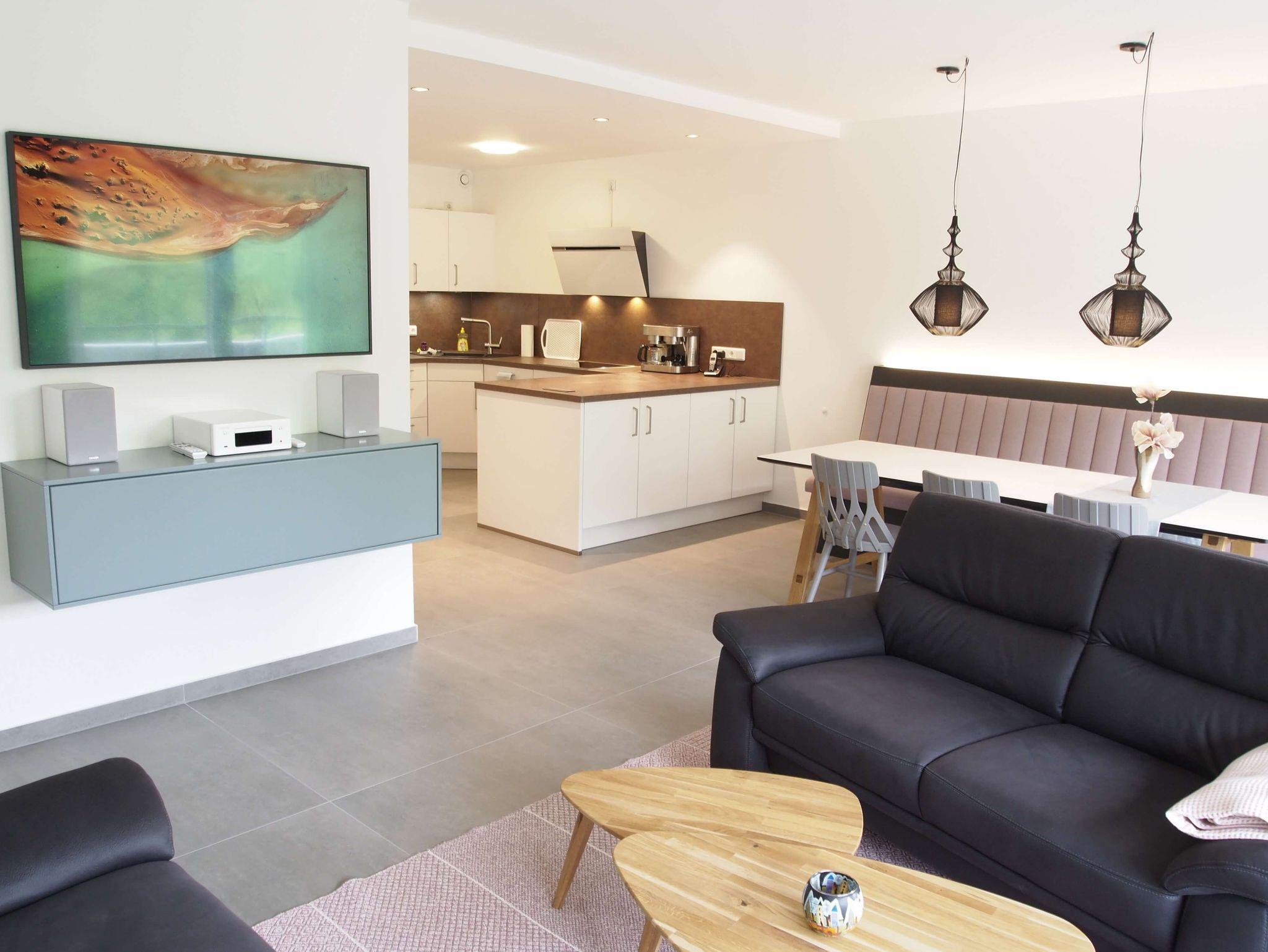 An dem großen Esstisch haben Sie mit bis zu 6 Personen reichlich Platz zum Essen oder spielen. Die gemütlichen Sofas laden Sie zu einem schönen Fernsehabend vor dem großen Smart-TV oder einem Spielabend mit der Nintendo Switch ein. Vielleicht möchten Sie aber einfach nur gute Musik aus der Stereoanlage hören und abschalten.