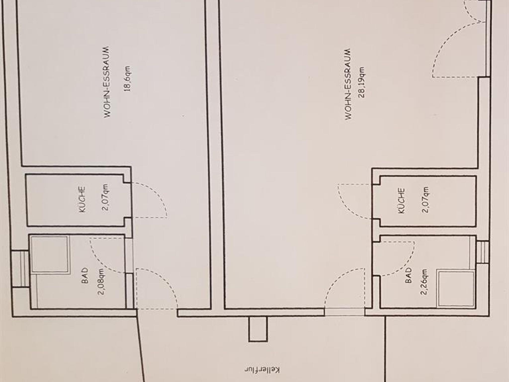 FeWO 55 m². Die beiden Schlaf/Wohnräume sind über einen Flur verbunden. Die Wohnung hat einen 2 Wohn-Schlafräume mit Doppelbett, Couch, TV, sowie je ein eigenes Badezimmer mit Dusche/WC. 1 Küchenzeile.