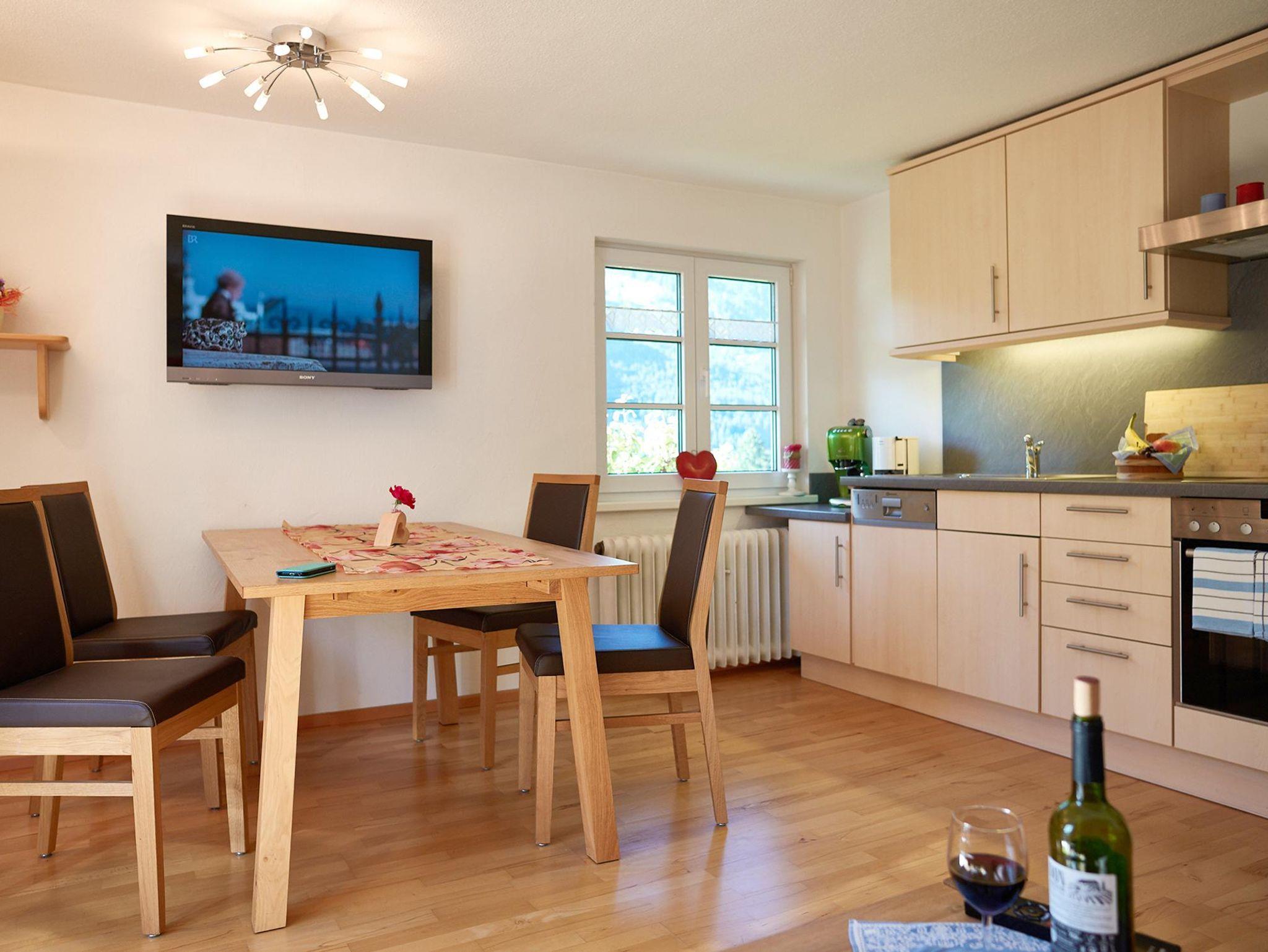 Wohnen mit Sofa, Essecke und großem Flachbildfernseher mit SAT TV,