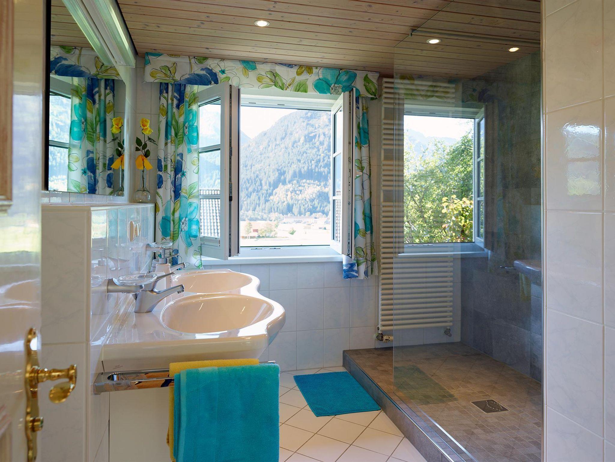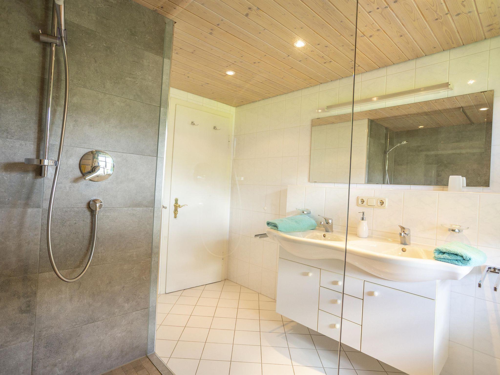 Riesendusche und Doppelwaschbecken, WC getrennt
