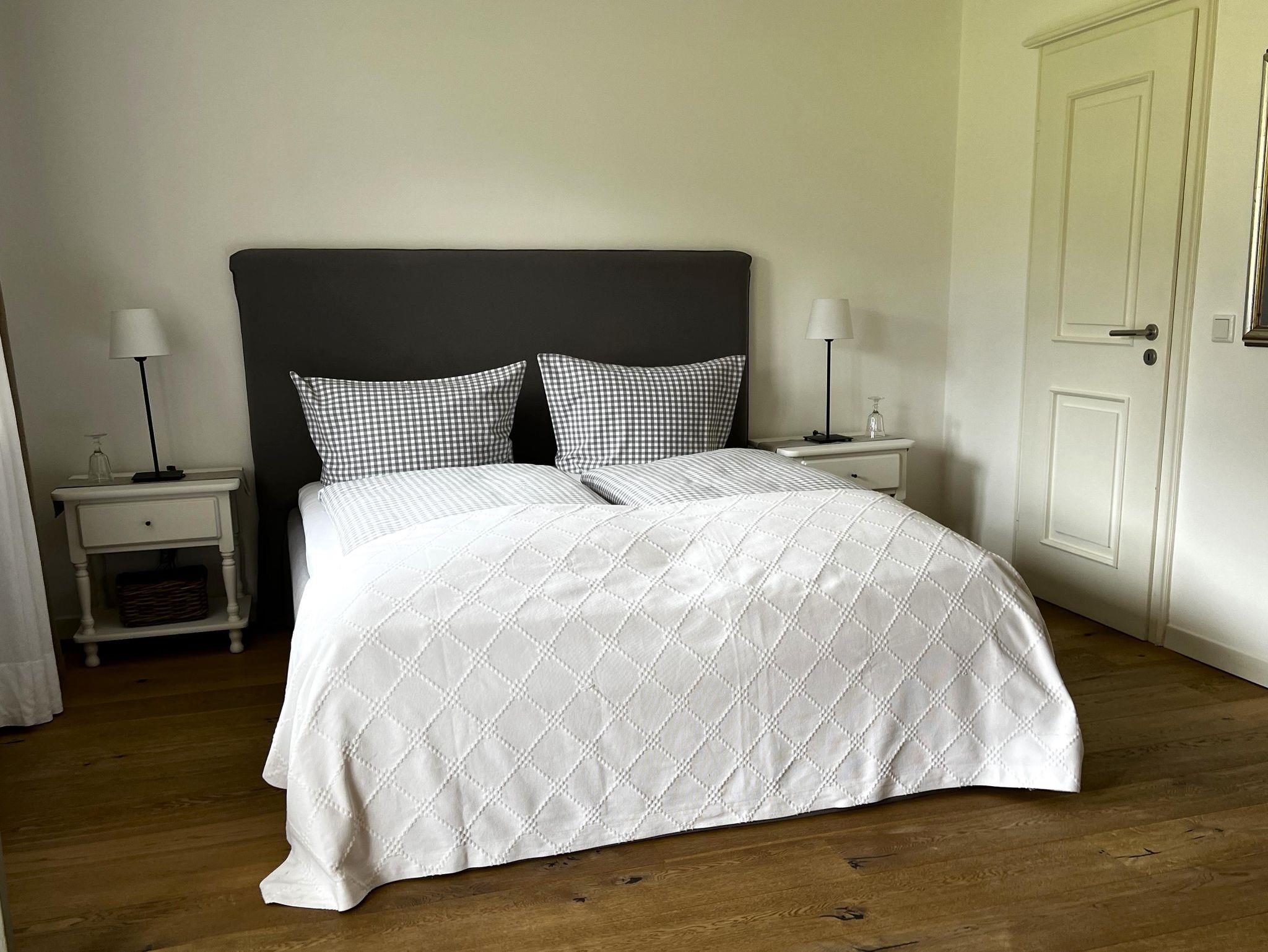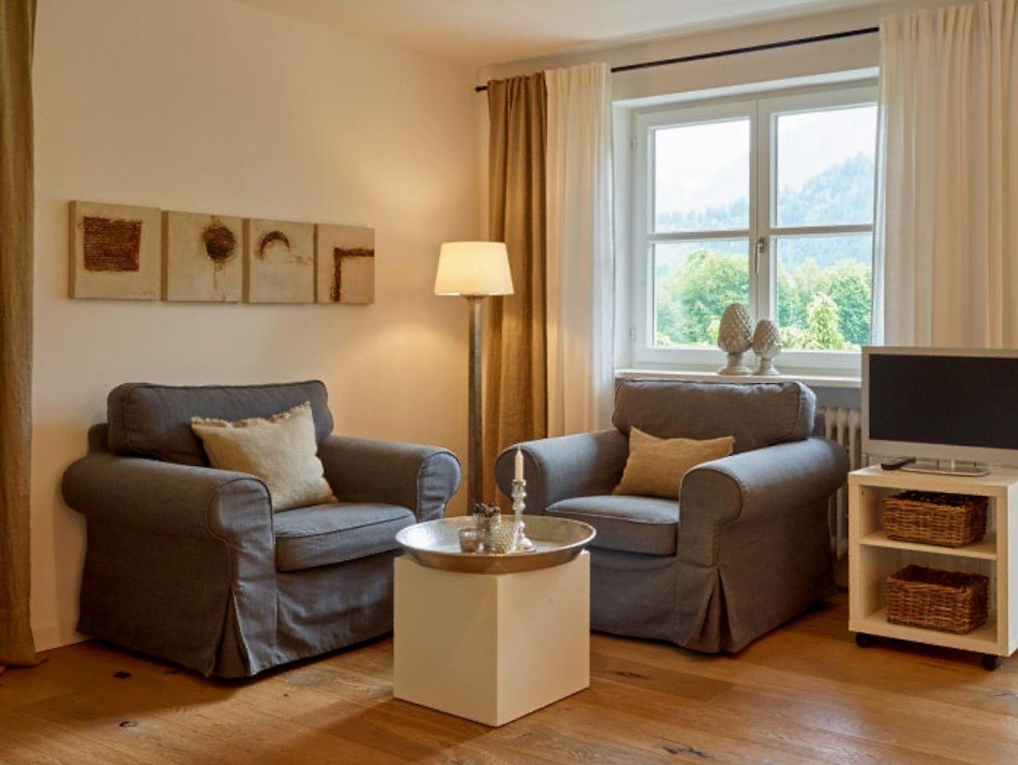 Moderne 2-Zimmer-Wohnung ( 41qm + 10 qm Balkon ) für 1 - 2 Personen mit hochwertiger Ausstattung: sep. Schlafzimmer (1,6x2m Bett), kleines modernes Bad, gemütliches Wohn- / Esszimmer mit Küche, TV und WLAN. Balkon mit freiem Blick auf Wiesen und Berge. Gerne können Begleitpersonen ein Gästezimmer dazubuchen.
