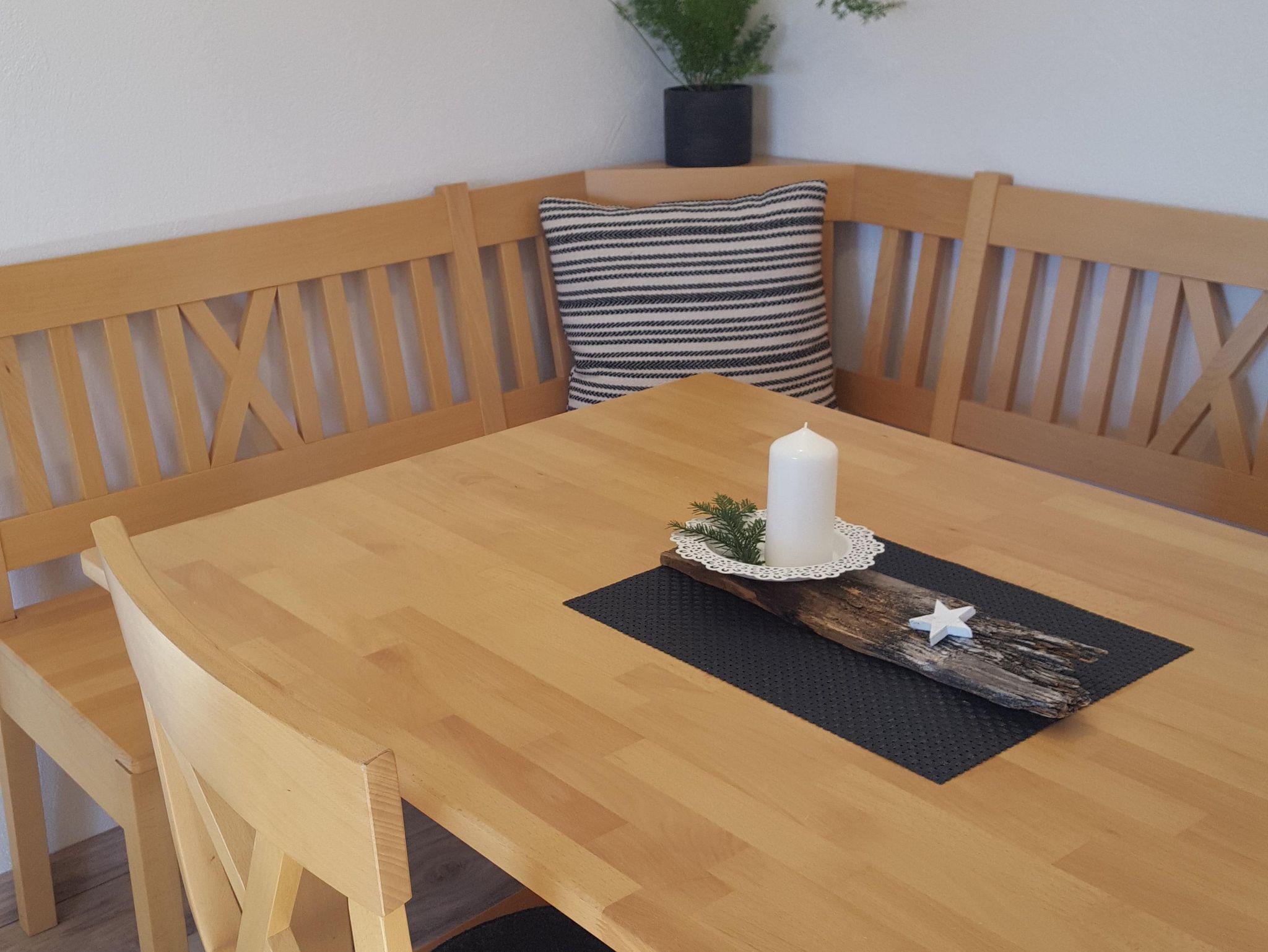 * voll ausgestattete Wohnküche (Spülmaschine, Kühl-Gefrierkombi, Toaster usw.) mit angrenzendem Esszimmer
