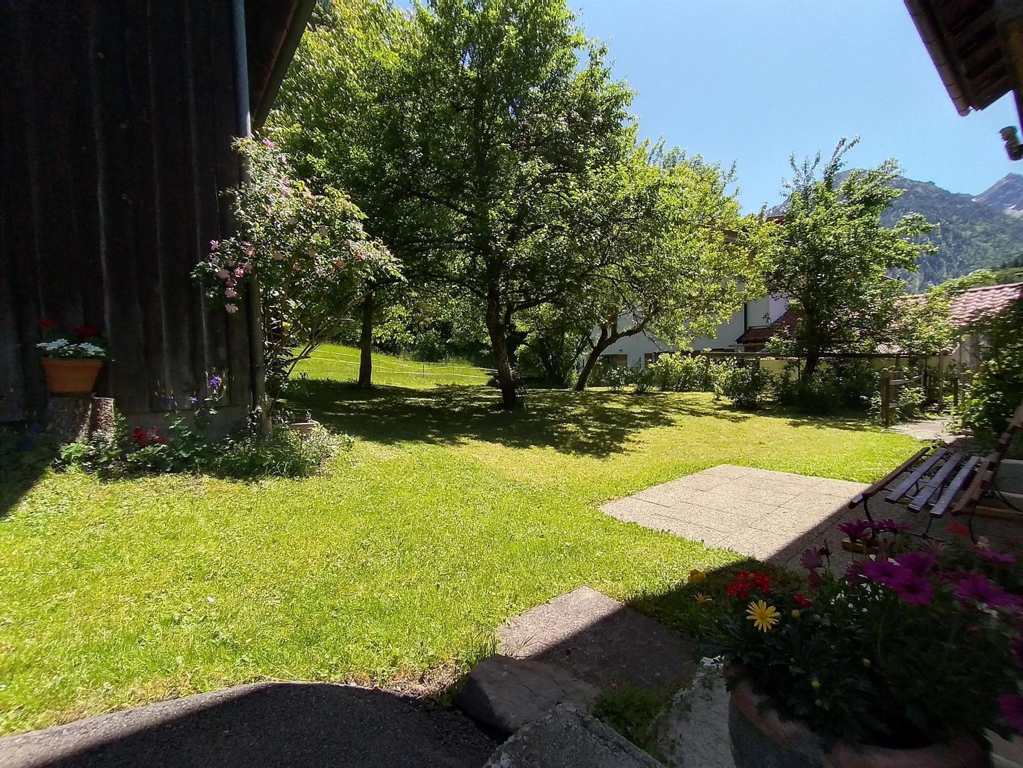 Südbalkon mit Bergblick, LCD-Kabel-TV, schnelles W-Lan, große Liegewiese und Sitzgelegenheiten am Haus.