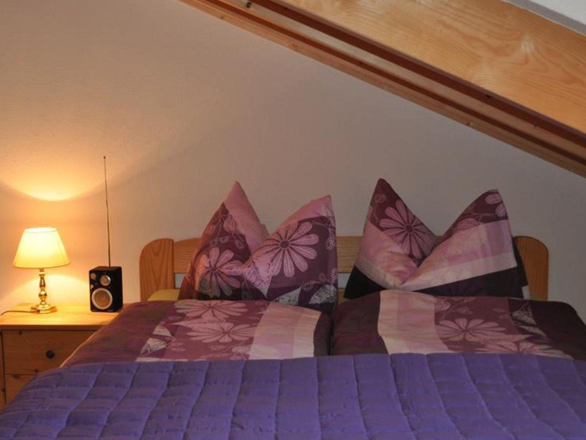 Dieses Doppelzimmer befindet sich auf der Westseite im Obergeschoss und hat ein eigenes Badezimmer mit Dusche und WC. Außerdem befindet sich eine kleine Miniküche mit Kühlschrank, 2-Platten-Herd, Spüle , Kaffeemaschine,Toaster,Wasserkocher, etc. darin. Die Größe des Schlafzimmers ist ca. 15 m².
