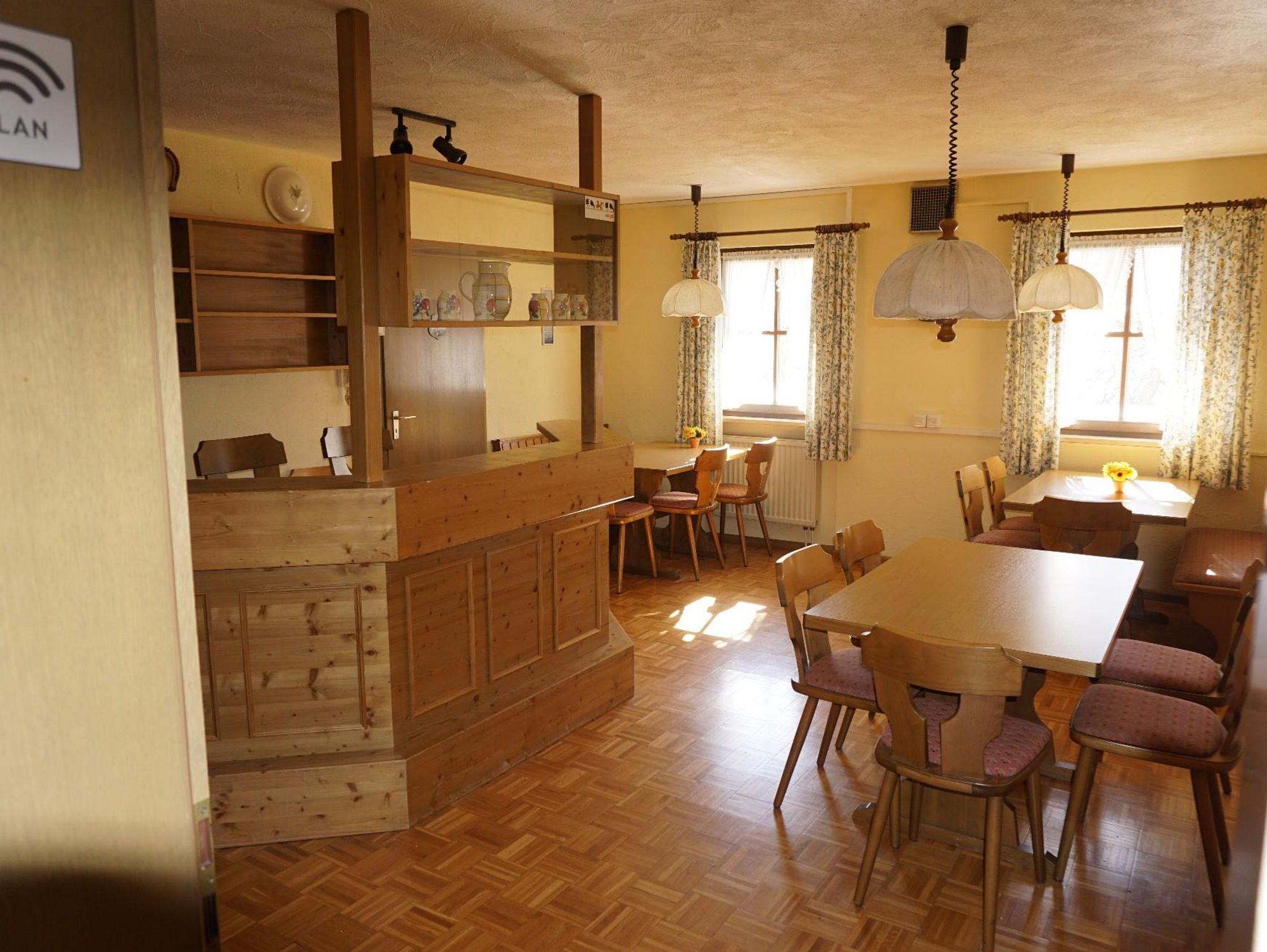 Gemütliches, im Landhausstil eingerichtetes Wohn-, Esszimmer mit Esstisch für 4 Pers. und Vogelauer Kredenz mit guter Geschirrausstattung und vielen Schubladen, Bettcouch (2 einzeln ausziehbare Betten) bieten guten Wohnkomfort. Vom Wohn- und separaten Schlafzimmer Zugang zum überdachten und möblierten Südbalkon.
