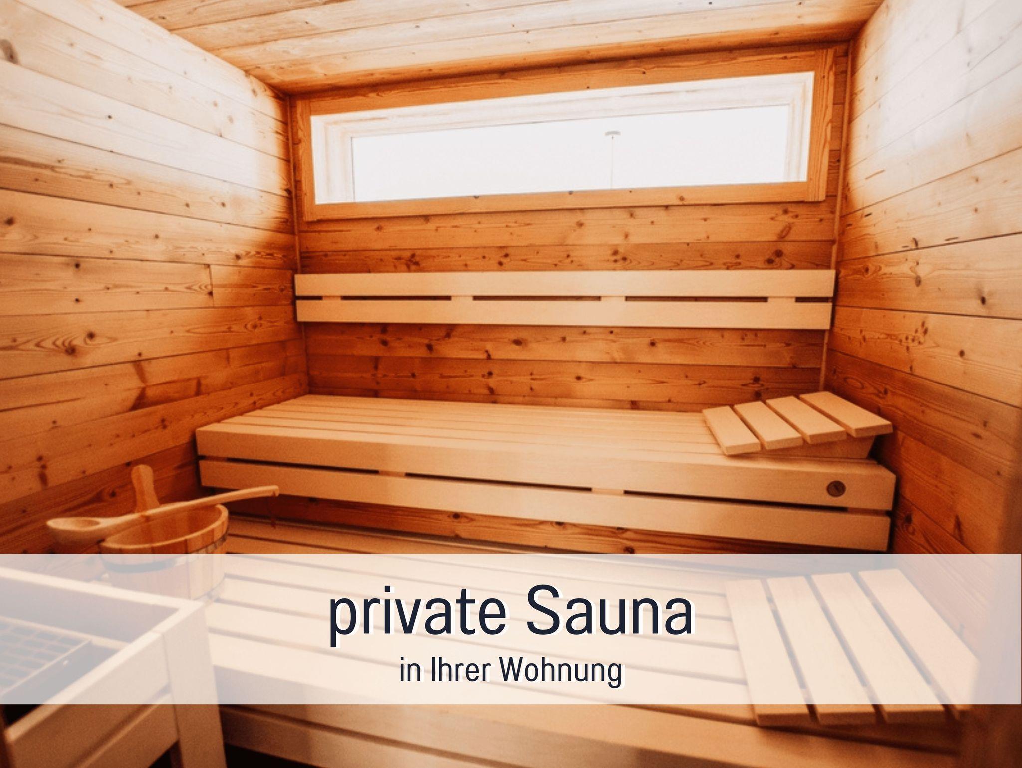 Die großen Wohnungen erwarten Sie mit einer privaten finnischen Sauna, in der Sie nach einem Tag voller Abenteuer entspannen können. In den kleinen Wohnungen relaxen Sie in Ihrer Infrarotkabine, die für wohlige Wärme sorgt. Für die Kleinen haben wir (auf Nachfrage) Kinderhochstühle, Babyphone, Rausfallschutz und Gitterbetten bereitgestellt, damit auch Familien den Komfort genießen können.