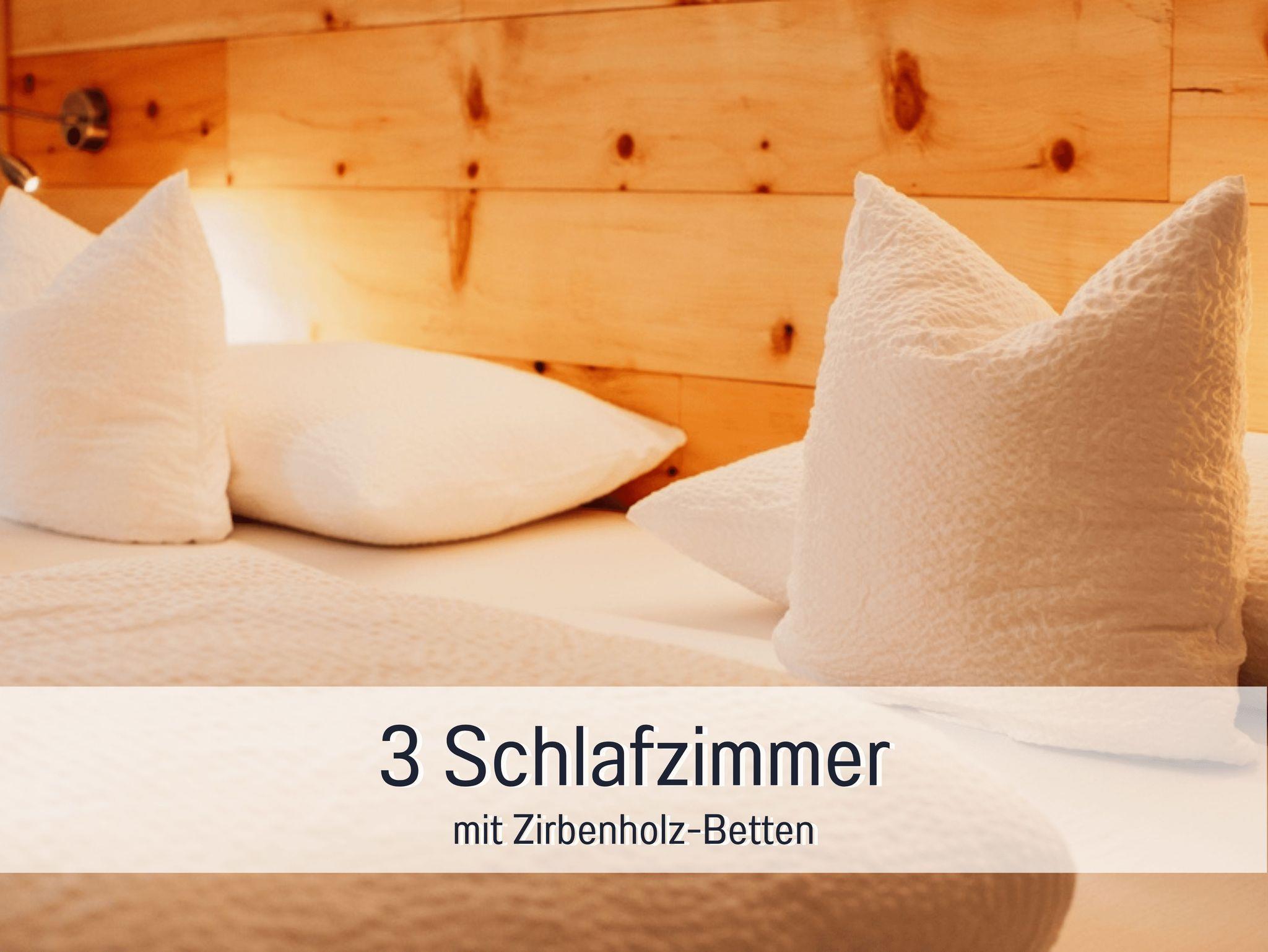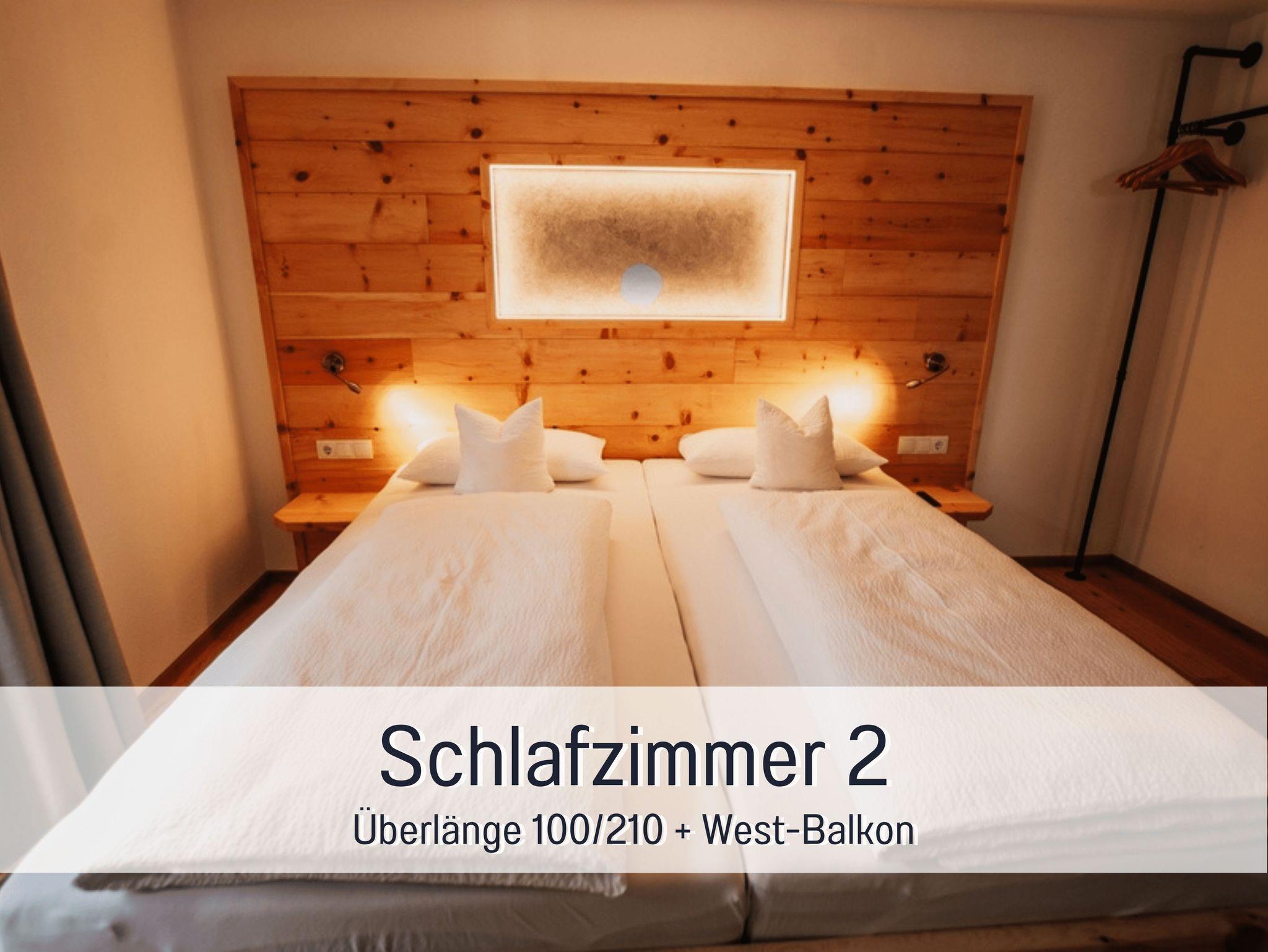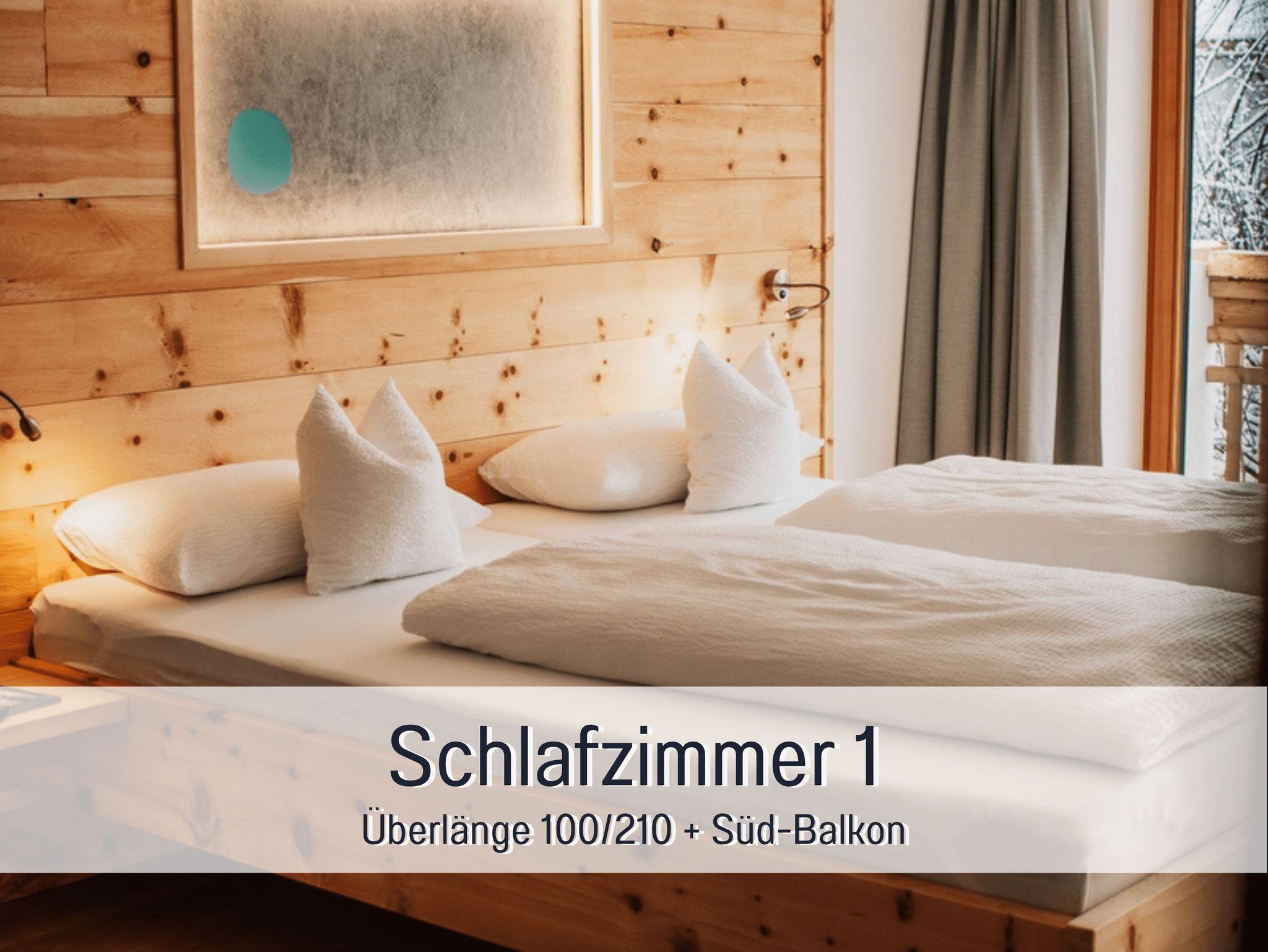 • zwei getrennte Schlafzimmer mit Doppelbetten aus Zirbe in Überlänge