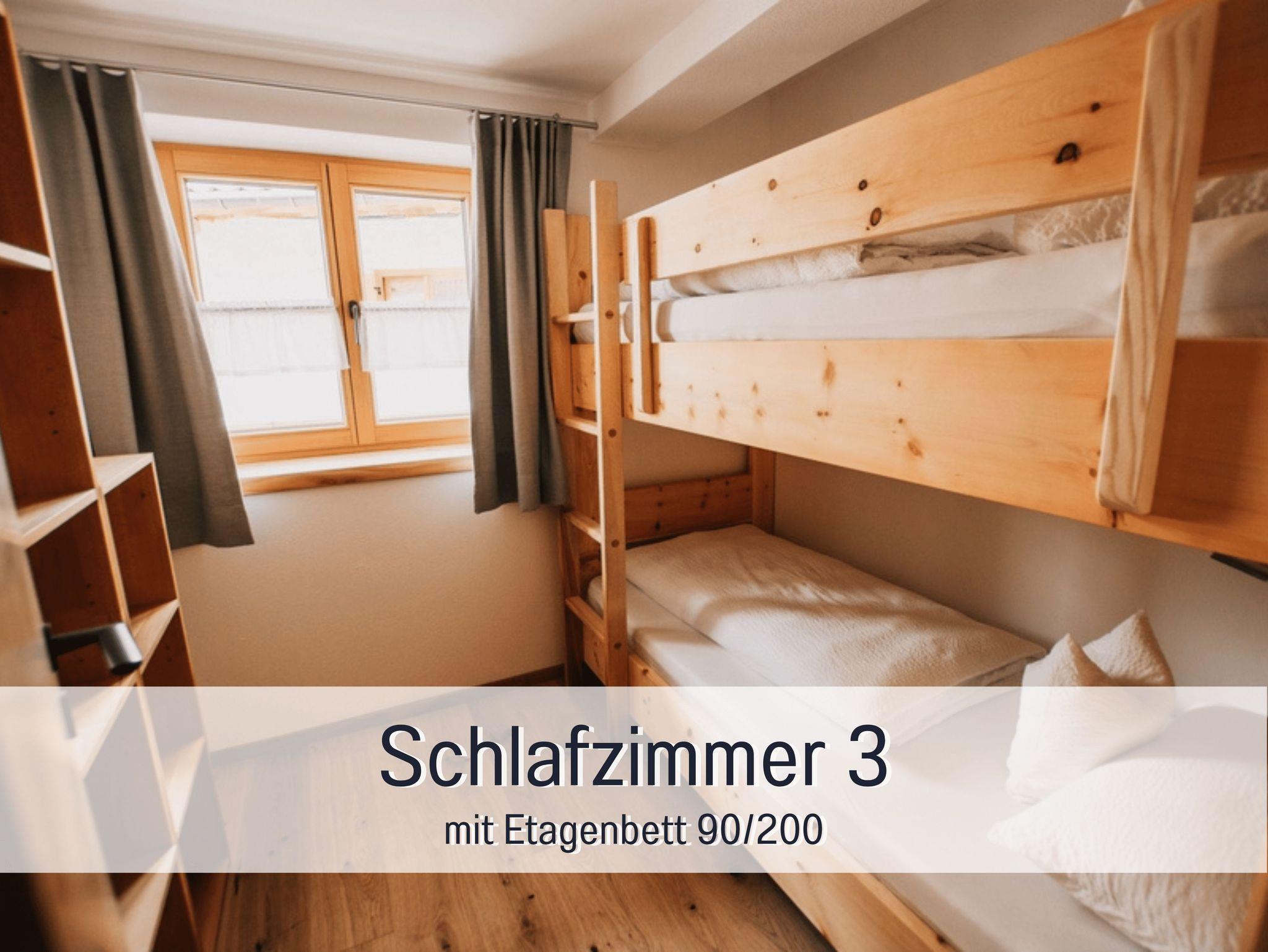 • kleines Schlafzimmer/Kinderzimmer mit einem Etagenbett (90x200cm) aus Zirbe