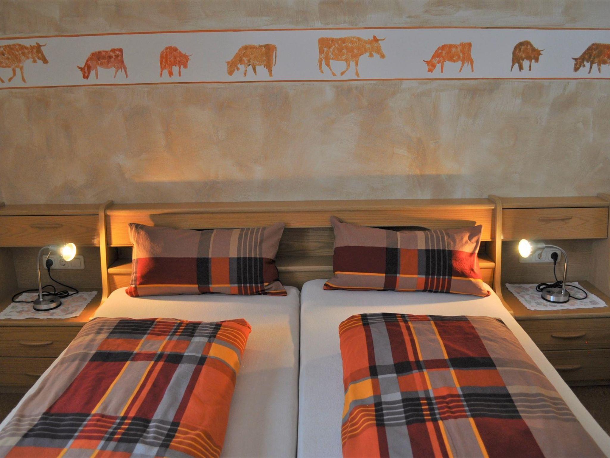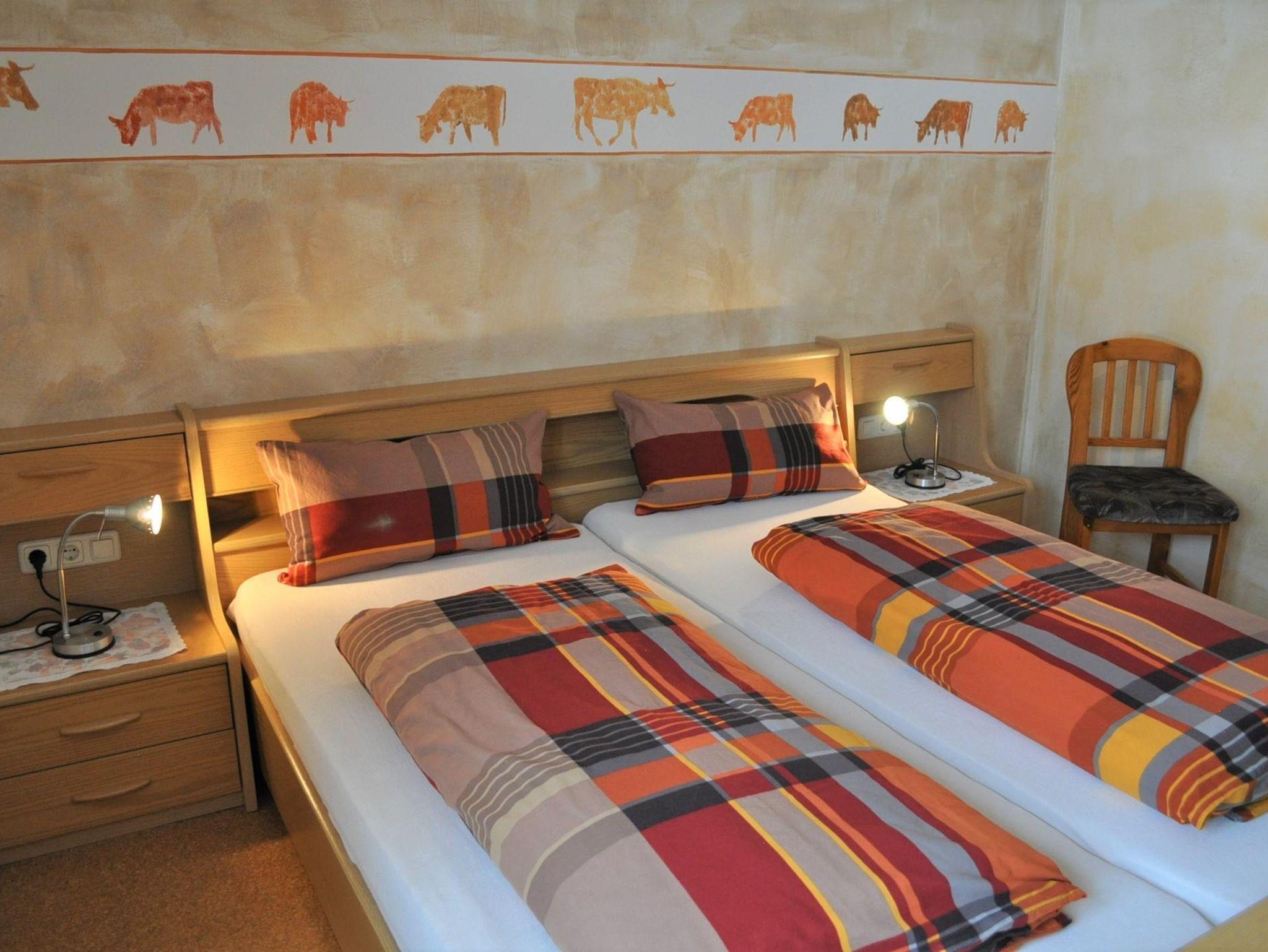 Geräumige Ferienwohnung, separater Schlafraum, Wohnraum mit Sitzecke, sowie Essecke, separate Küche mit Spülmaschine, Südbalkon mit Bergblick, Flur mit Garderorbe, DAB-Radio und Sat-TV, Getrennte Schlafmöglichkeit vorhanden. Tageslicht-Badezimmer mit Dusche/WC.