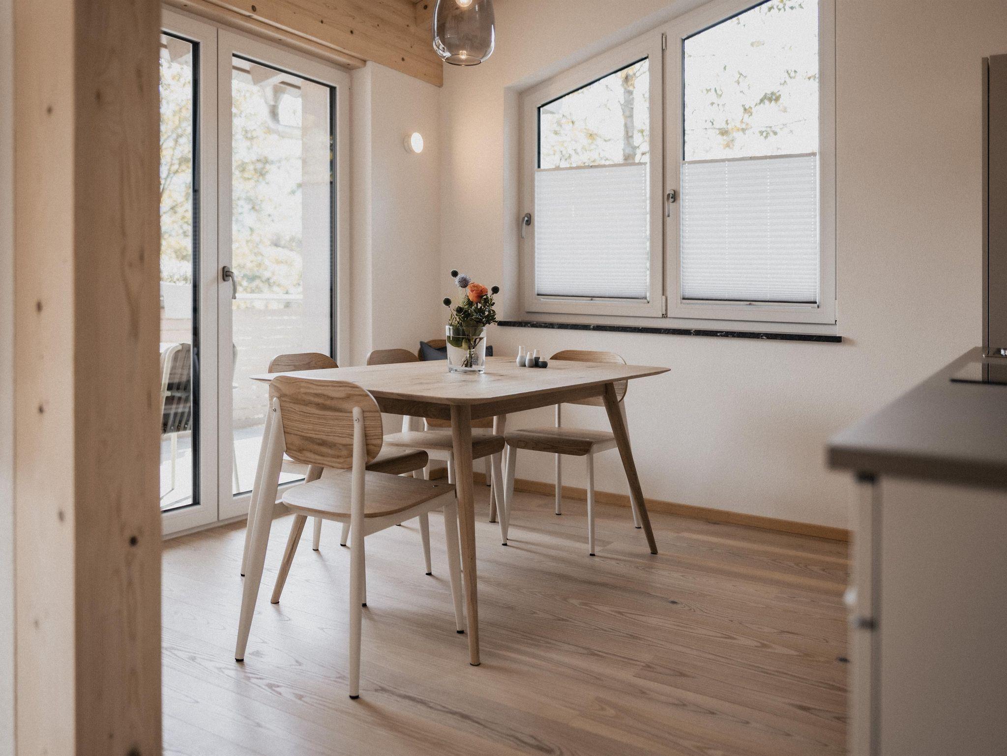 Unser Haus wurde 2024 in natürlichem Ambiente neu erbaut und umfasst insgesamt vier Ferienwohnungen. Den Ortskern erreichen Sie in fünf Gehminuten. Zwei der Appartements verfügen über einen malerischen süd-ost bzw. süd-west Balkon die einen atemberaubenden Blick auf die umliegende Berglandschaft bieten. Die anderen beiden Wohnungen im Erdgeschoss laden mit direktem Zugang zum Garten zu erholsamen Stunden im Freien ein. In jeder Wohnung können Sie sich auf eine Infrarotkabine freuen.