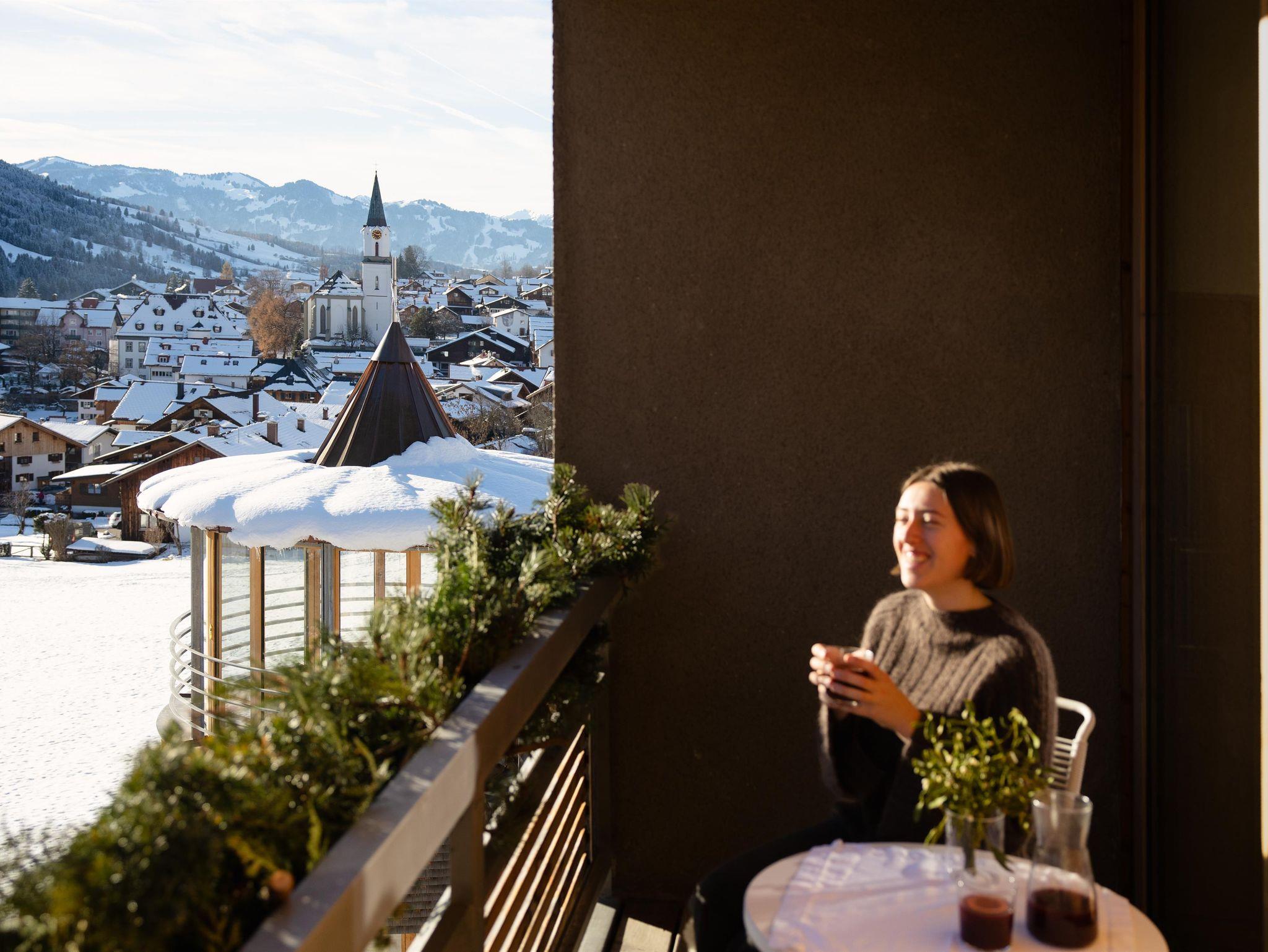 Ganztags die Sonne hereinlassen und vom Betten aus Rotspitze und Imberger Horn bestaunen. Im Stübchen erhaben oder geerdet schlafen. Wohlige Atmosphäre durch Massivholz, Lehmputz und Strahlungswärme.